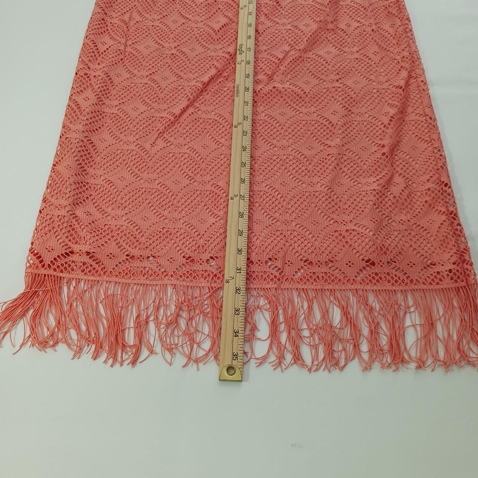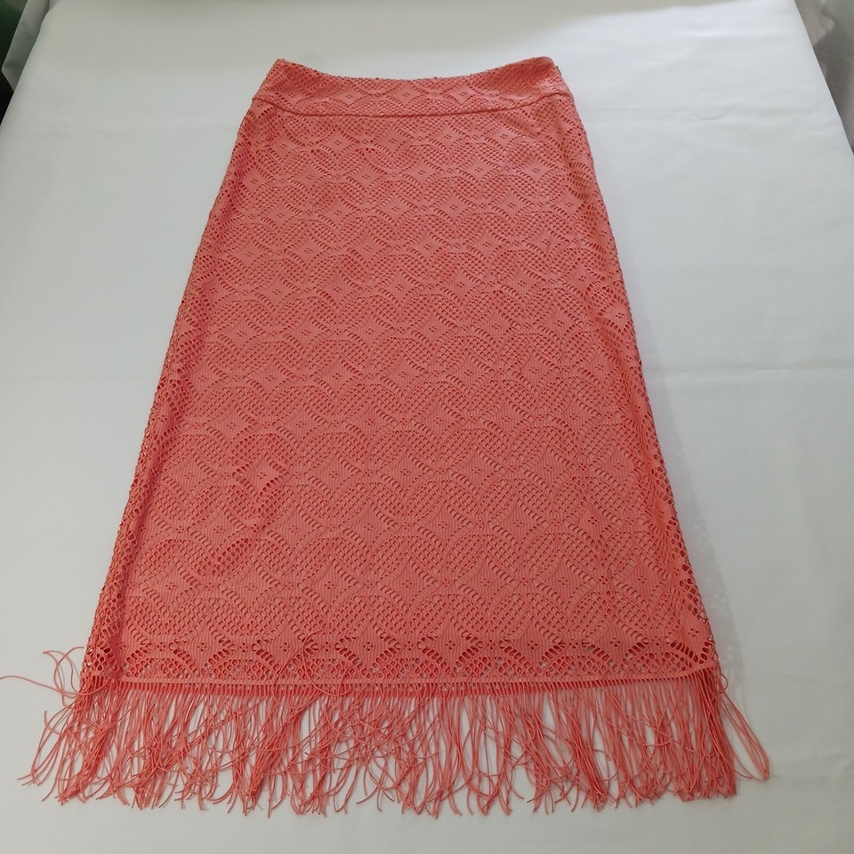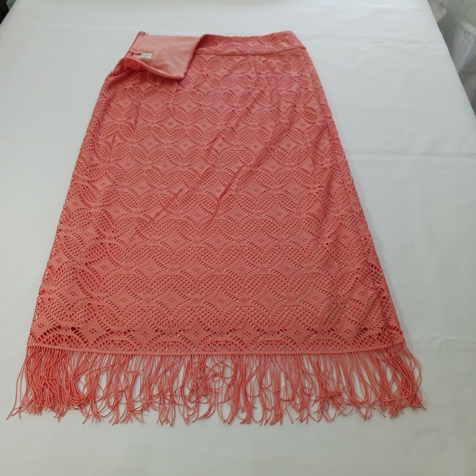 Elevate your wardrobe with this stunning Cato Women's Skirt in a beautiful peach color. This skirt features a pull-on closure and a straight & pencil style, making it perfect for a casual occasion. The back slit accents and tassel details add a touch of elegance to the skirt.