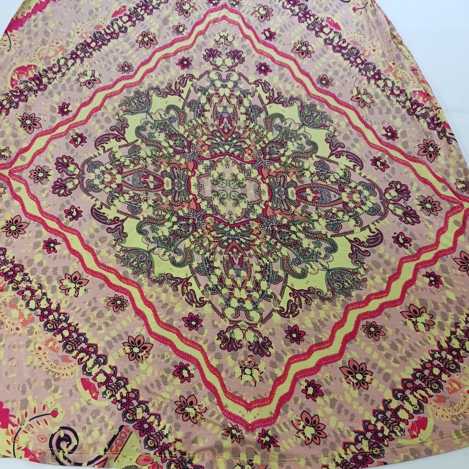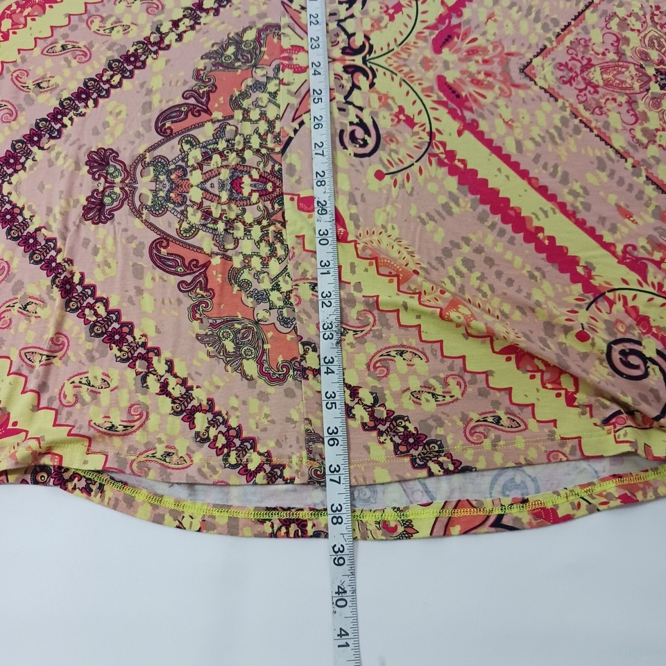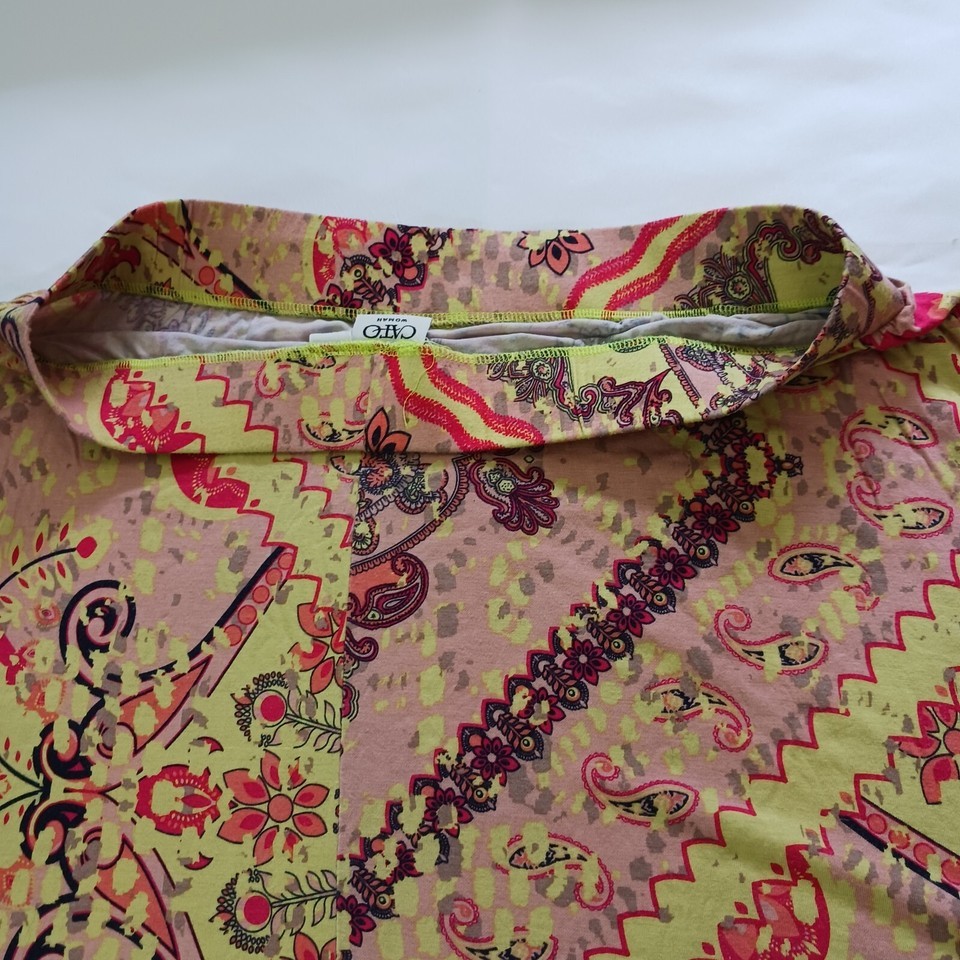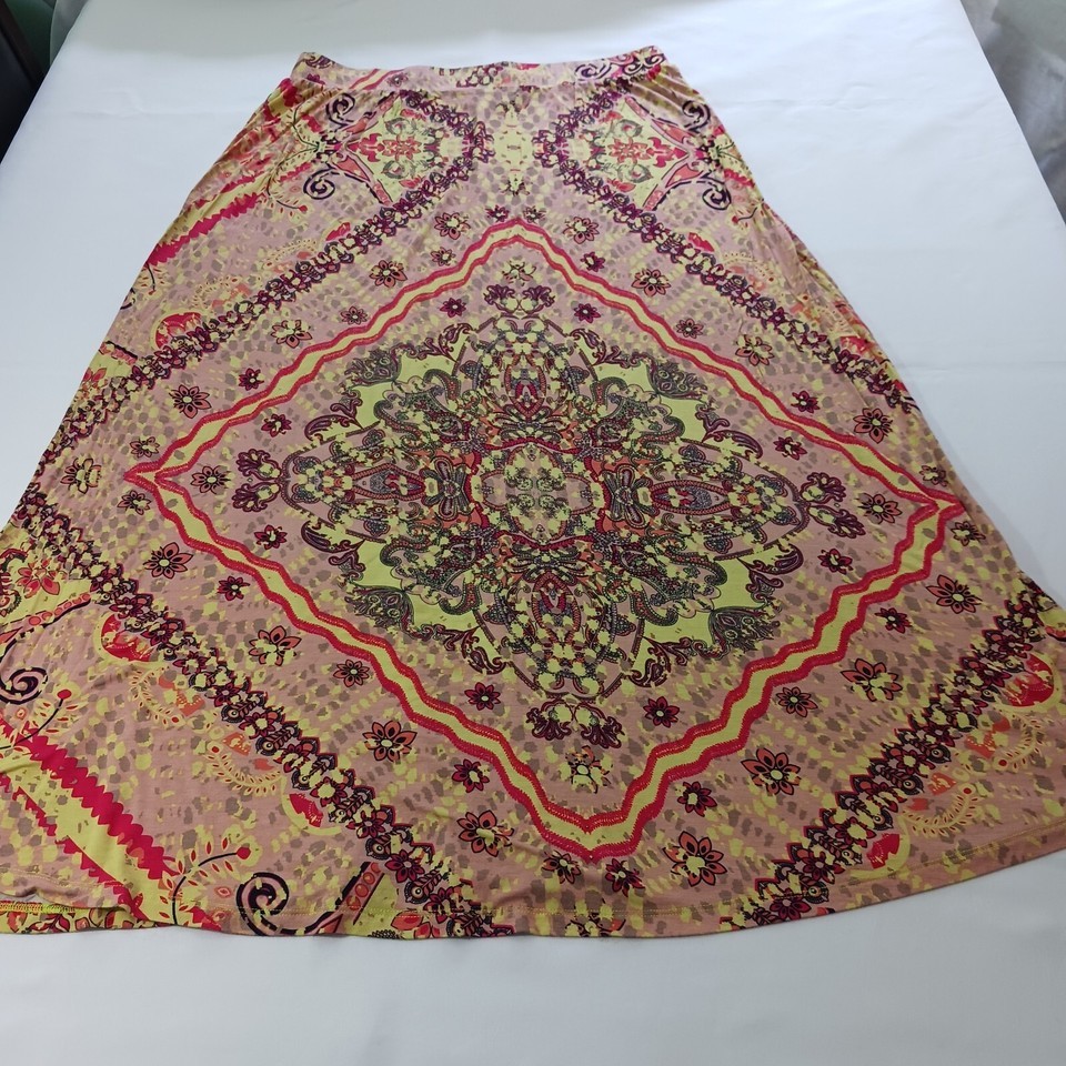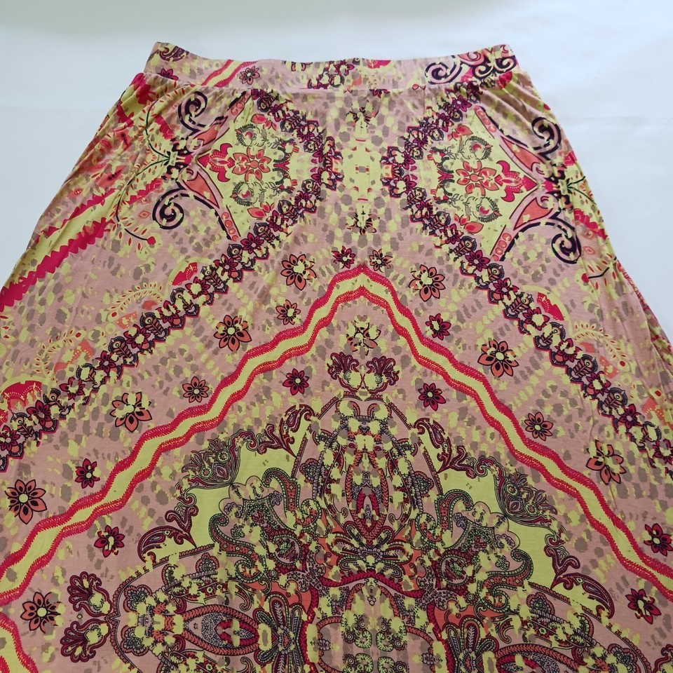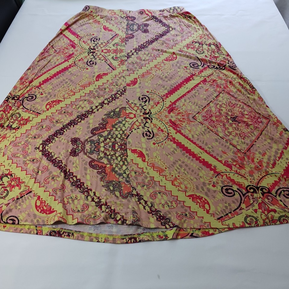 Add a pop of color to your wardrobe with this beautiful Cato midi skirt. Featuring a vibrant multicolor paisley pattern, this skirt is perfect for any occasion. The pull-on style and elastic waist make it comfortable and easy to wear, while the button accents add a touch of elegance.
