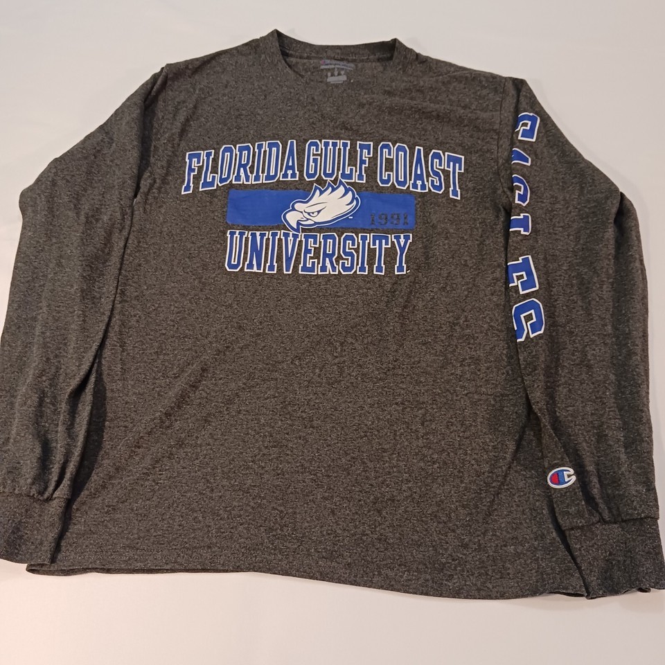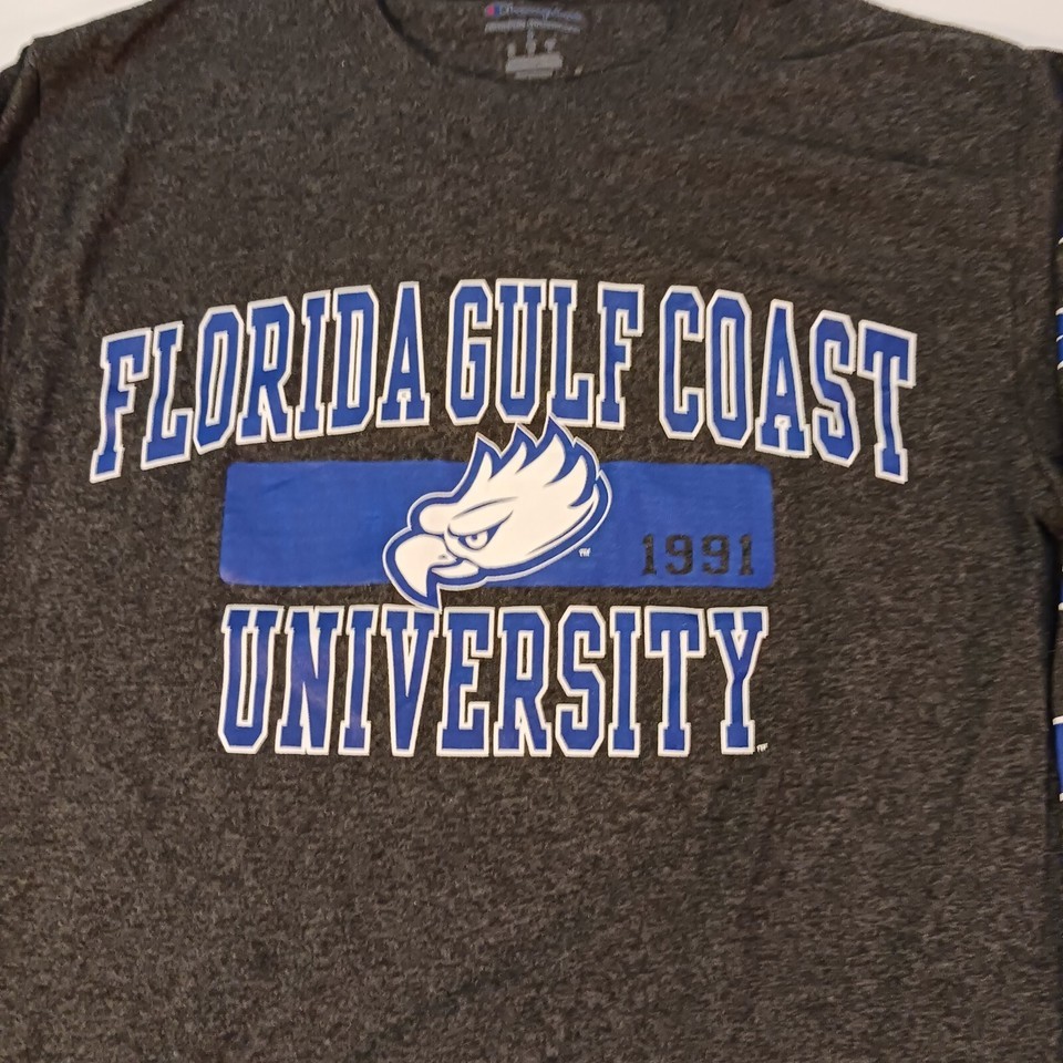 Show off your love for the Florida Gulf Coast Eagles with this authentic Champion T-Shirt! The gray shirt features the team's colors and logo, making it the perfect addition to any Eagles fan's collection. Made for men, in size small, this shirt is perfect for game day or casual wear.