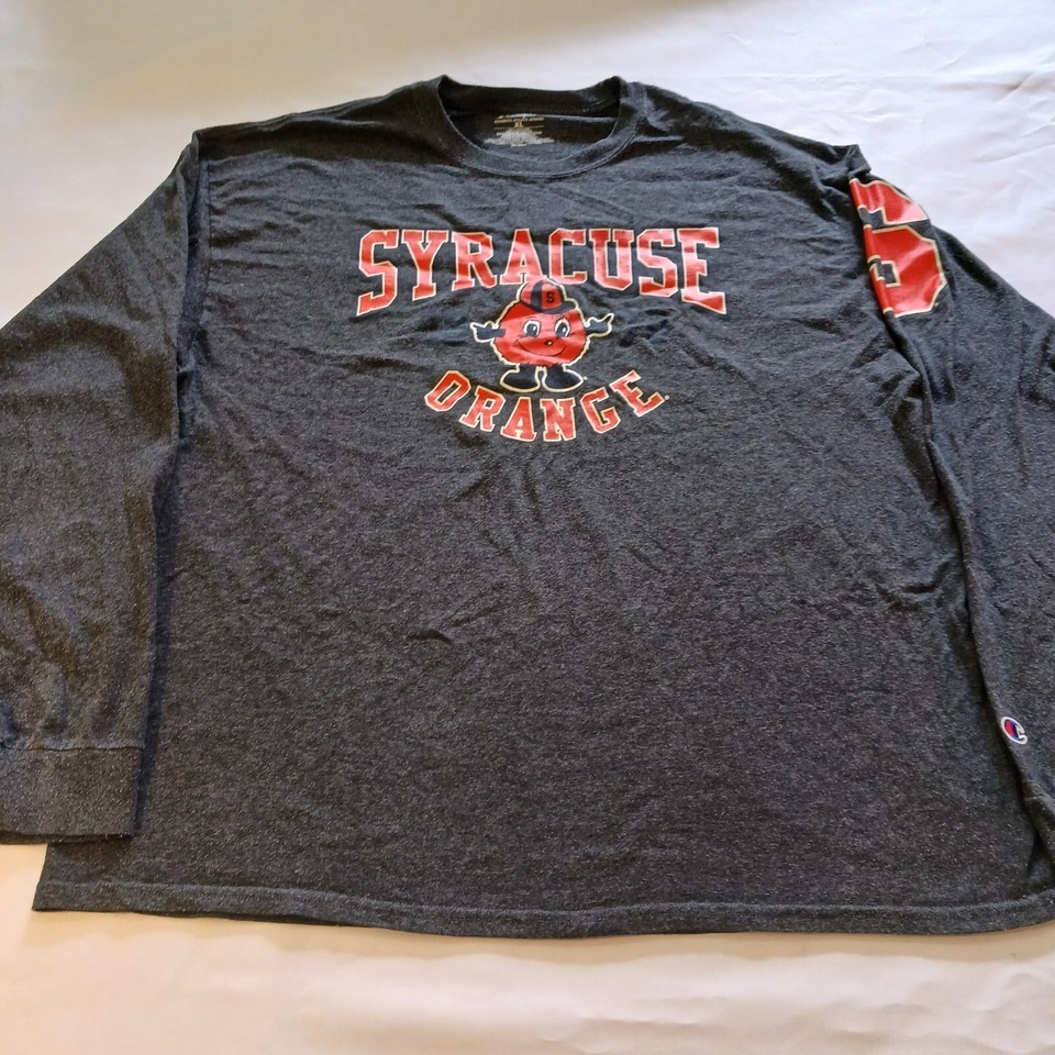 Show your support for Syracuse University with this Champion Authentic Athletic Apparel T-Shirt. Featuring the Syracuse Orange logo, this gray T-Shirt is made of high-quality cotton material and has a knit fabric type. It has a crew neck and long sleeves, making it perfect for all seasons.
