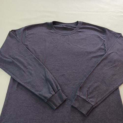 Champion Crewneck Men's Solid Plain Casual Blue T-Shirt Long Sleeve Size Large