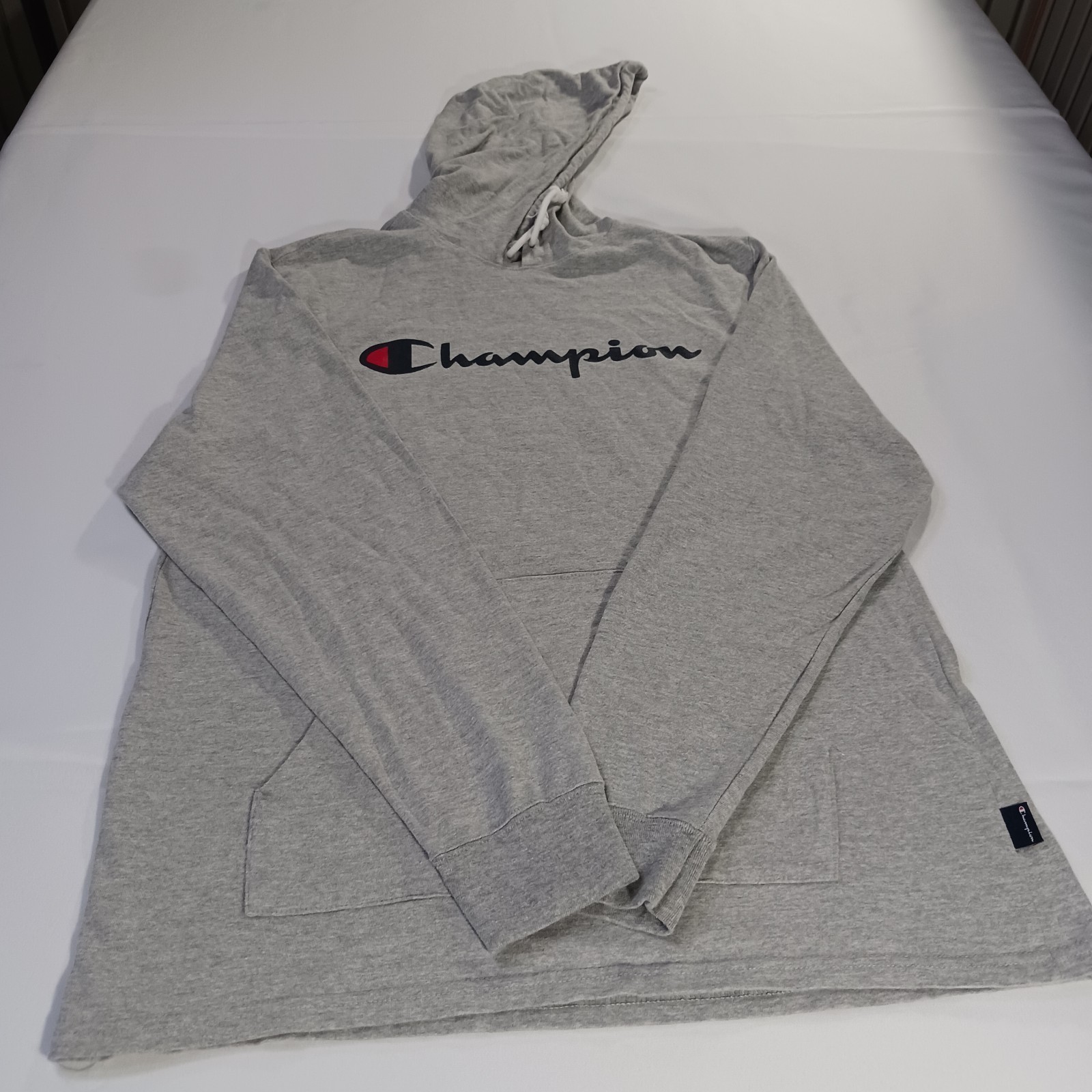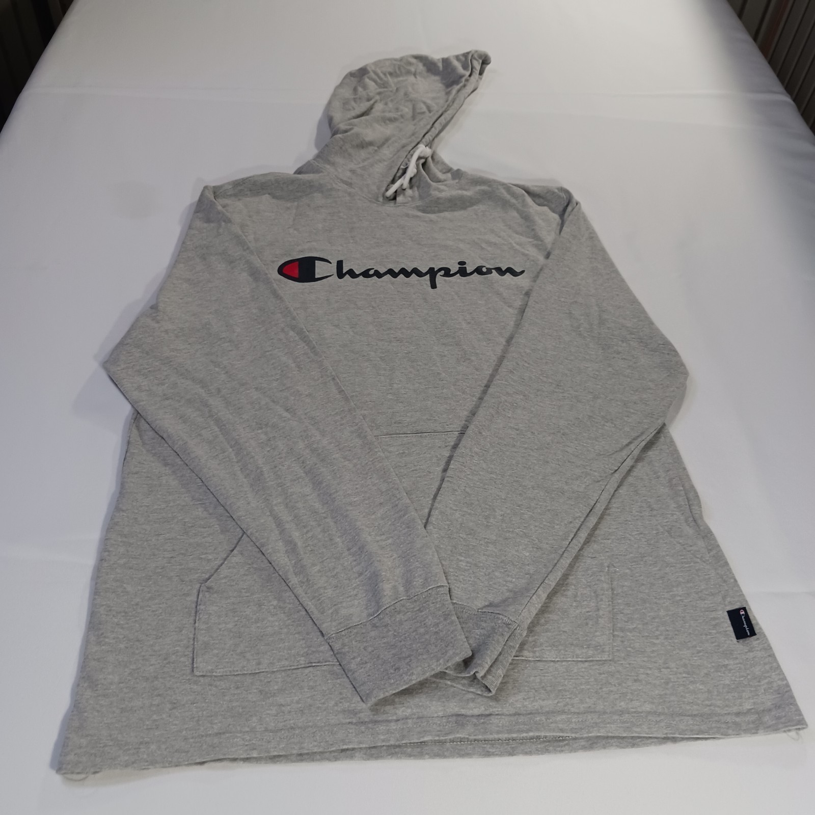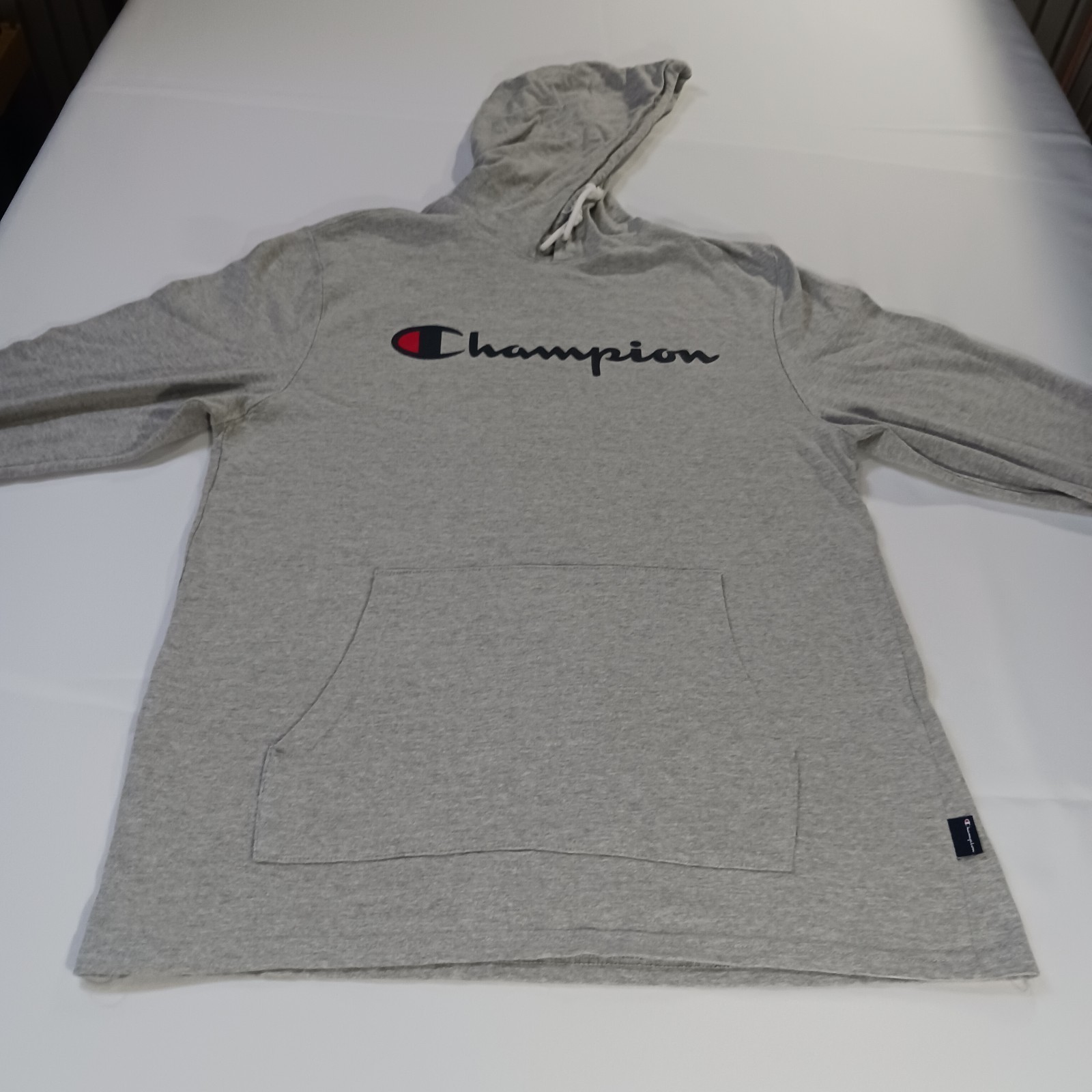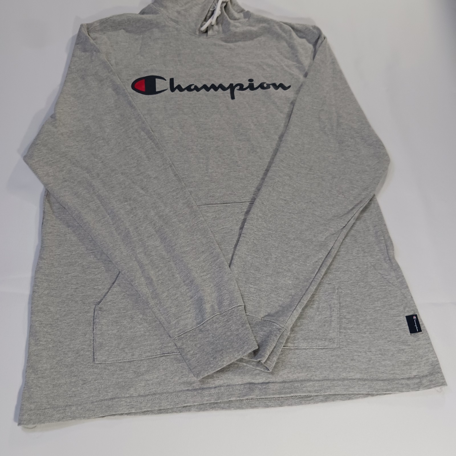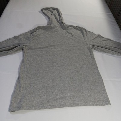 The Champion Hoodie Shirt for men in size Large is a casual pullover made from a comfortable cotton blend in a solid gray color. This long sleeve shirt features a mock neck with a hood, making it perfect for all seasons and outdoor activities. The Champion logo adds a stylish accent to this classic and modern piece of clothing, suitable for American-themed looks. Easy to care for with machine washable fabric, this shirt is a timeless addition to any man's wardrobe.