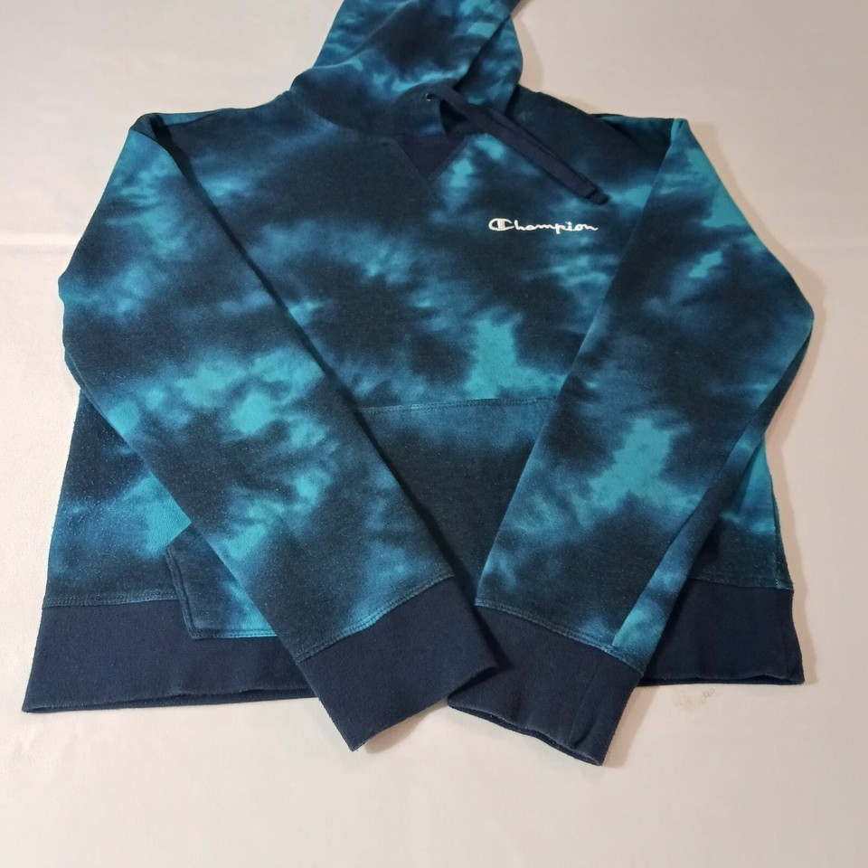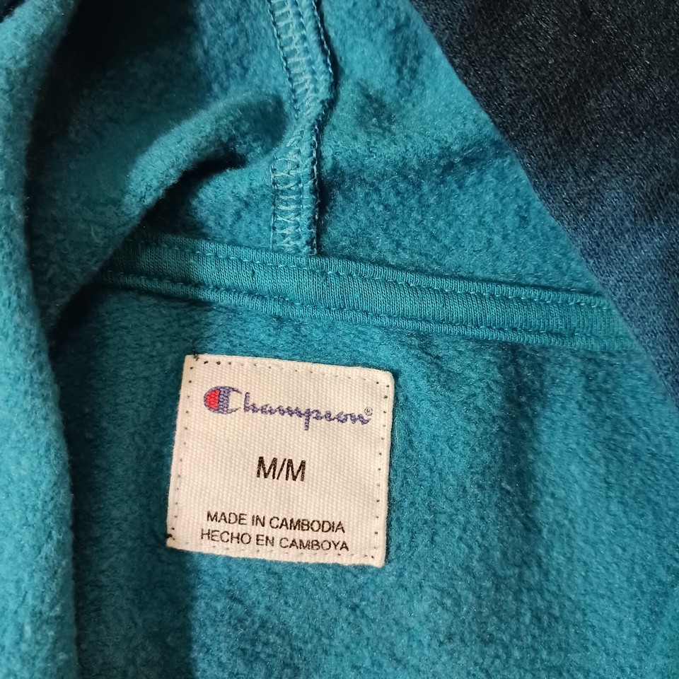 Elevate your activewear game with this Champion hoodie! The drawstring closure and long sleeves make it perfect for cooler weather, while the turquoise and dyed blue color combination adds a pop of color to your wardrobe. Made from a blend of polyester and cotton, this hoodie is both comfortable and durable.