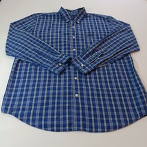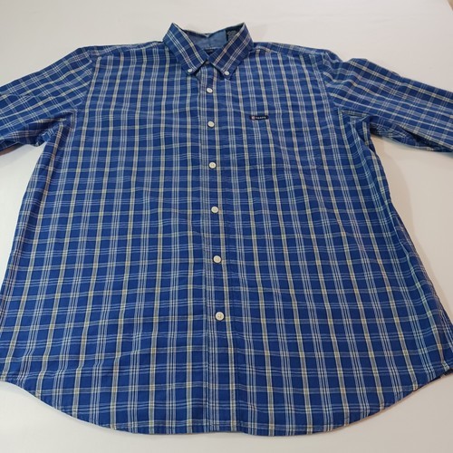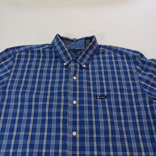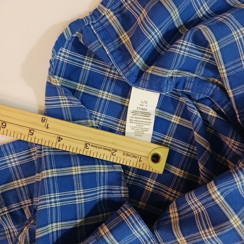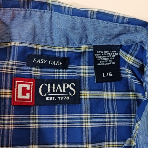 This Chaps Men's Button-Up Shirt features a classic collared neckline with button closure and long sleeves. The blue and yellow check pattern adds a colorful touch to this versatile shirt, suitable for travel, casual outings, work, and business settings. Made in Bangladesh from machine-washable cotton fabric, this regular-fit shirt is easy to care for and can be worn in all seasons.