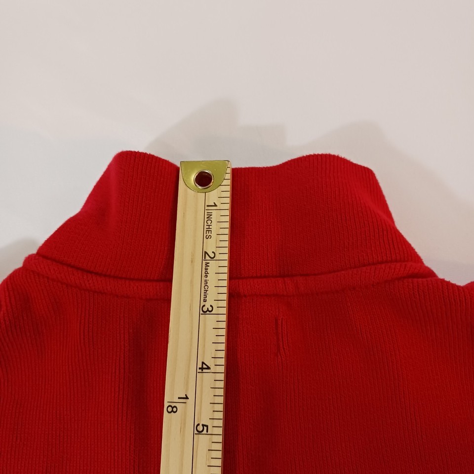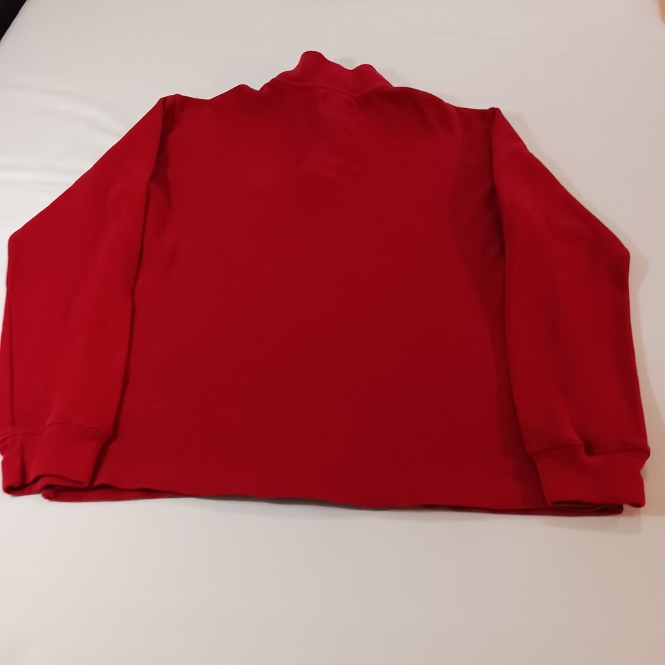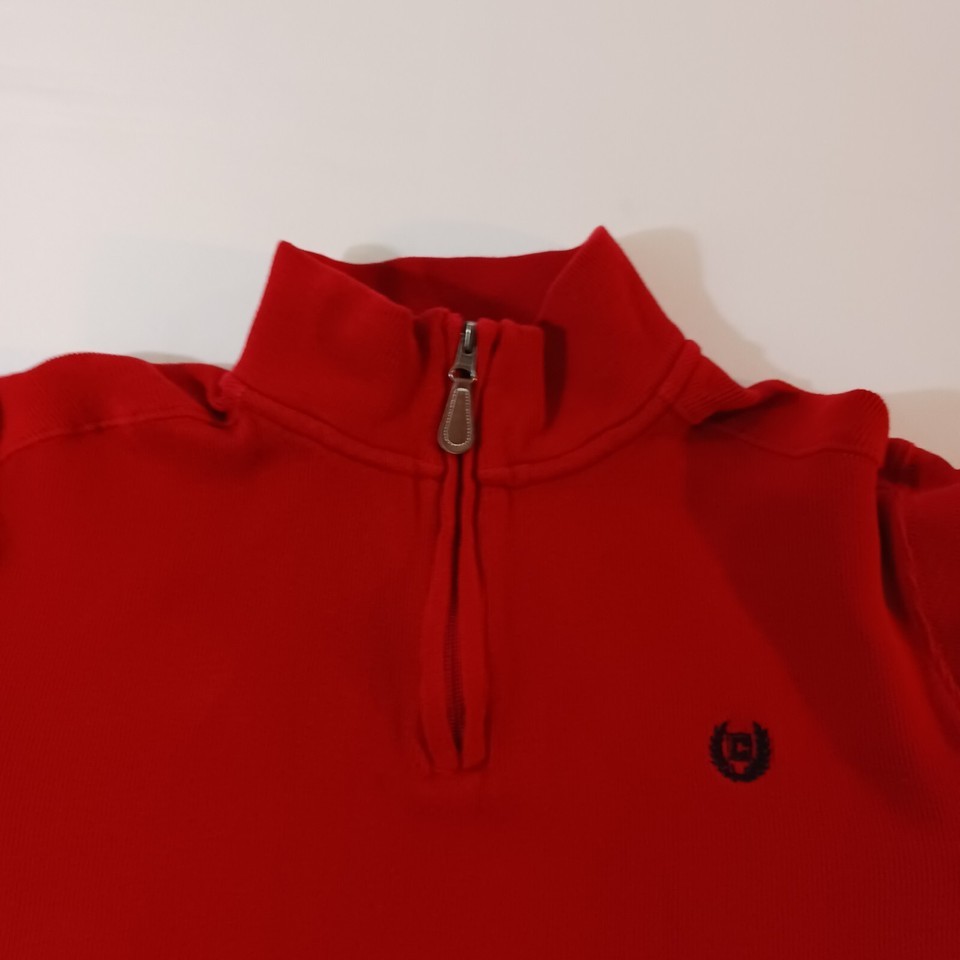 This Chaps sweatshirt is the perfect addition to any wardrobe. Made with high-quality cotton material, it is comfortable and durable for everyday wear. The 1/4 zip and high neck design add a stylish touch, while the embroidered logo and zipper accents give it a unique look.