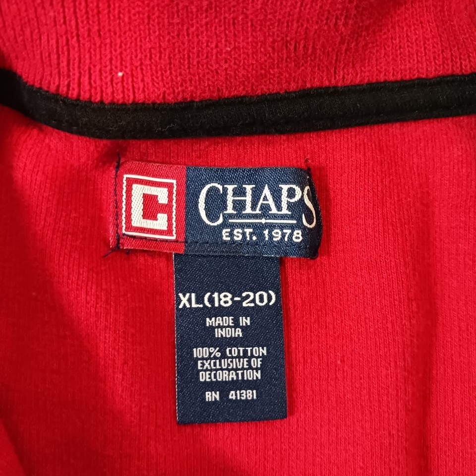 Ideal for walking, hiking, or any outdoor activity, this sweatshirt is available in size XL (18-20) and is machine washable for easy care. Its solid pattern, long sleeves, and stretch features make it a great choice for any season, whether it's winter, fall, or spring. Don't miss out on this Chaps sweatshirt, perfect for any man's activewear collection.