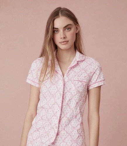 The Charming Heart Print Satin Bow Lingerie Set in White English features a floral pattern with a sleeveless design, made from luxurious satin fabric. The set includes a top with a charming bow accent and matching shorts, perfect for a charming and elegant look. The brand, Stylish Depot, ensures quality and style, with a size small suitable for regular sizing. This lingerie set is ideal for women looking for a romantic and feminine sleepwear option.