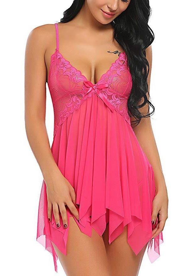 Elevate your lingerie collection with this charming lace chemise. The asymmetrical hemline adds a playful twist, and the delicate lace design ensures you feel both comfortable and glamorous. Ideal for anyone looking to add a bit of flair to their nightwear.