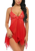 • Charming Lingerie Lace Red Chemise With Asymmetrical Hemline - Size Small image 6