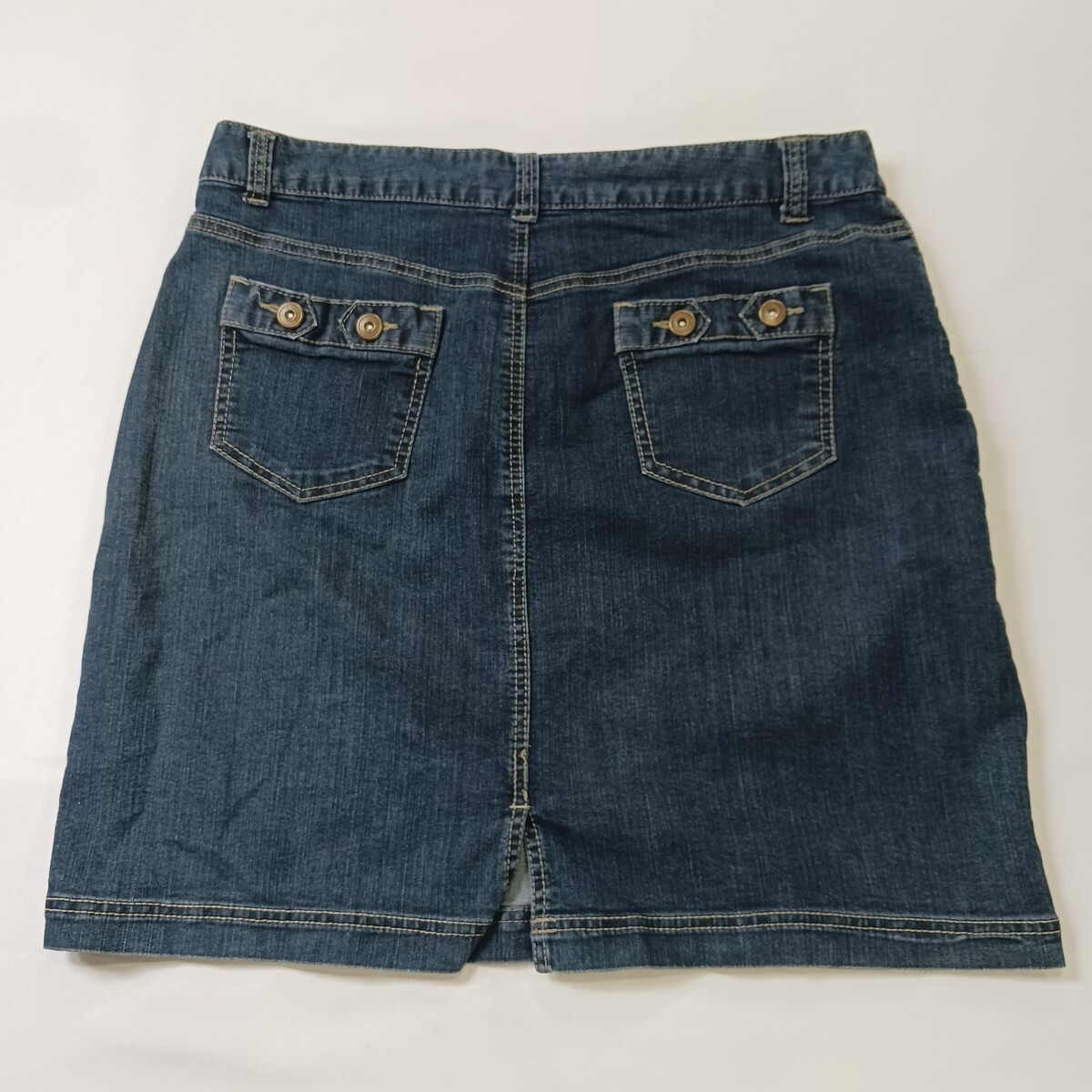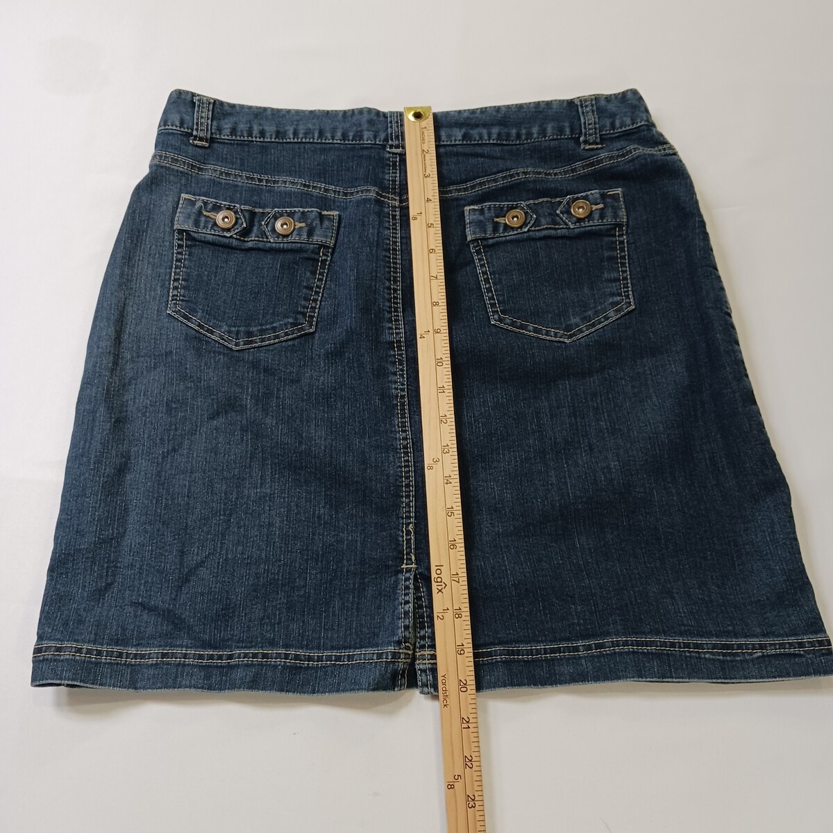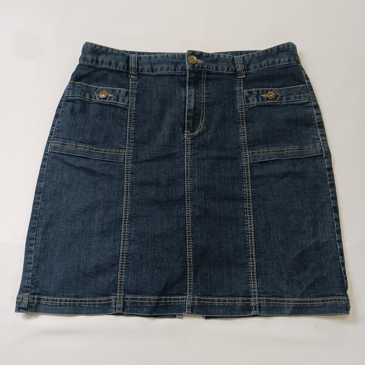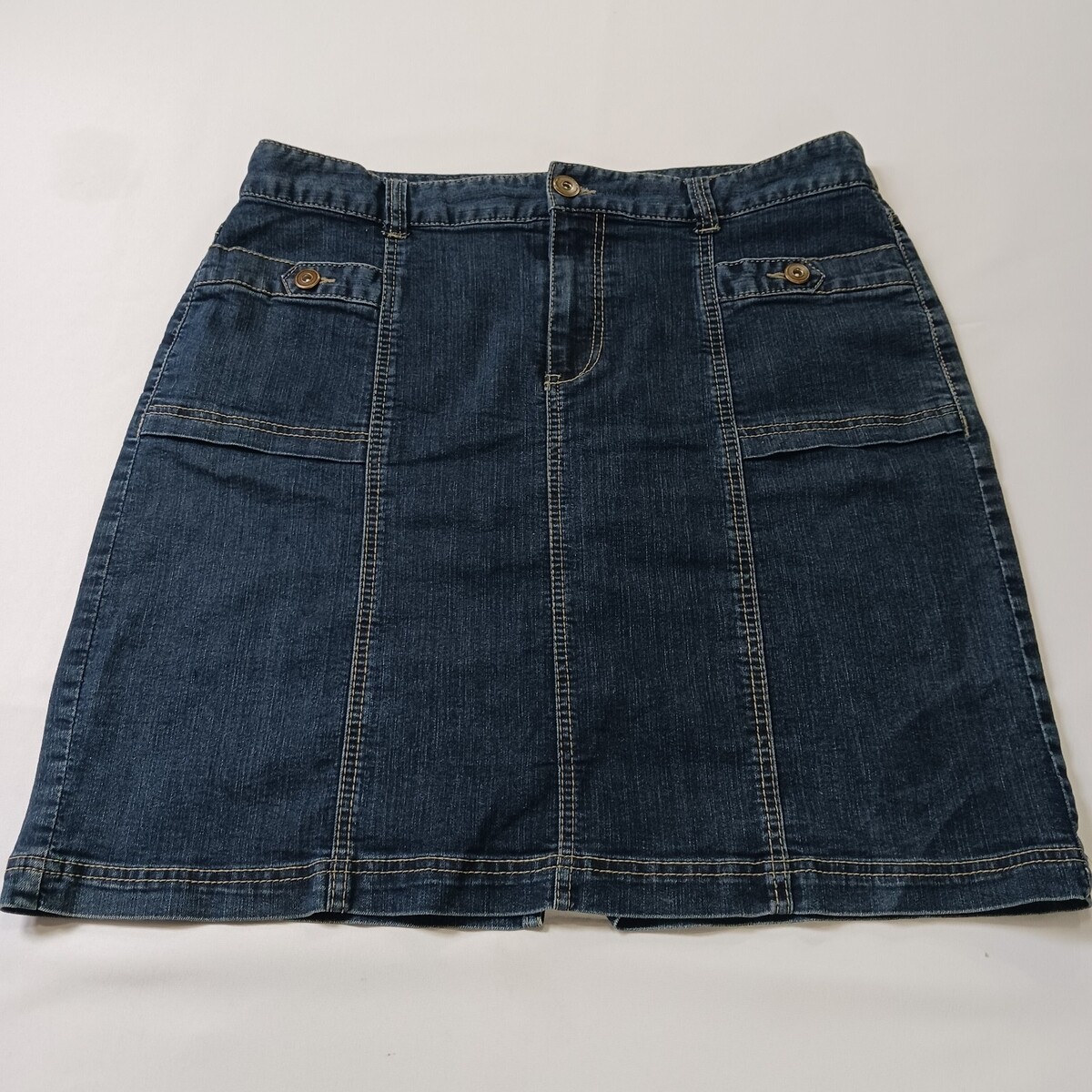 This Christopher & Banks RN#55826 Women's Blue Cotton Blend Denim Skirt in size 14 is a versatile garment perfect for various occasions such as travel, casual outings, or business meetings. Made from a comfortable cotton blend fabric with a high rise and A-line style, this skirt features a zip closure, pockets, and natural accents like buttons and zippers. The classic blue color and denim fabric add a touch of Western flair to your wardrobe, making it a stylish and practical choice for the warmer seasons of spring, summer, and fall.