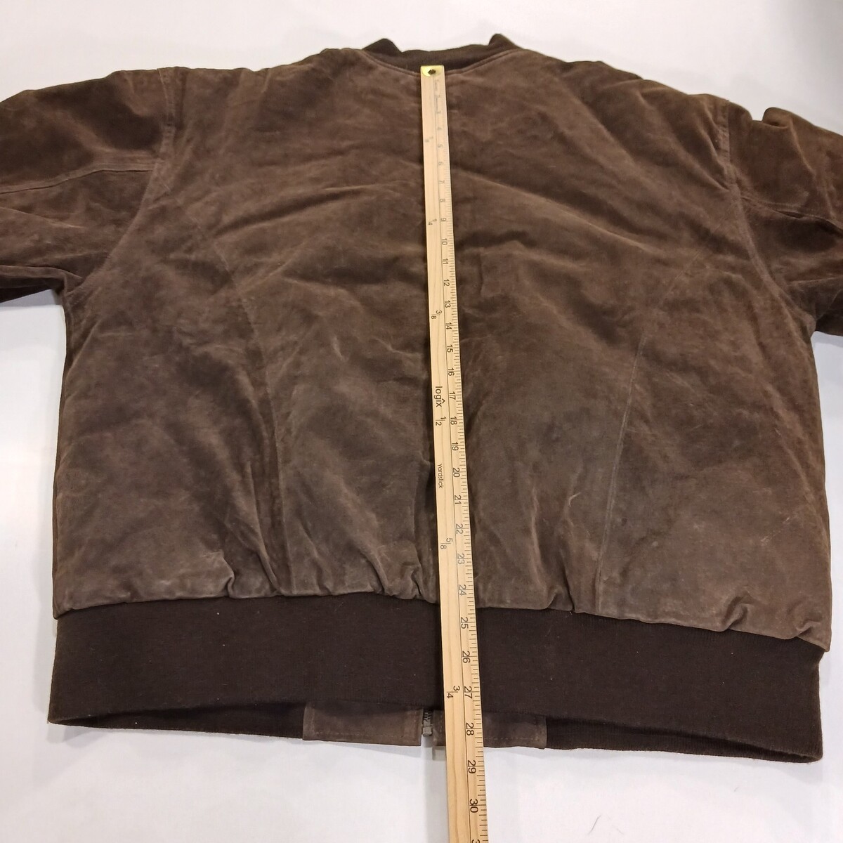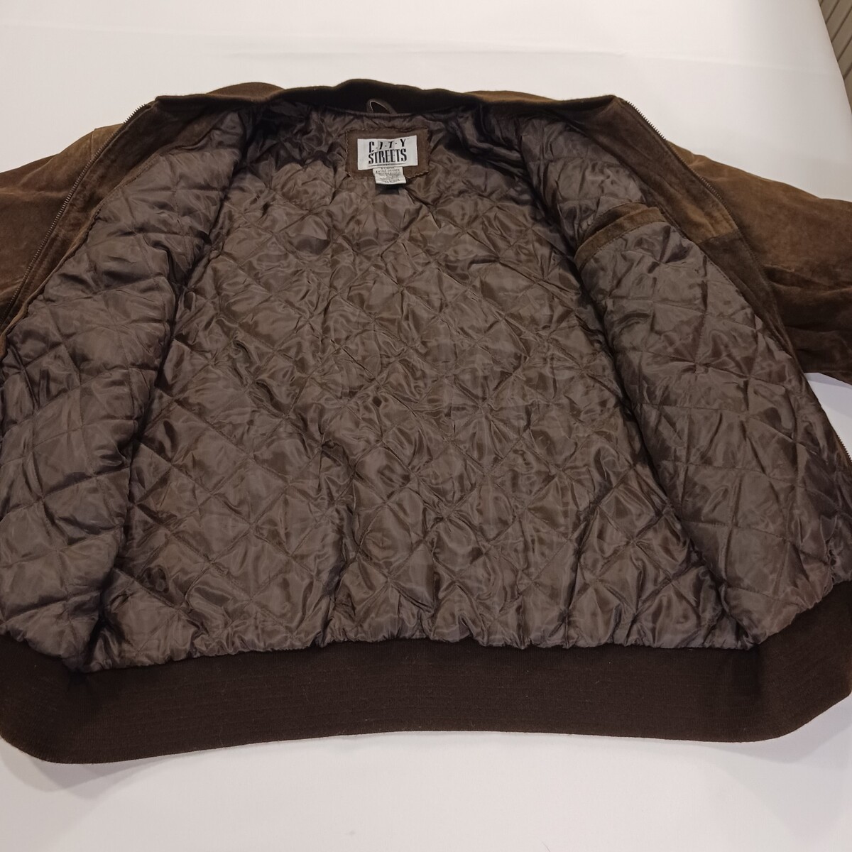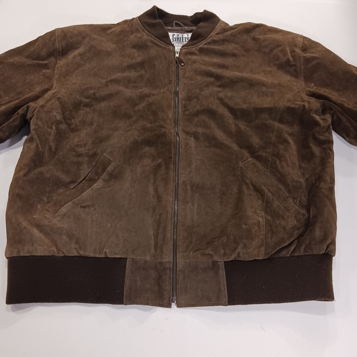 The City Streets RN#93677 Men's Brown Full Zip Genuine Leather Jacket in size XL is a stylish and versatile outerwear piece perfect for casual occasions. Made from high-quality leather with a solid pattern, this vintage-inspired jacket features a full zip closure, band collar, and nylon lining for added comfort. Ideal for the winter, fall, and spring seasons, this jacket is easy to care for with dry cleaning only. Perfect for men who appreciate quality craftsmanship and classic leather jacket style.