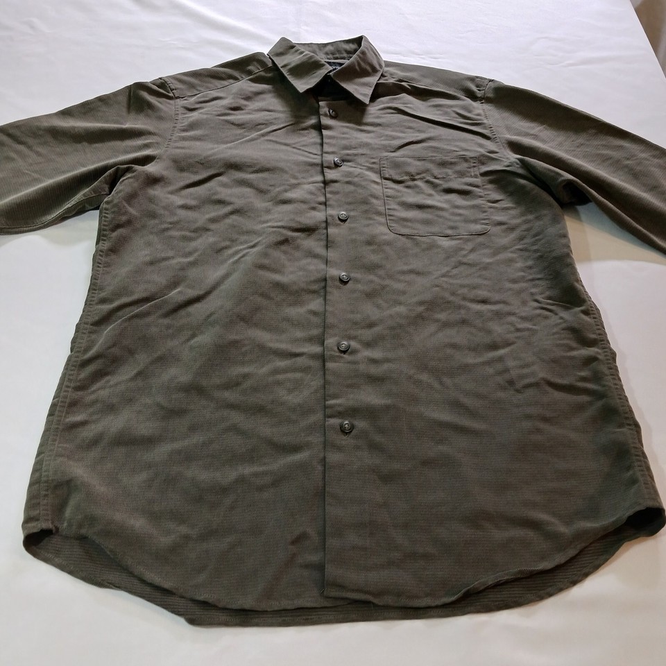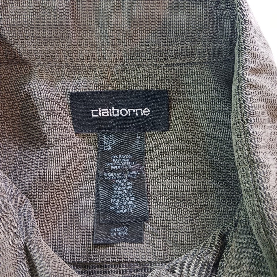 Made of high-quality polyester material, this shirt is both comfortable and durable. It is available in size large and is suitable for regular size types. The shirt bears the Claiborne brand and was manufactured in Indonesia. Ideal for casual and formal wear, this button-up shirt is a must-have for any fashionable man's wardrobe.