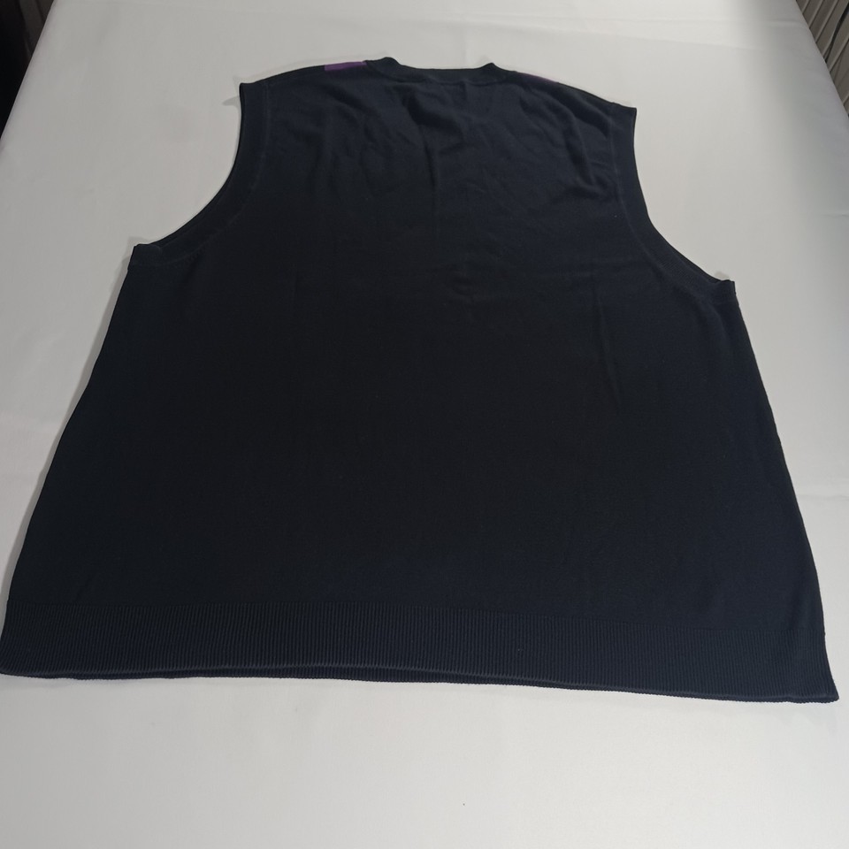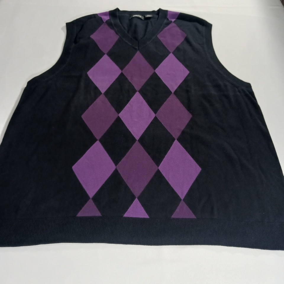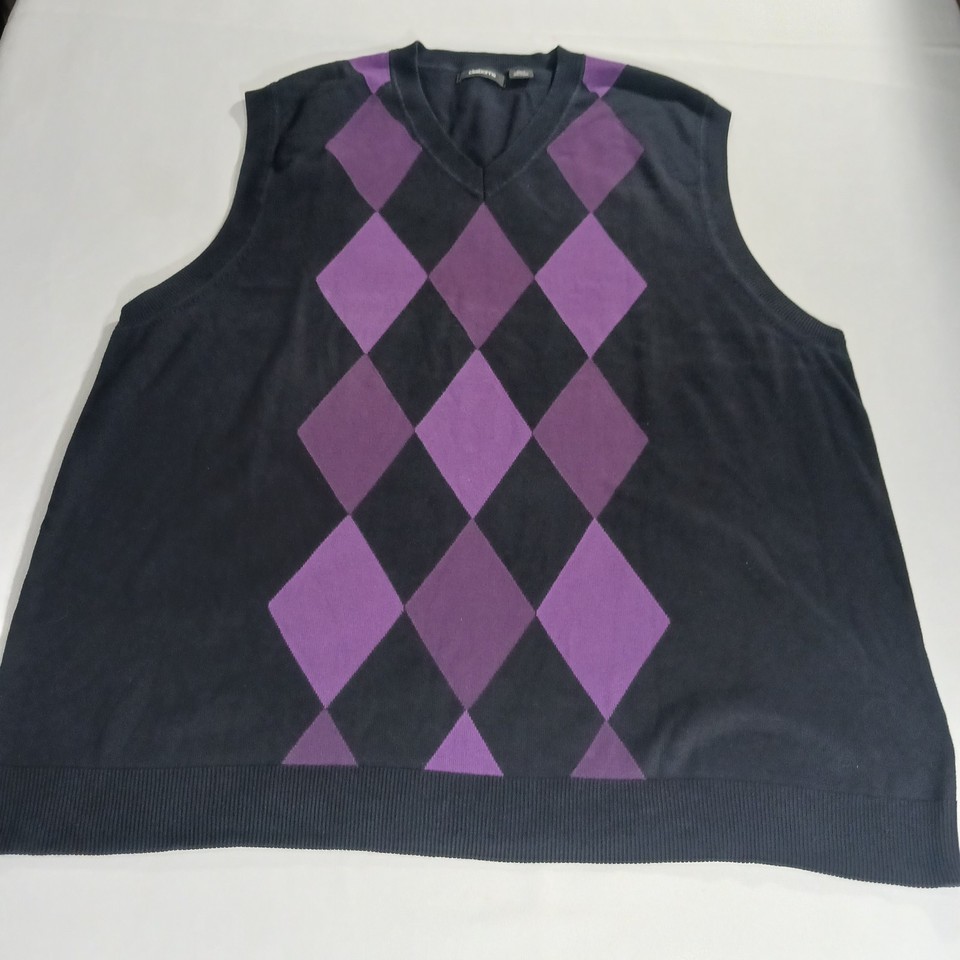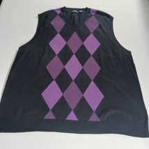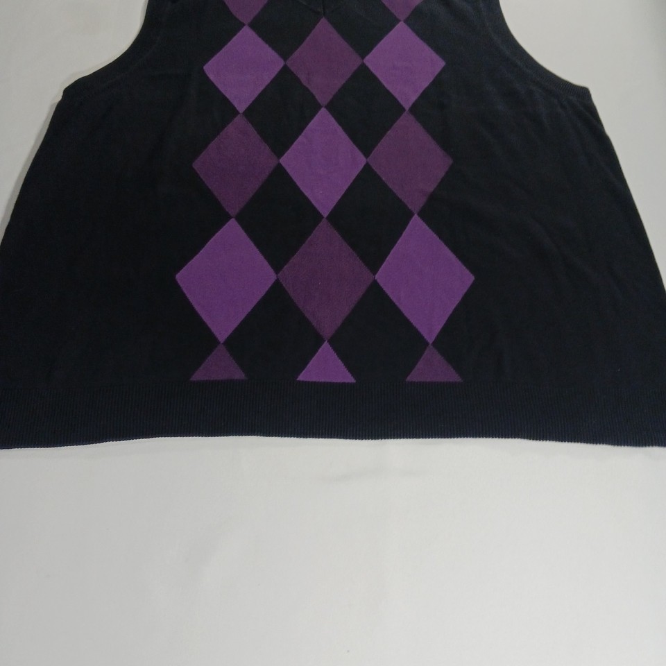 Claiborne Women's Knit Black Cotton Vest Sweater Size 3XLT Black w/Purple Argyle