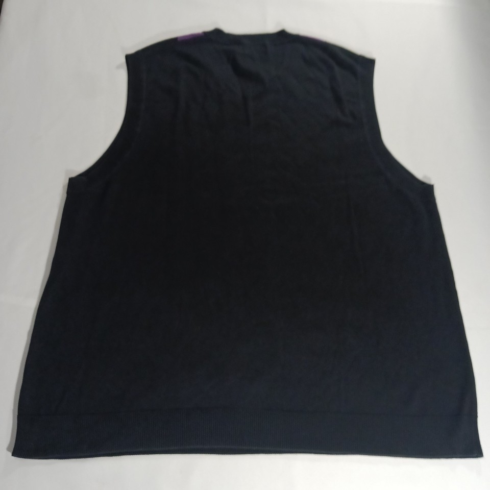 • Claiborne Women's Knit Black Cotton Vest Sweater Size 3XLT Black w/Purple Argyle image 5