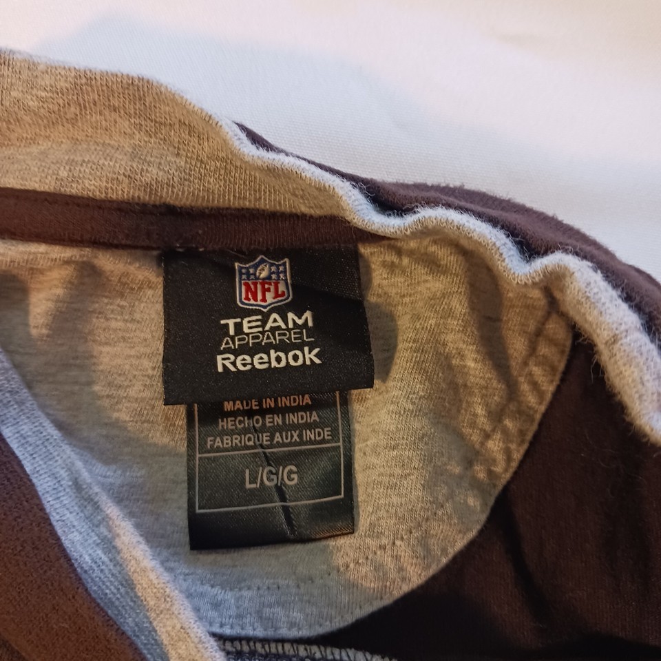 Show your love for Cleveland Browns with this Reebok NFL Football long sleeve shirt. Made in India, this shirt is perfect for men who are fans of the National Football League's regular season. The brown and silver colors of the shirt are an ideal match for the team's colors and can be worn during any game. The shirt is a size L, and it's ideal for fans who want to wear something that is both comfortable and stylish.