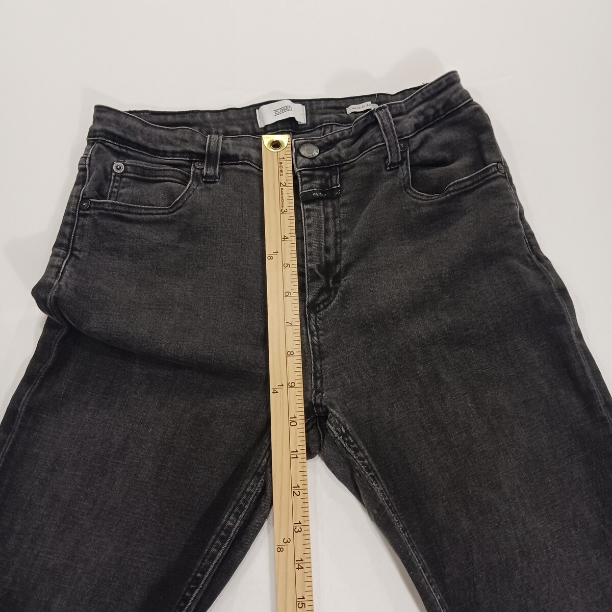 These Closed Jeans are a stylish addition to any woman's wardrobe. Made from a comfortable black cotton blend with a bootcut style, they feature a mid-rise waist and a 5-pocket design. Perfect for all seasons, these vintage-inspired jeans are machine washable and designed to be slimming. Ideal for a casual yet fashionable look, these jeans from Italy are a versatile option for any outdoor-themed outfit.