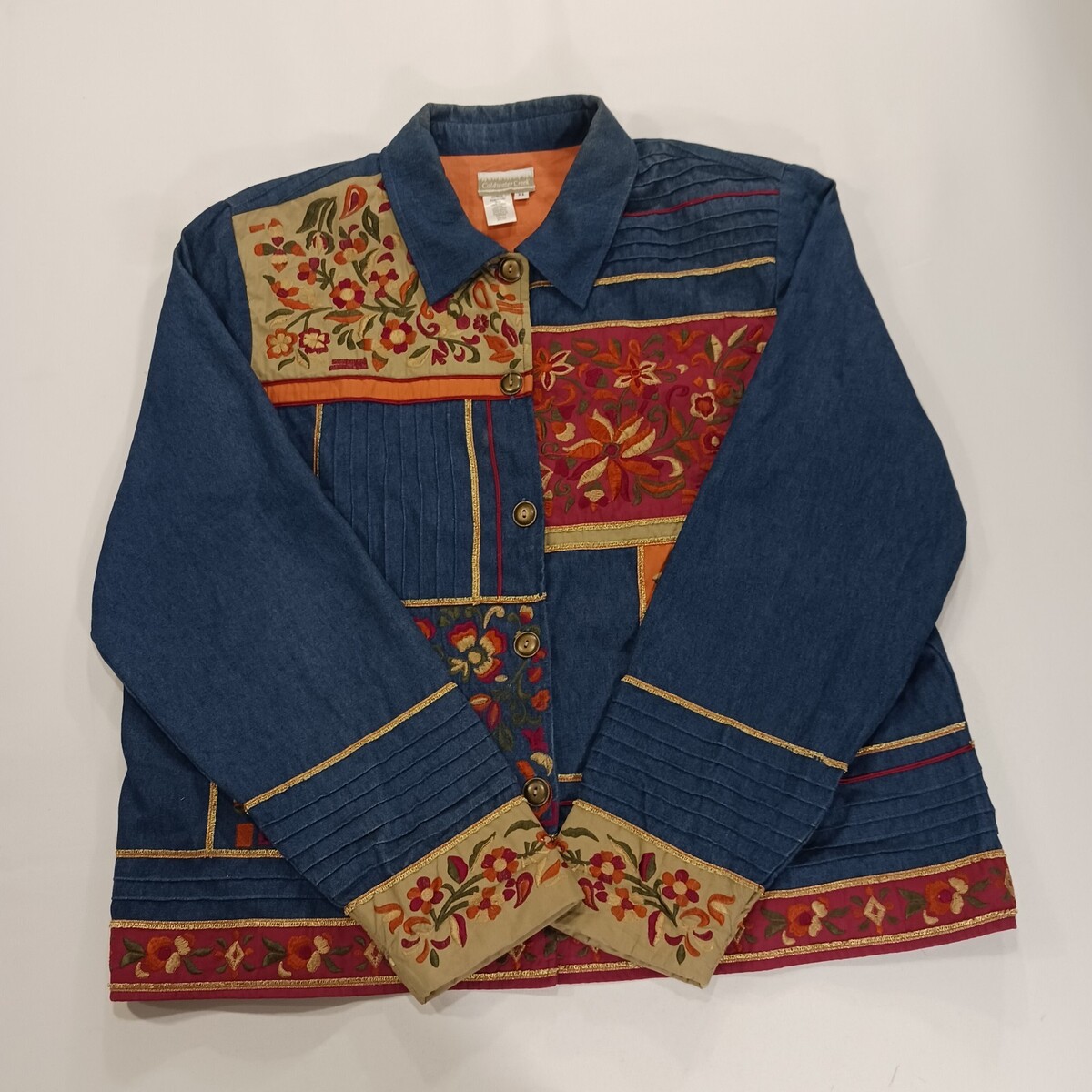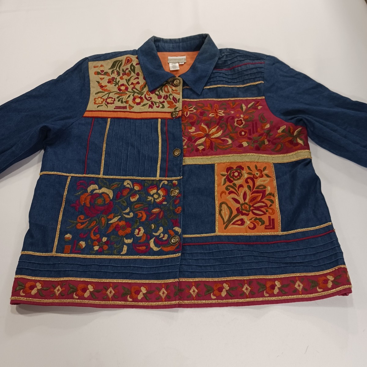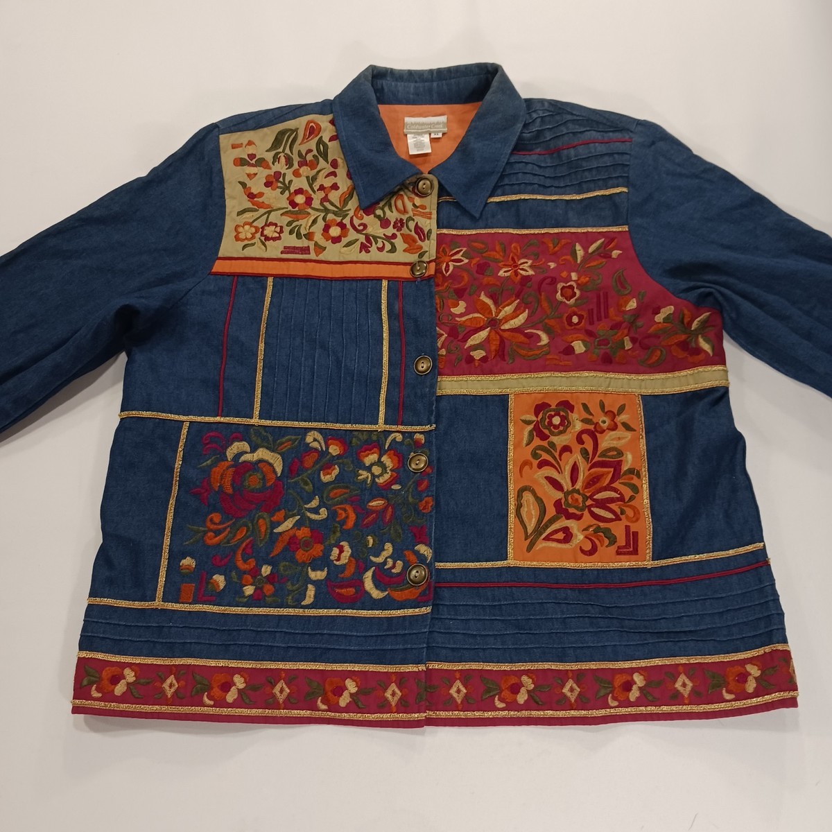 Coldwater Creek RN#98516 Women's Blue Floral Applique Embroidered Jacket Size XL