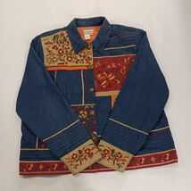 • Coldwater Creek RN#98516 Women's Blue Floral Applique Embroidered Jacket Size XL image 1