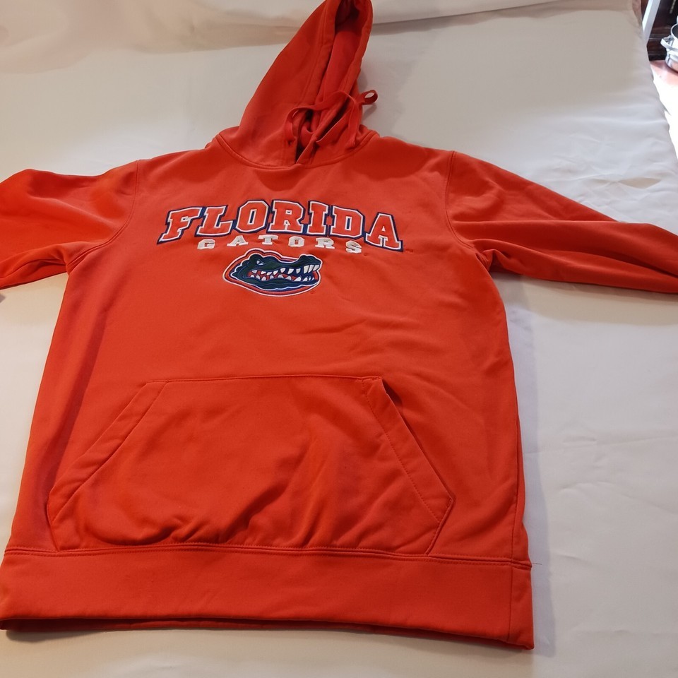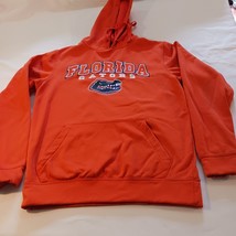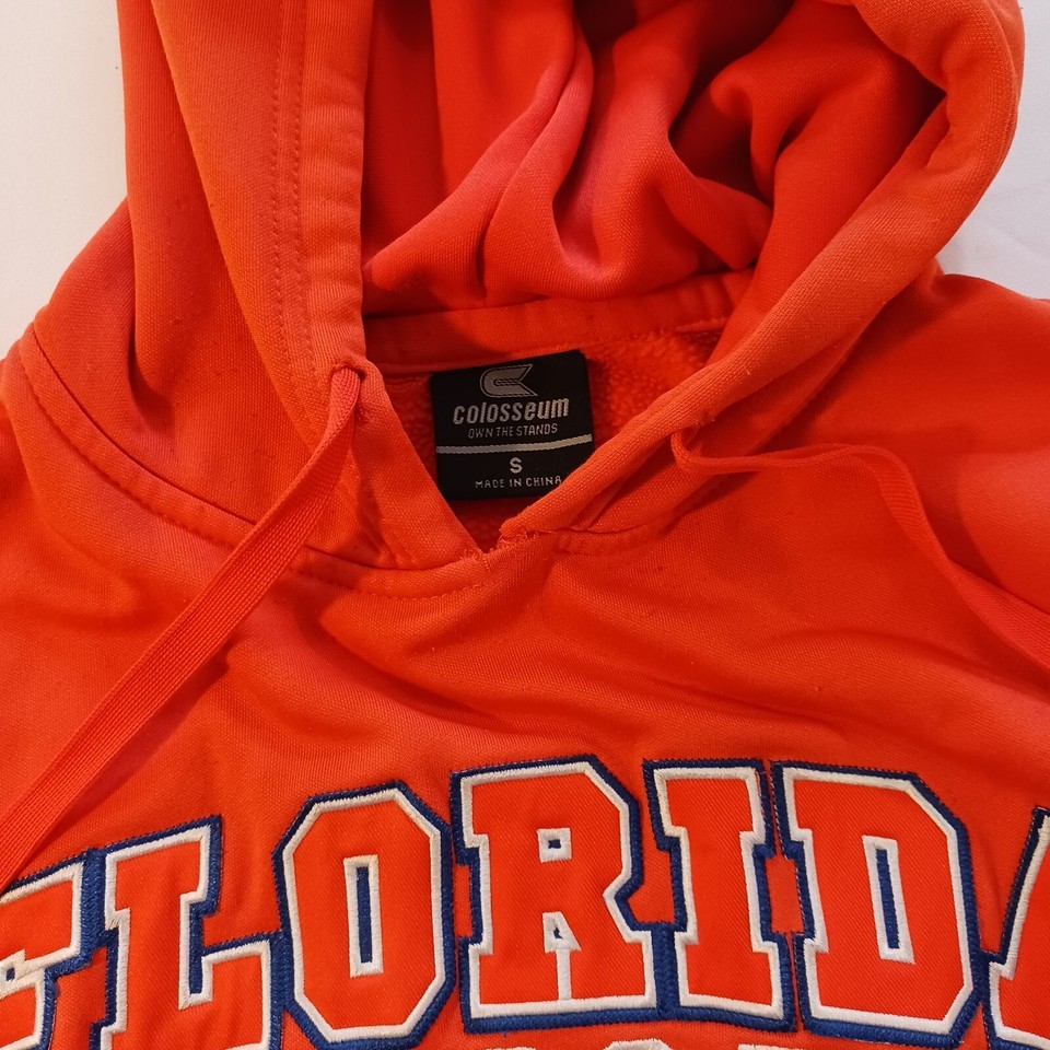 Show your school spirit with this Colosseum Florida Gators Adult Hoodie in bright orange color, perfect for any unisex adult. The long sleeve hoodie features a drawstring closure and is made of a comfortable blend of polyester and cotton material. Whether you're hitting the gym, going for a walk, or playing sports like baseball, basketball, or football, this hoodie is the perfect addition to your activewear collection. The solid pattern and hooded feature make it a stylish and practical choice. And the best part? It's pre-owned, so you can get it at an affordable price without compromising on quality.