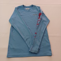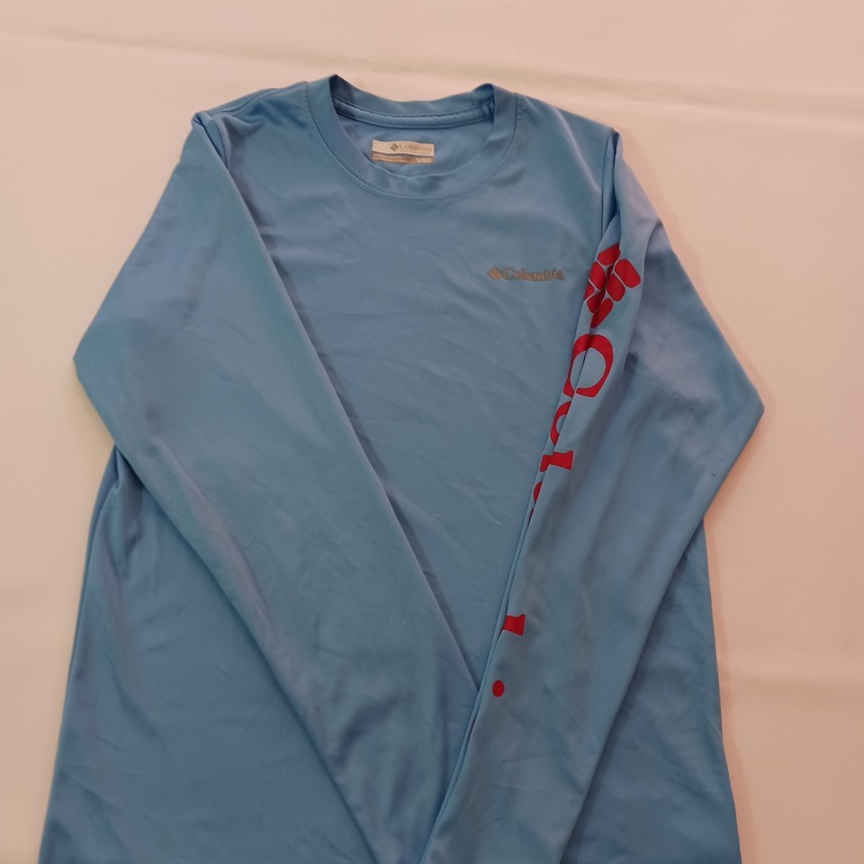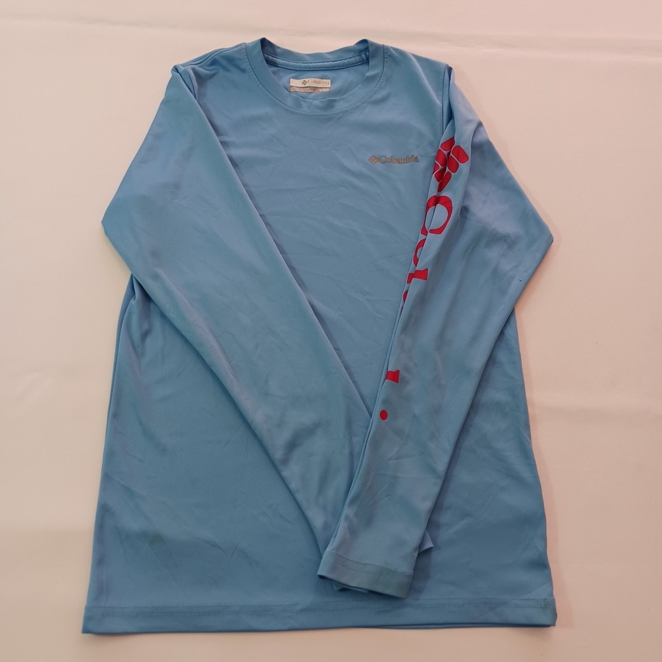 Look stylish and comfortable in this Columbia AB6928 Youth/Boy's Size M (10/12) Blue Long Sleeve Crewneck T-Shirt. It features a graphic print pattern with a crew neck and long sleeves. The polyester material makes it breathable, easy to care for, and suitable for all seasons.