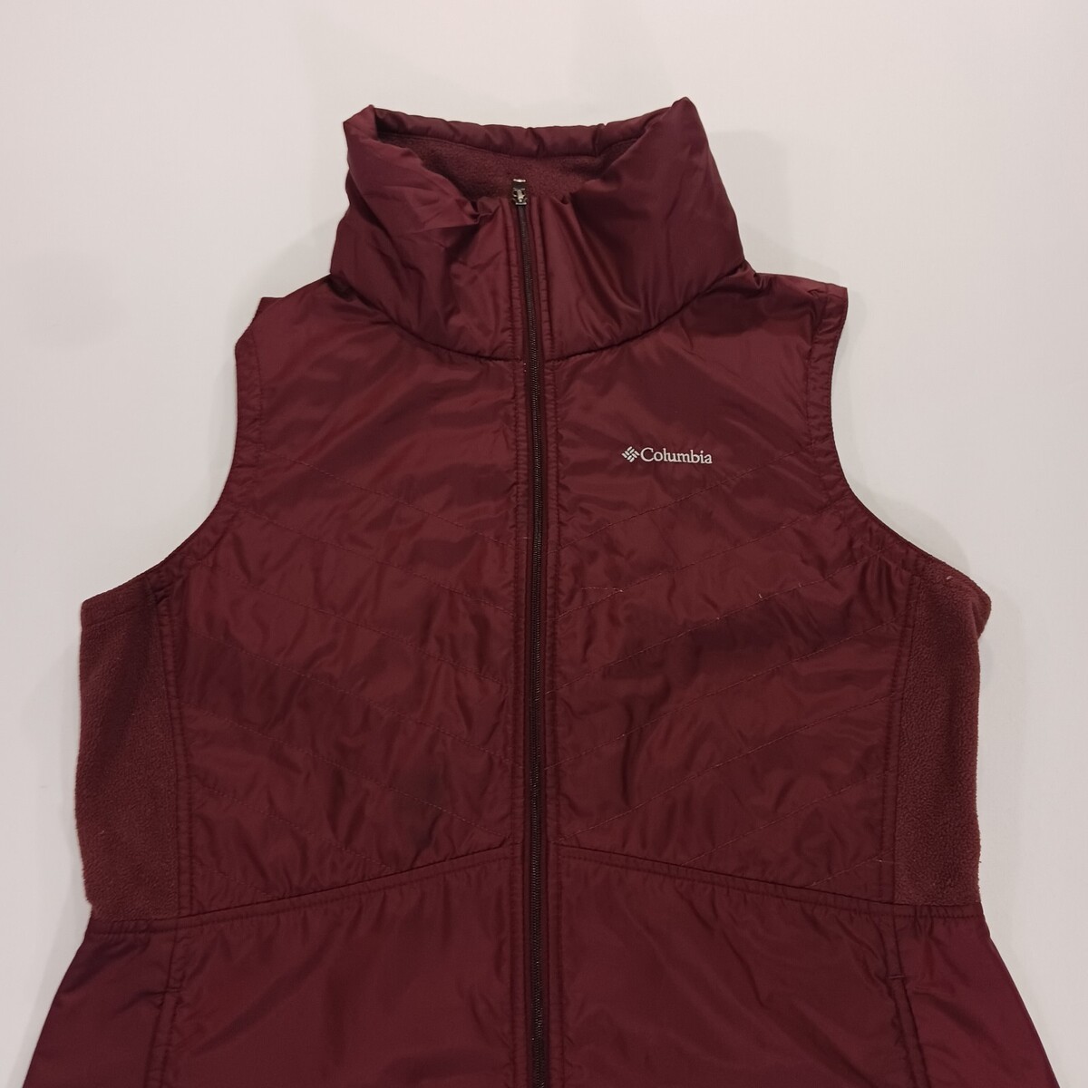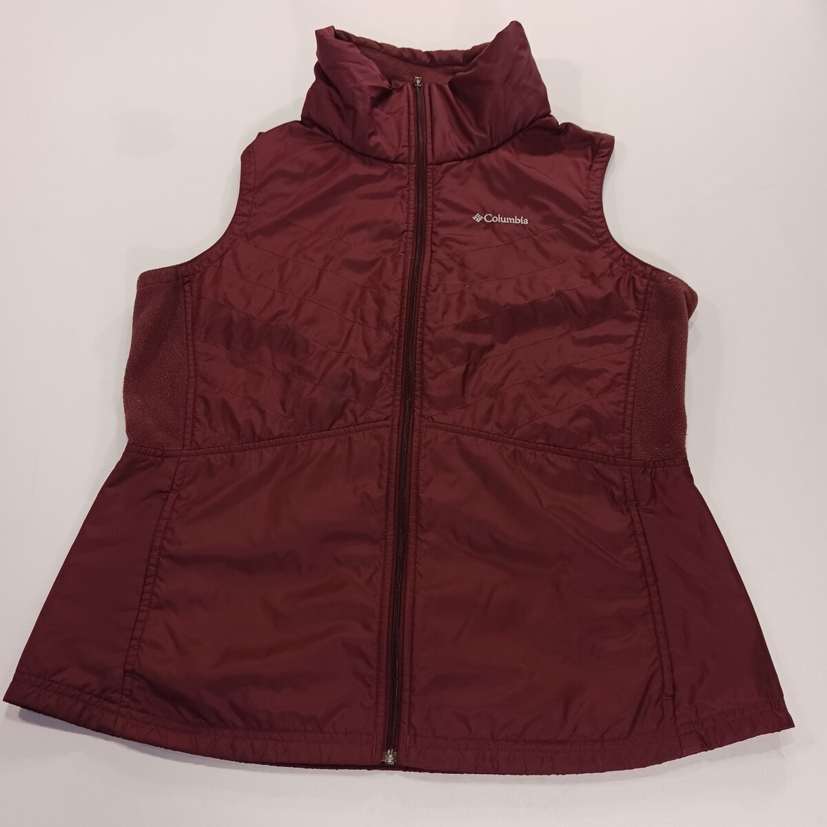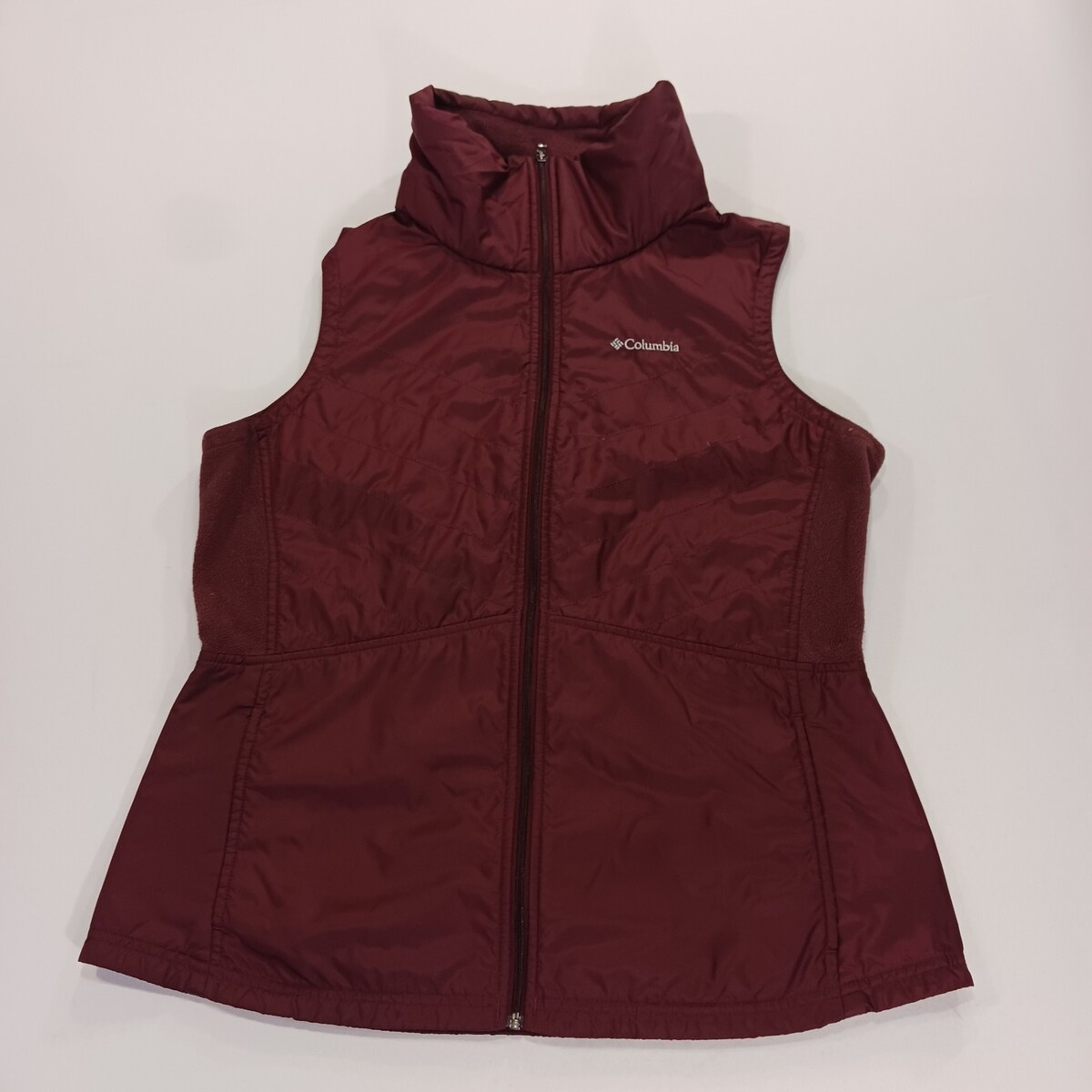 The Columbia AK1147 Women's Red Mix It Around II Vest is a stylish and functional outerwear piece designed for women in size Large. Made of polyester with a nylon lining, this vest features a full zip closure and a sleeveless design, making it perfect for layering in cooler weather. The vibrant blue color and solid pattern add a pop of color to any outfit, while the Columbia brand ensures quality and durability. With a length of 26 inches, this vest is a versatile addition to any wardrobe, offering both comfort and style.