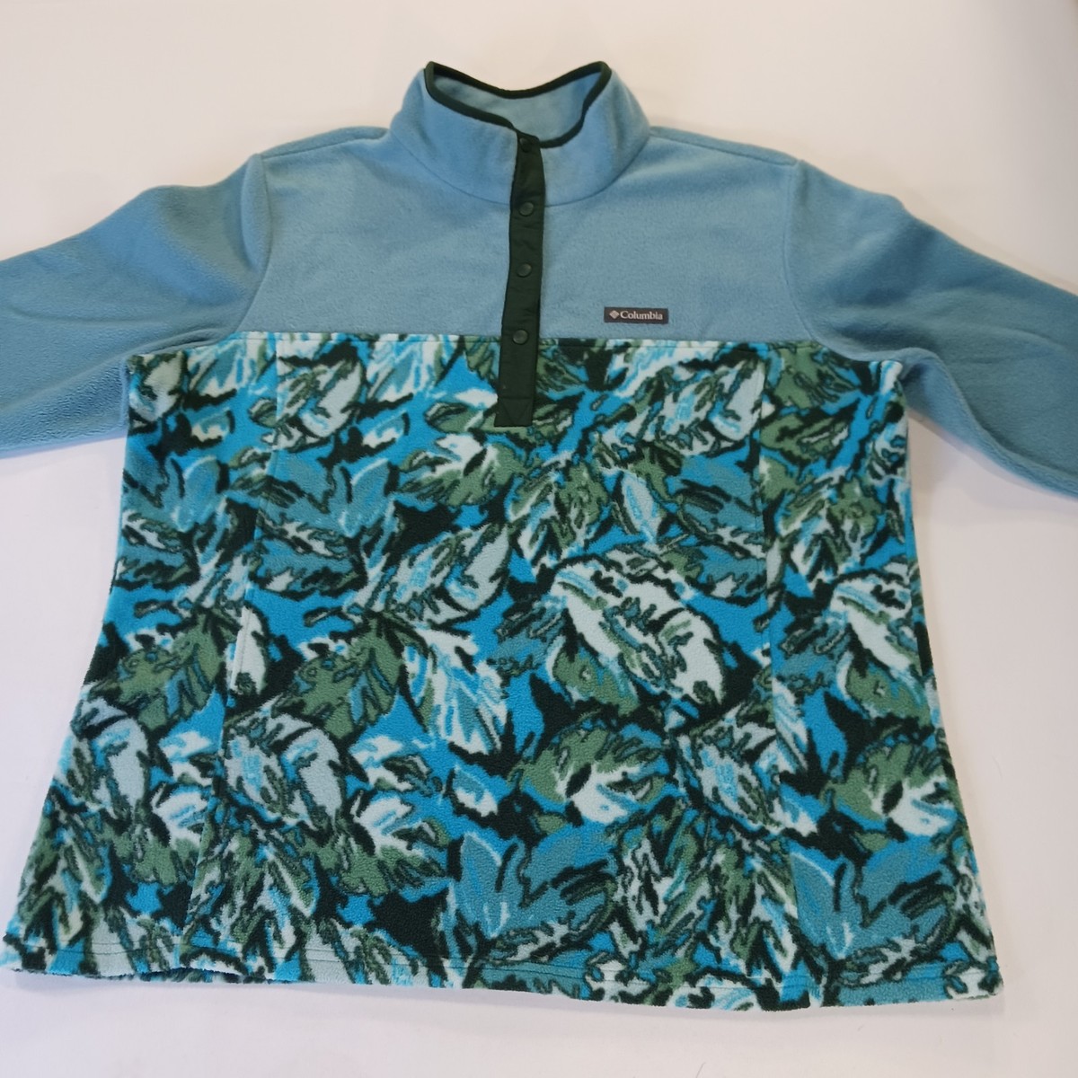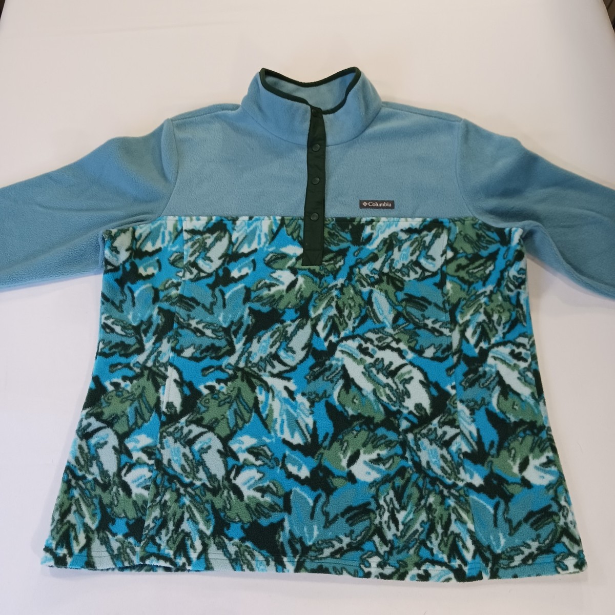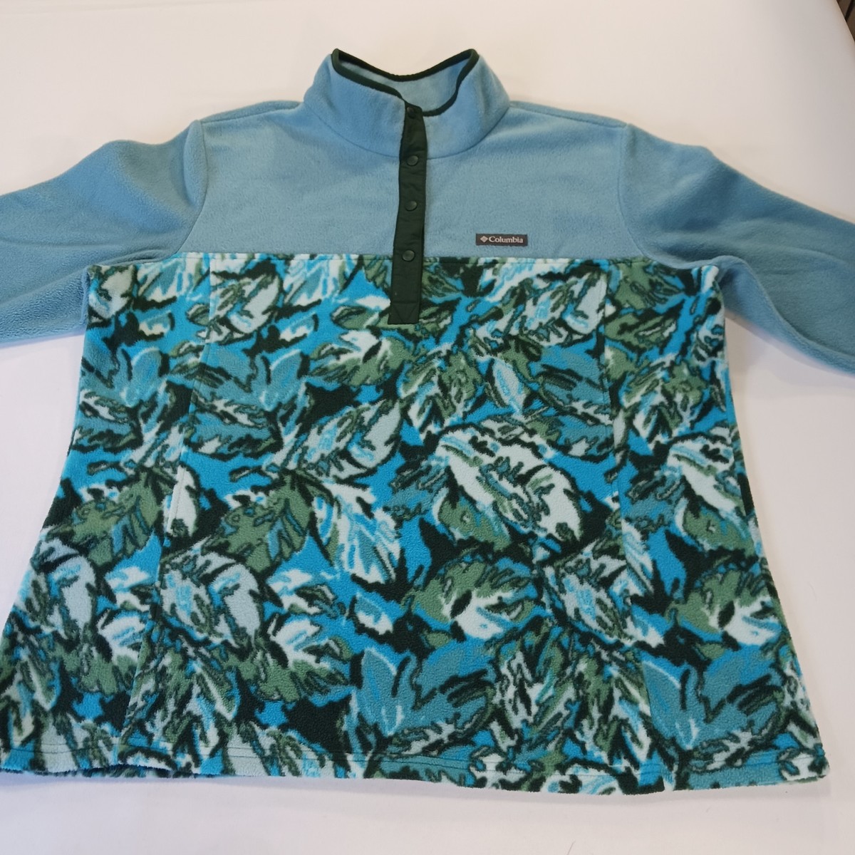 The Columbia AL2906 Women's 2XL Green 1/4 Zip Pullover Fleece Lightweight Sweatshirt is a stylish and practical piece for outdoor activities in the winter, fall, or spring. Made from cozy fleece fabric with a logo accent, this sweatshirt features a mock neck and long raglan sleeves for added comfort. The 1/4 zip design allows for easy layering, while the green floral pattern adds a touch of style. Perfect for walking, hiking, running, and jogging, this Columbia sweatshirt is machine washable for easy care and is sure to keep you warm and comfortable during your active pursuits.
