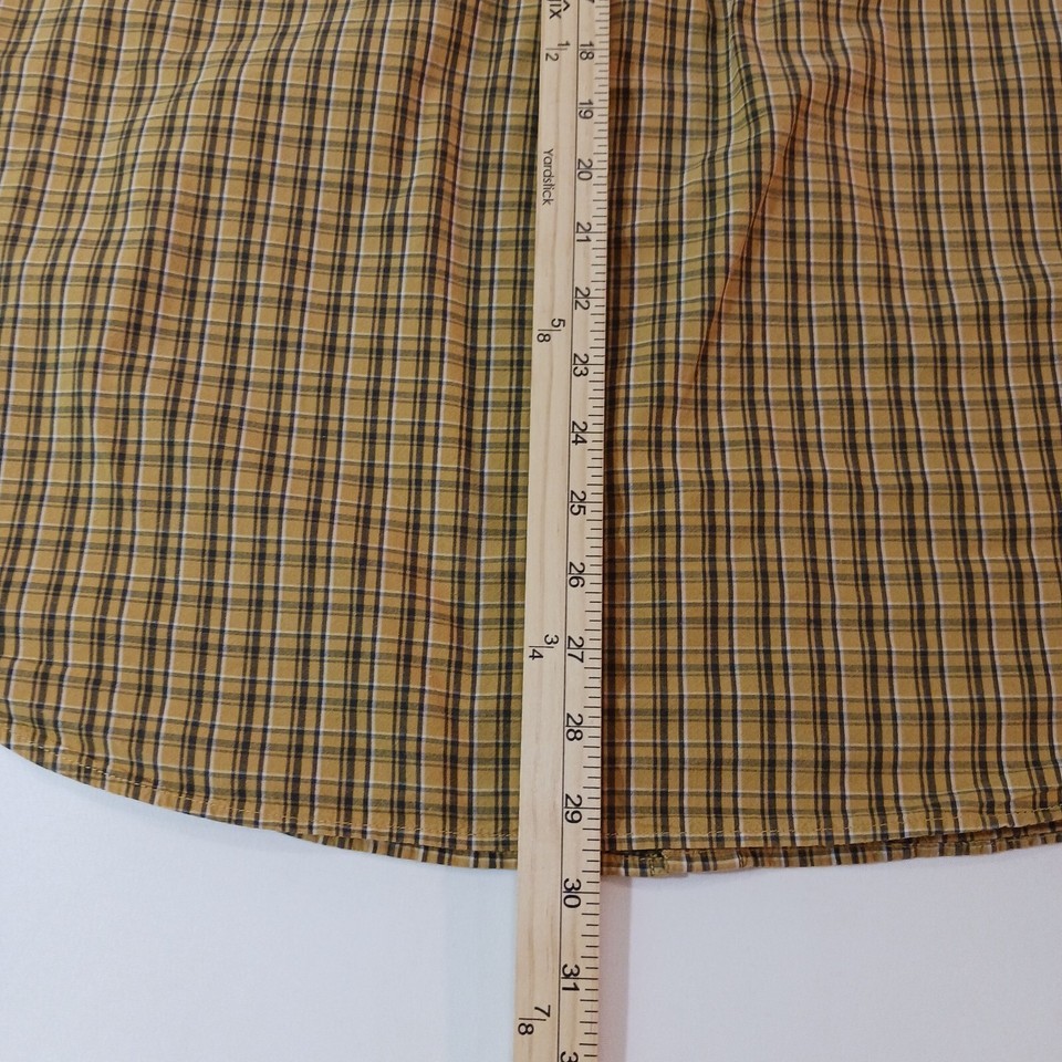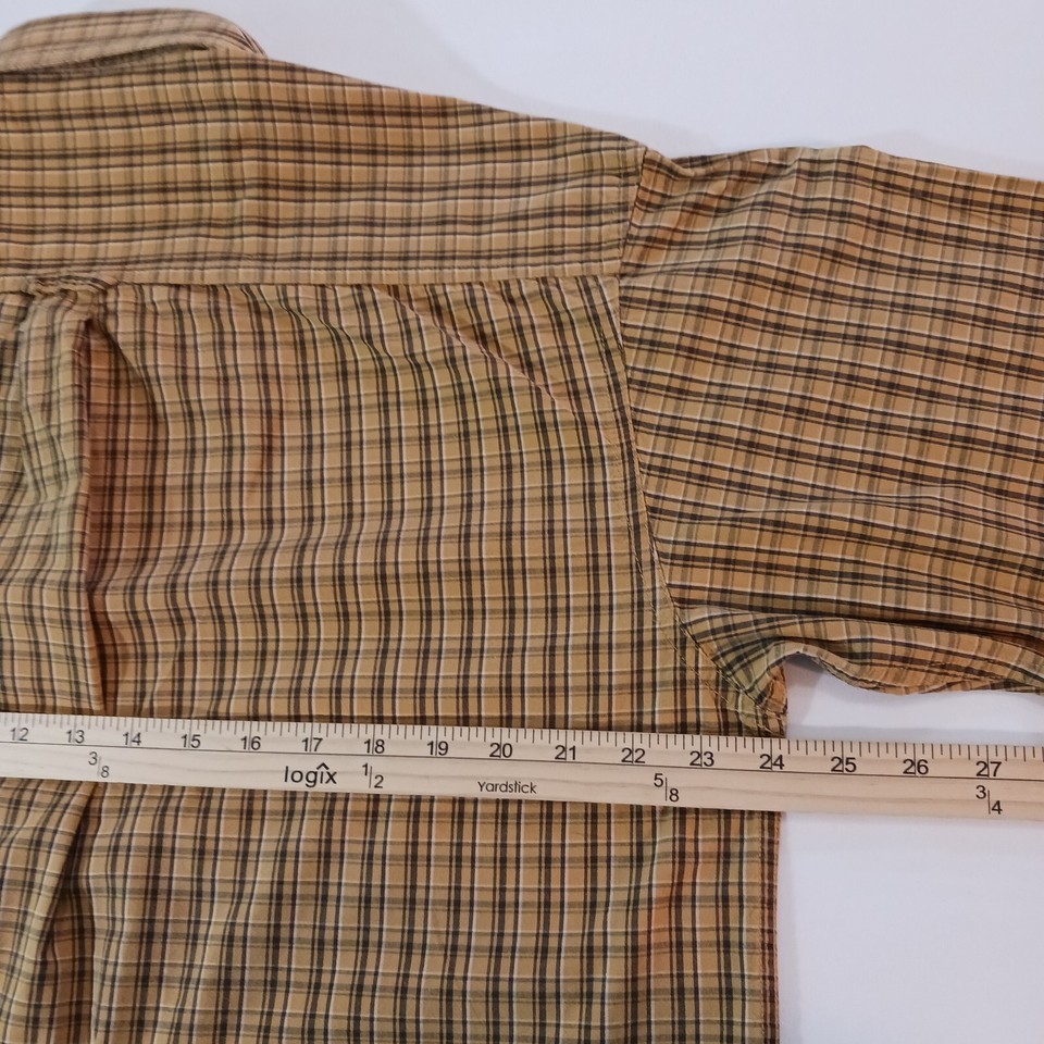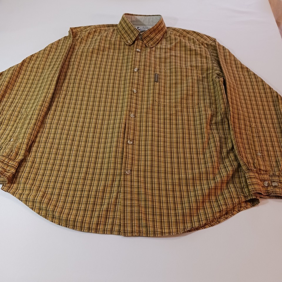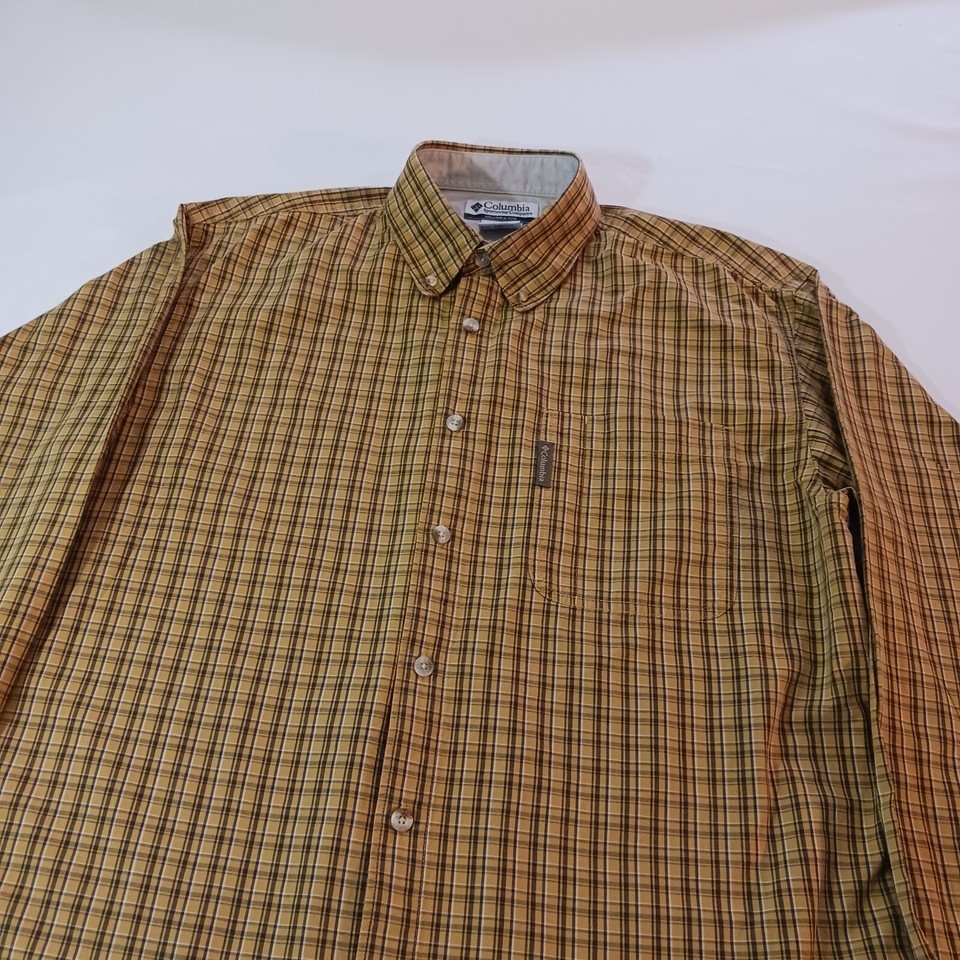 Elevate your wardrobe with this stylish Columbia men's button-up shirt! Made with lightweight cotton fabric, this shirt is perfect for travel, workwear, or casual occasions. The long sleeve, button-down collar and button closure add a classic touch while the yellow and brown plaid pattern gives a modern twist. This shirt is machine washable and fits true to size, making it a must-have addition to any man's wardrobe.