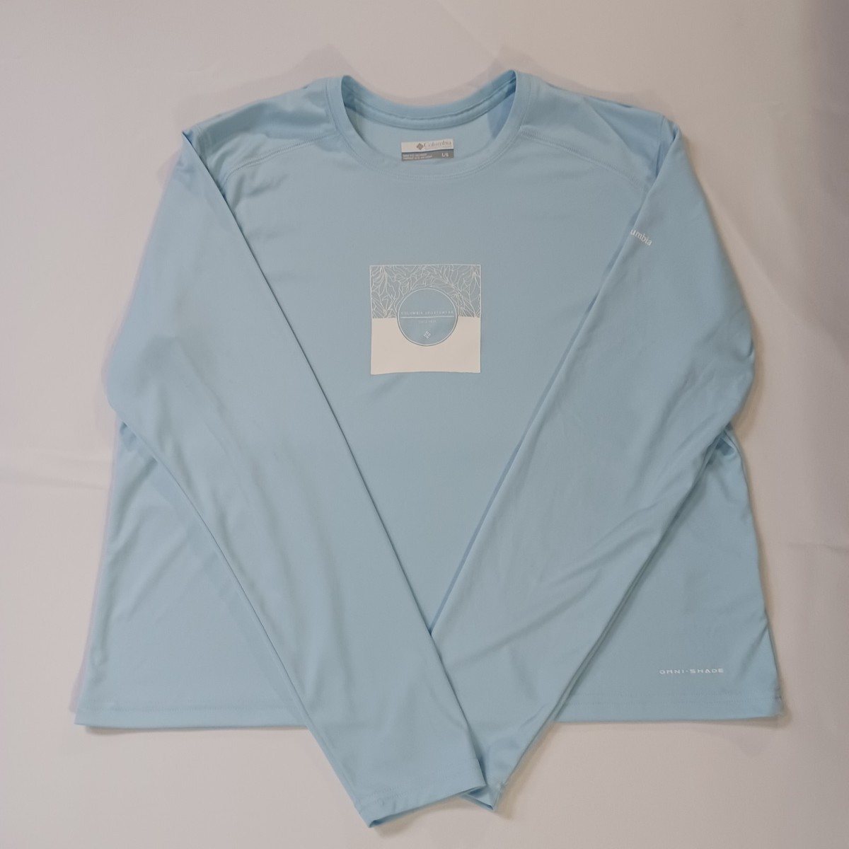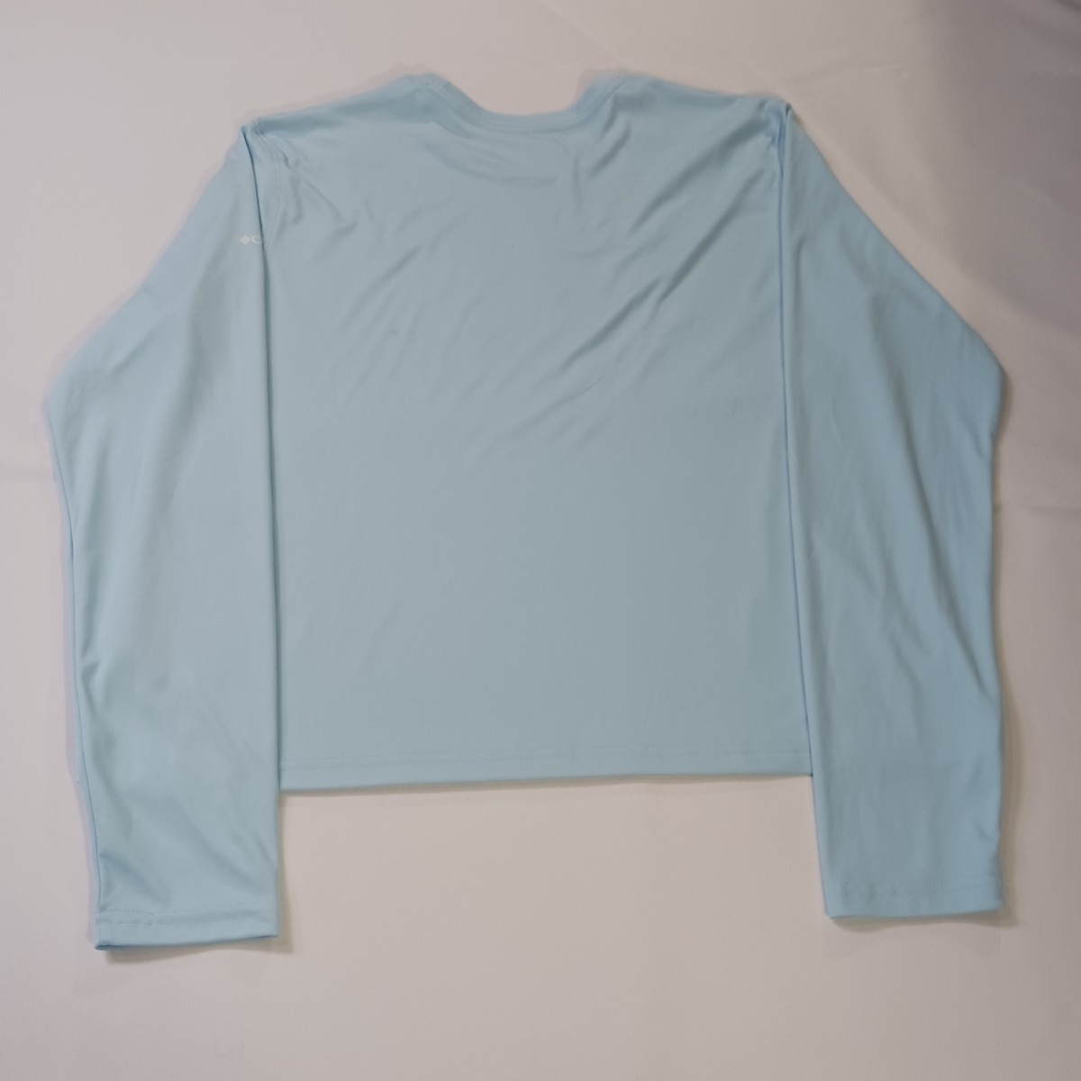 The Columbia Omni-Shade AL8460 Women's Blue Long Sleeve T-Shirt in size Large is a stylish and lightweight activewear top perfect for casual occasions. Made from polyester, this pullover shirt features a comfortable long sleeve design and a flattering chest size of 41 inches. The blue color adds a pop of color to your wardrobe, while the brand's quality and reputation ensure durability and performance. Ideal for active women looking for a versatile and comfortable top to wear during everyday activities. Made in El Salvador, this shirt is a great addition to your activewear collection.