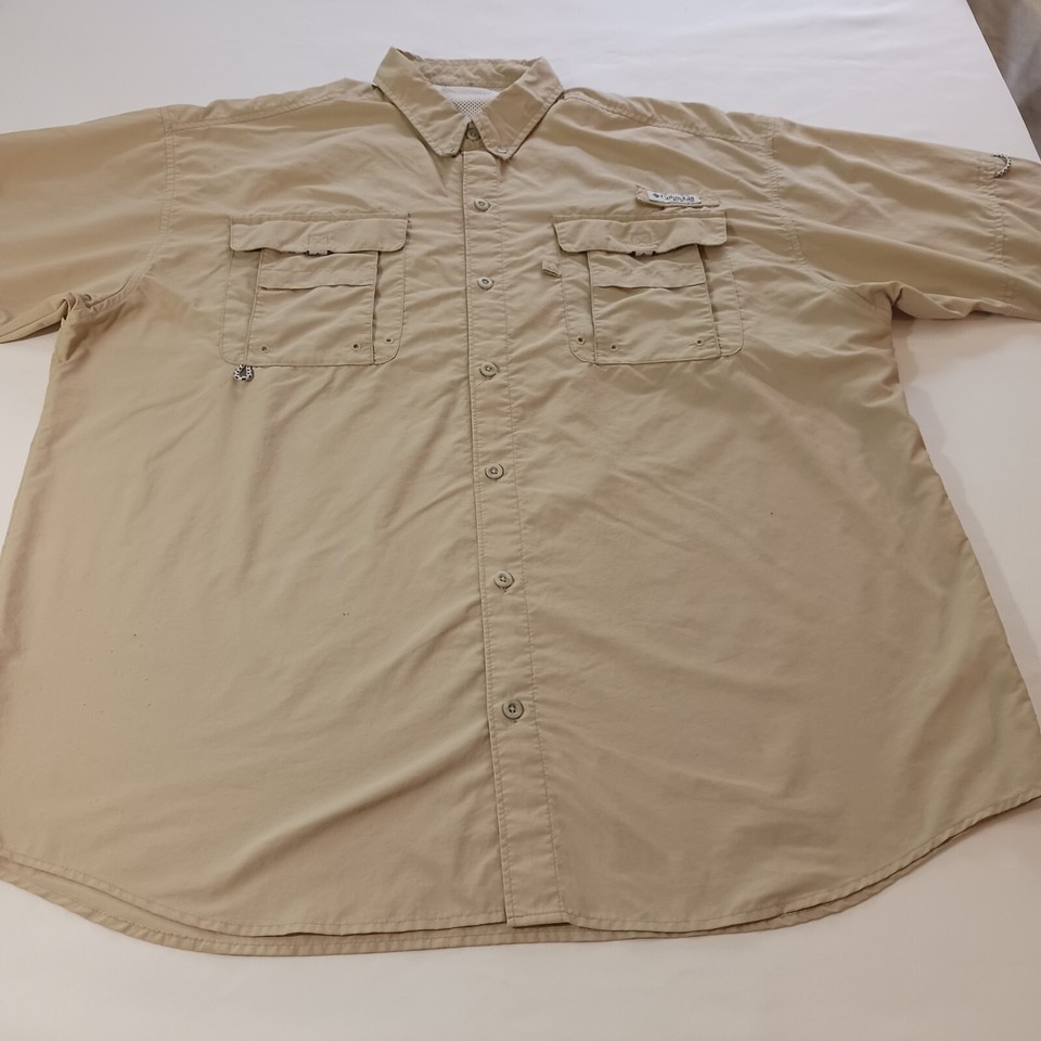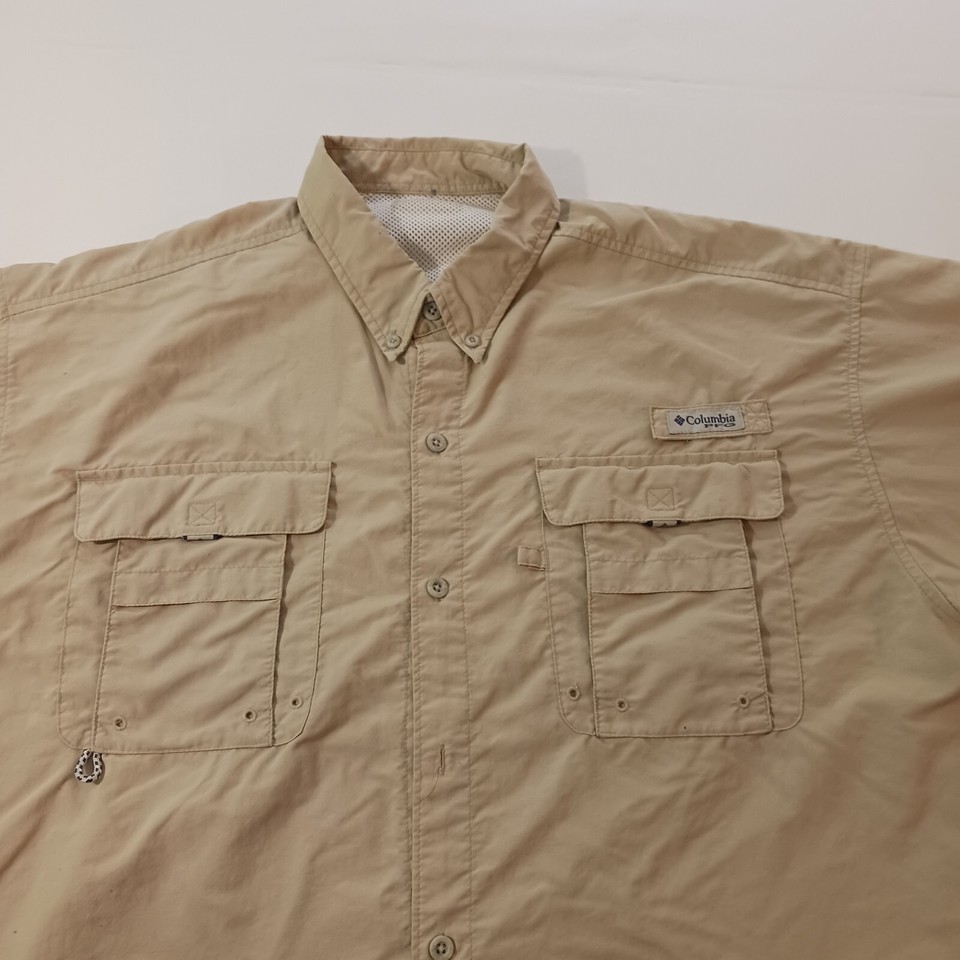 Introducing the Columbia PFG FM7048 Bahama II Men's Fishing Shirt in Tan/Beige color. This shirt is perfect for anyone who loves fishing or outdoor activities. It features a collared neckline with a button-down closure and long sleeves with button cuffs. The shirt is made of a lightweight and breathable material, perfect for summer, fall, or spring seasons.