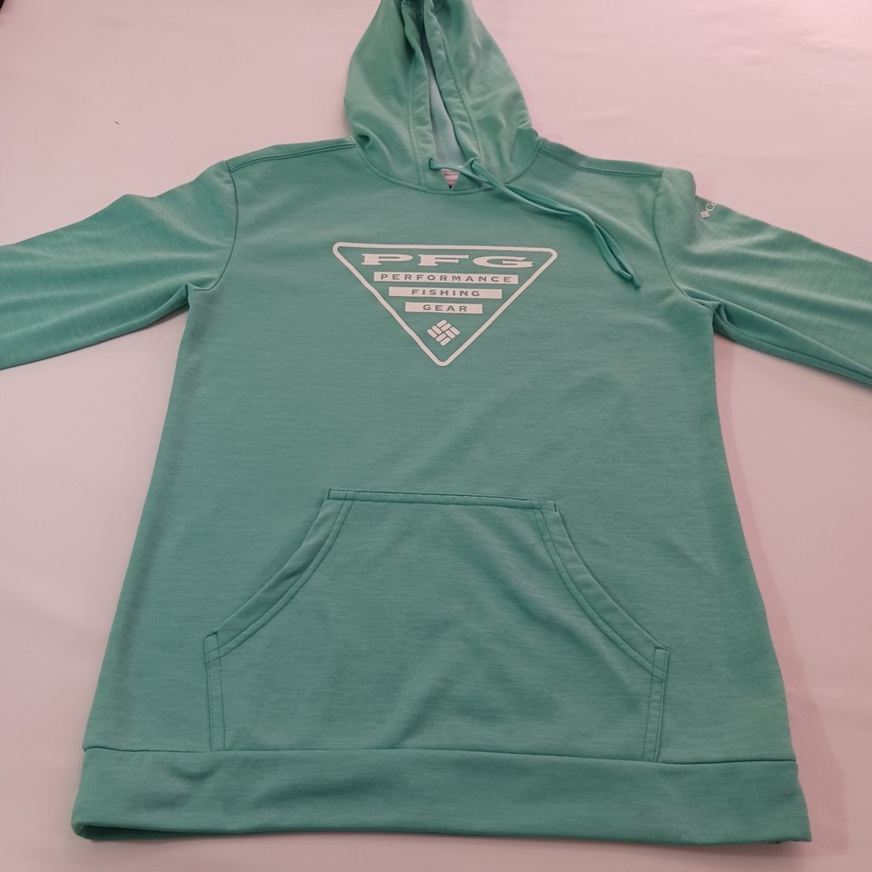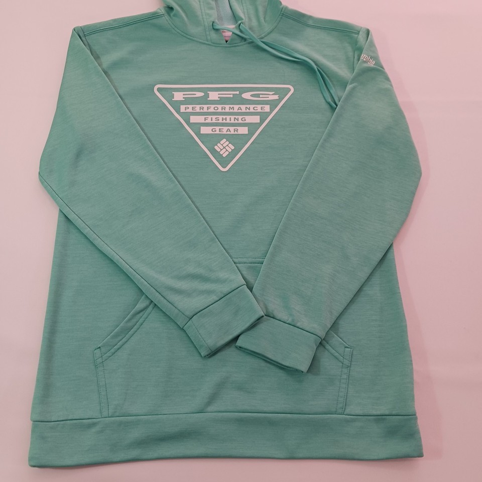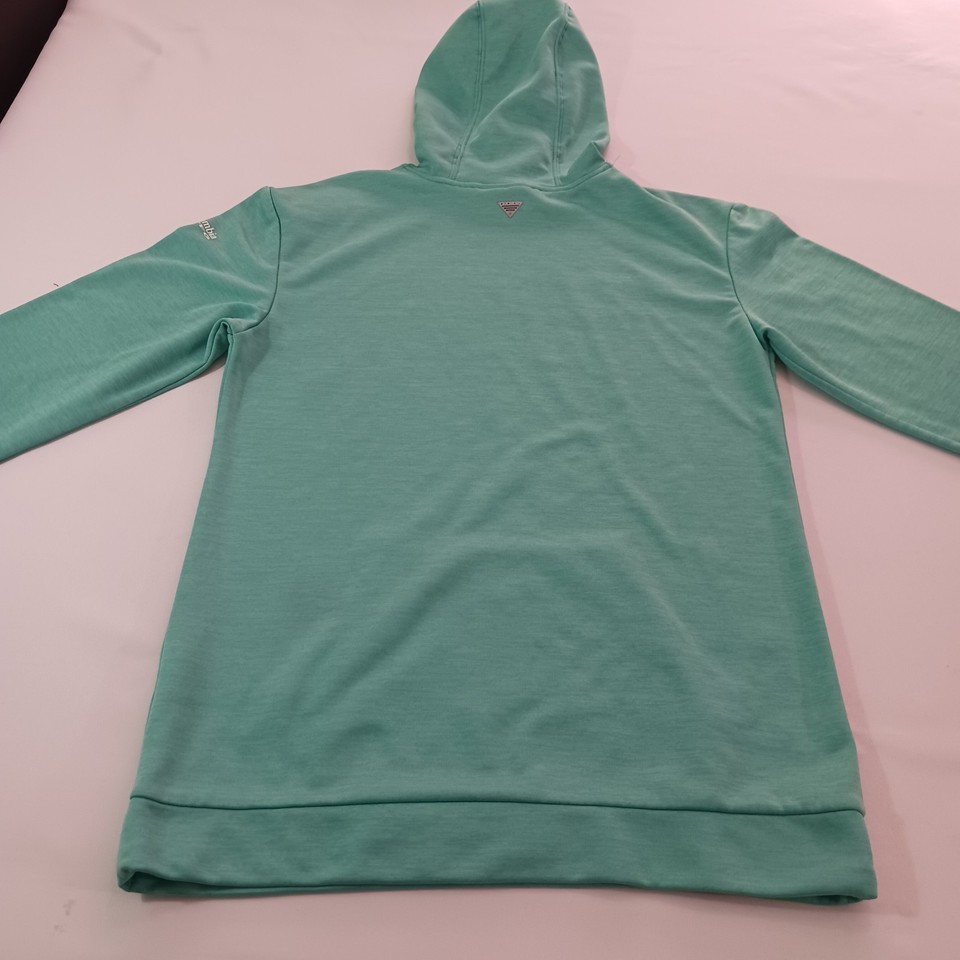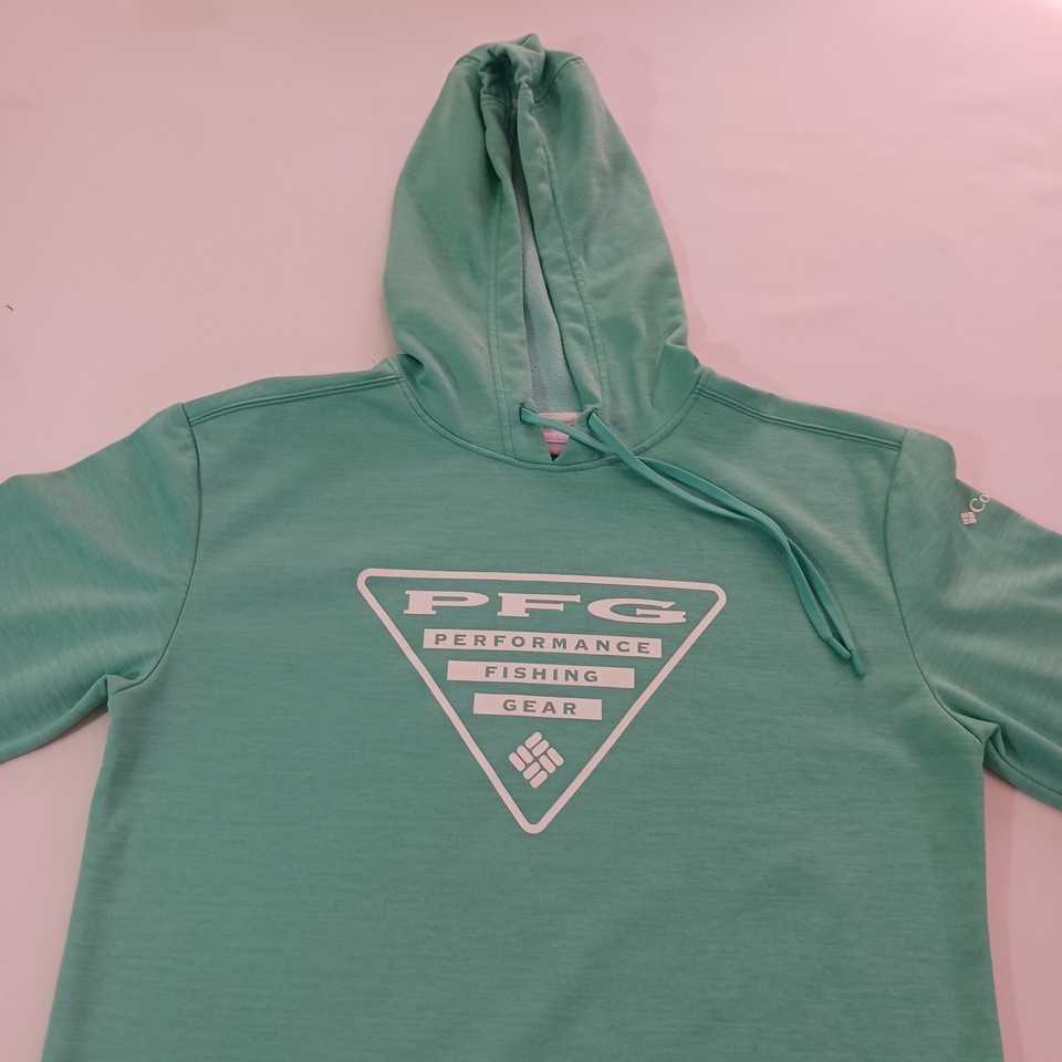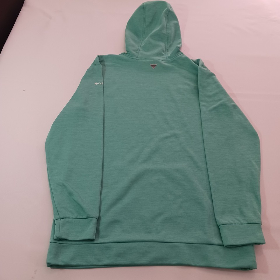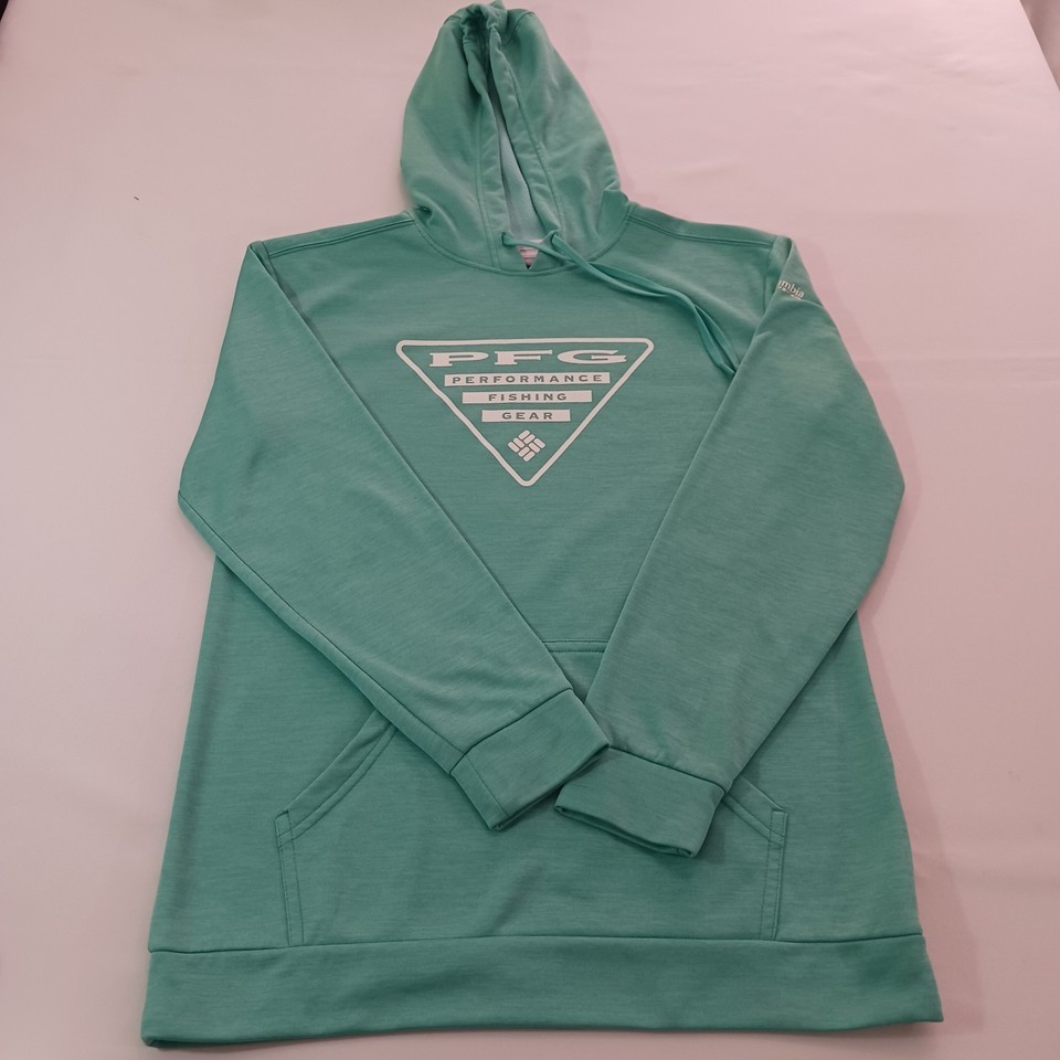 This Columbia PFG Hoodie Sweatshirt is the perfect addition to any activewear collection. With a hooded neckline and long sleeves, it is ideal for outdoor activities such as fishing, hiking, and running. The mint green color and graphic print add a touch of style to this regular fit pullover.