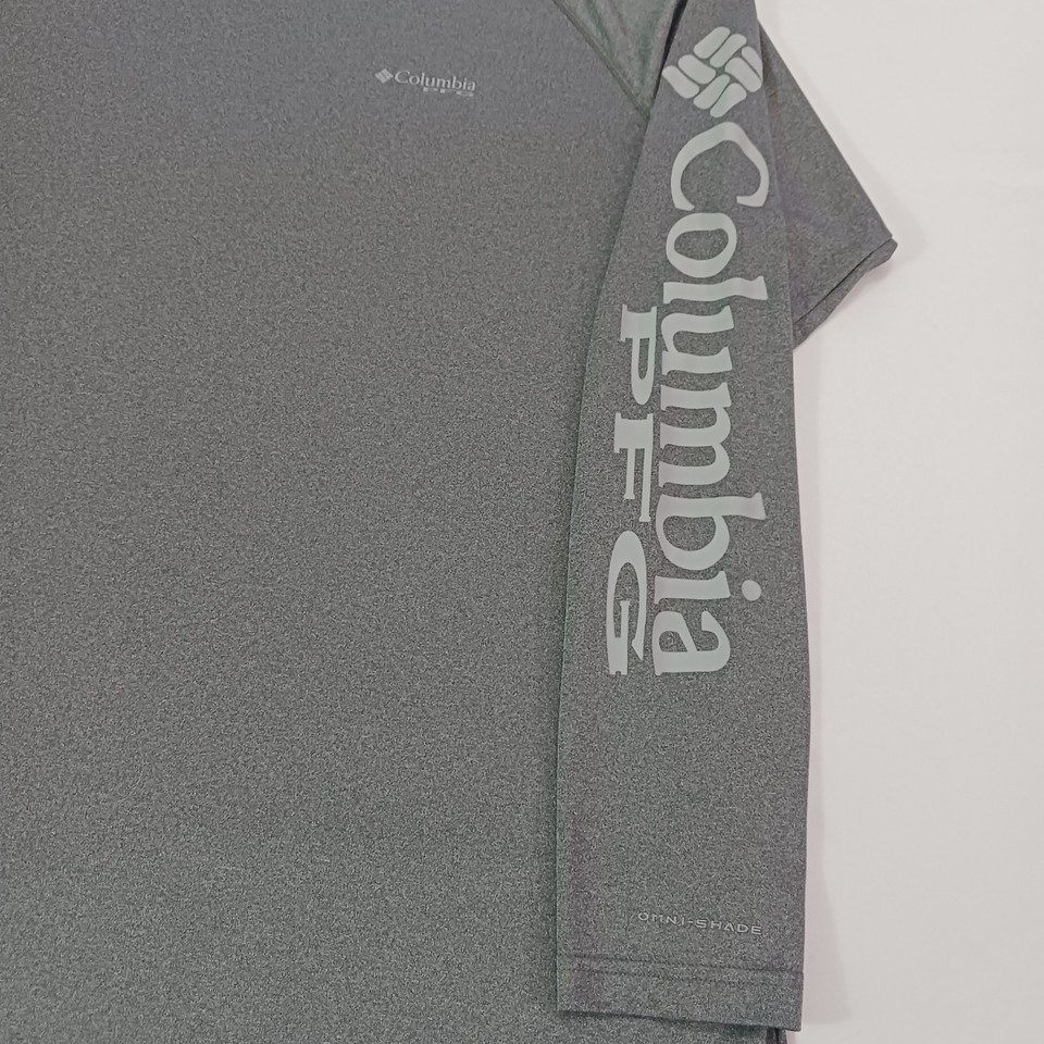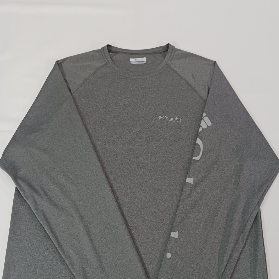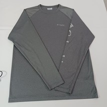 The Columbia PFG M1409 Men’s Gray Fishing Graphic Long Sleeve Pullover Shirt in size Large is a versatile and stylish piece perfect for travel, casual outings, or workwear. Made from lightweight and breathable polyester fabric with a microfiber texture, this shirt features a crew neck and long sleeves, making it suitable for all seasons. The graphic print design with fish-themed logos adds a fun and authentic touch, while the pullover style and regular fit offer comfort and ease of wear. With features like UV protection, moisture-wicking technology, and a quick-dry design, this Columbia PFG shirt is a practical and fashionable choice for any outdoorsman.