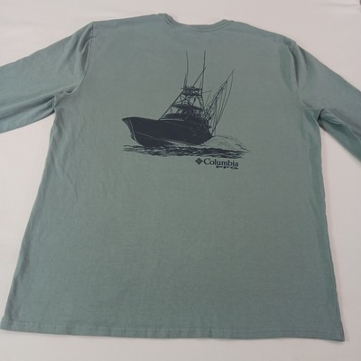 Columbia PFG Men's Gray Cotton Long Sleeve Crewneck Graphic T-Shirt Size X-Large