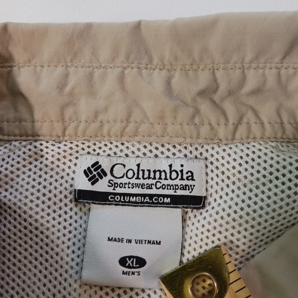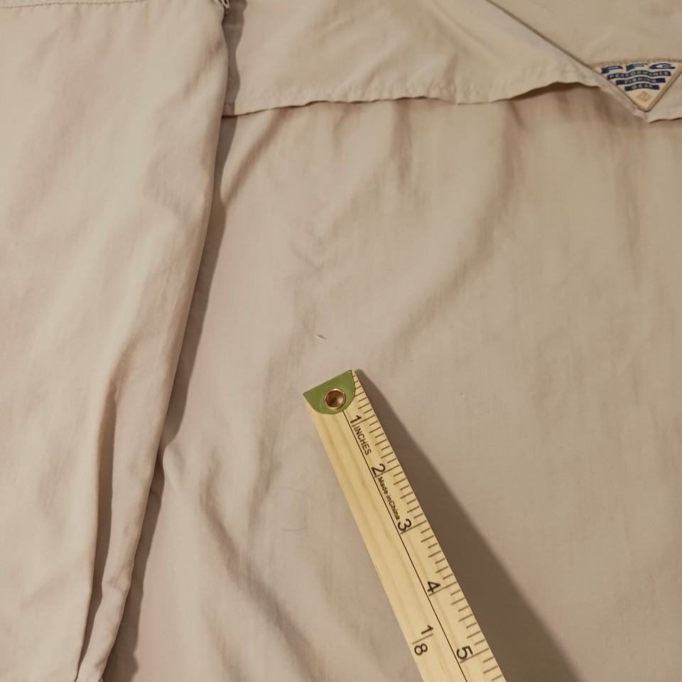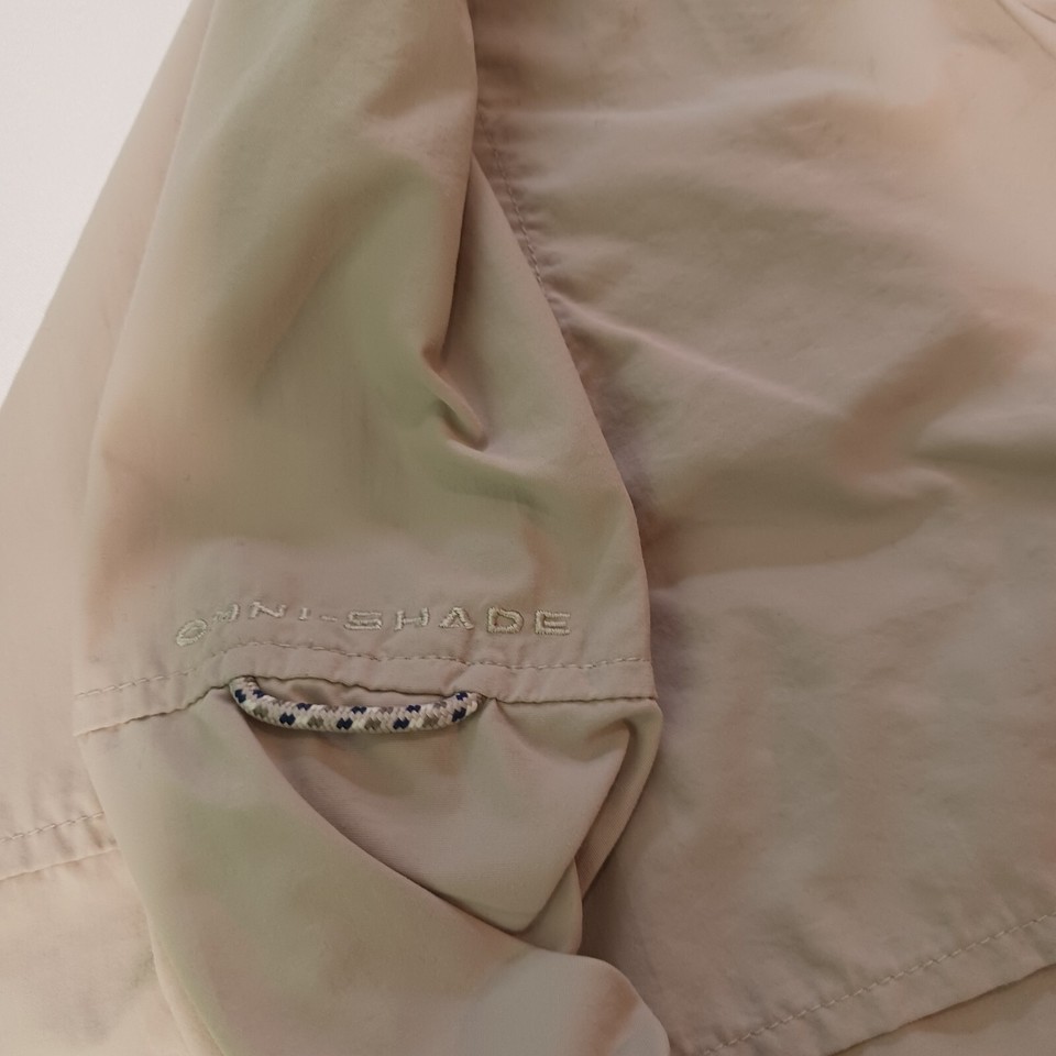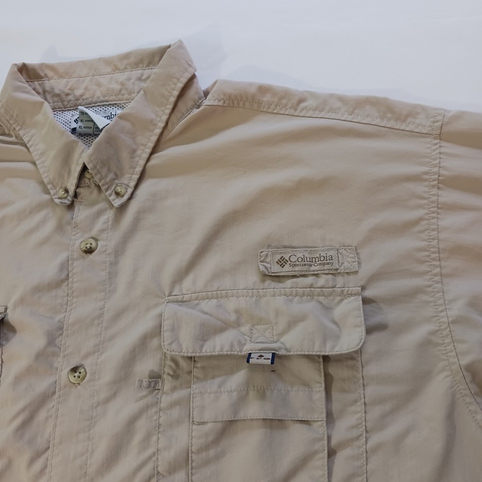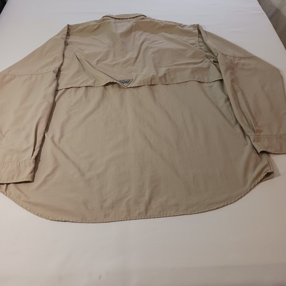 This Columbia PFG Omni-Shade button-up shirt is perfect for any casual occasion. With a solid pattern and beige color, it features a button-down collar and long sleeves, making it suitable for cooler weather. The shirt is made of nylon material and has a regular fit, ensuring comfort and ease of movement.