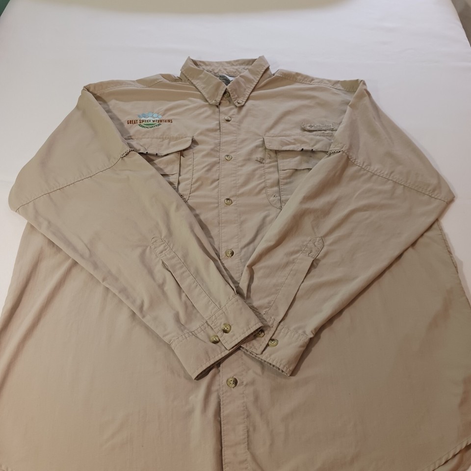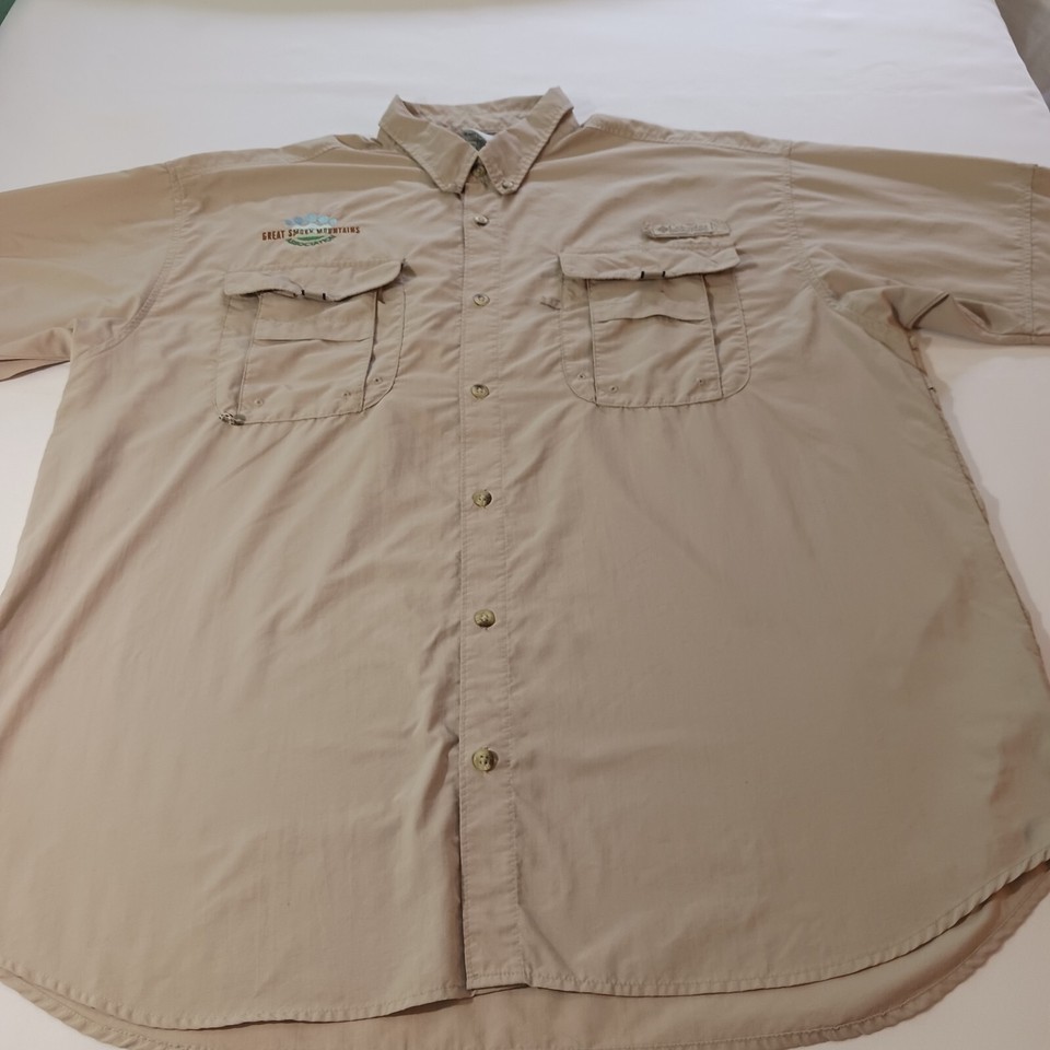 The shirt is designed for men and comes in size XL, with a chest size of 54 inches. It has a button-up closure and is part of the Columbia brand. The shirt is perfect for wear in the Great Smoky Mountains and is a must-have for any wardrobe.