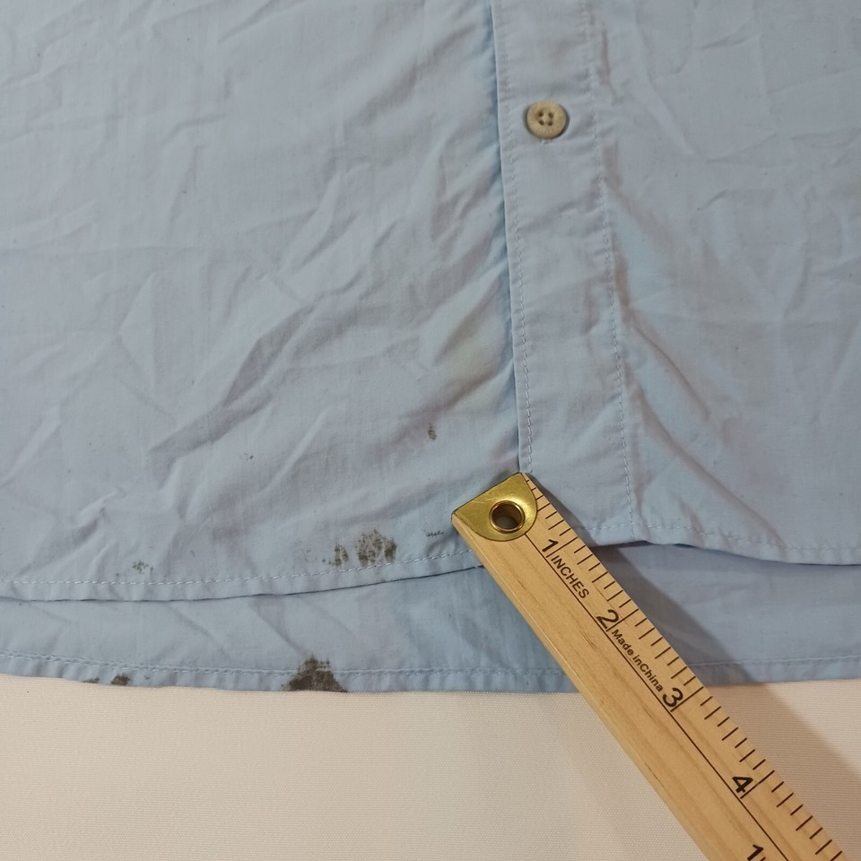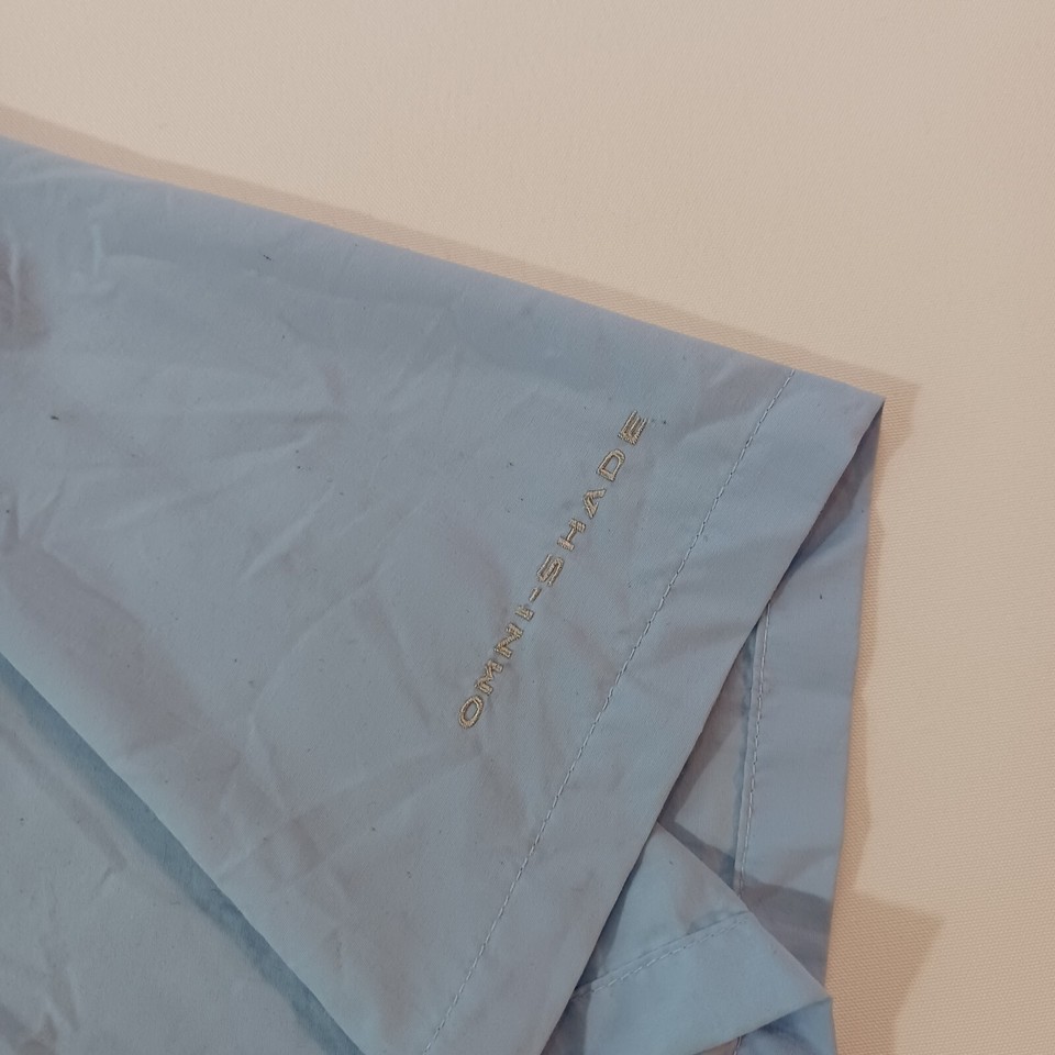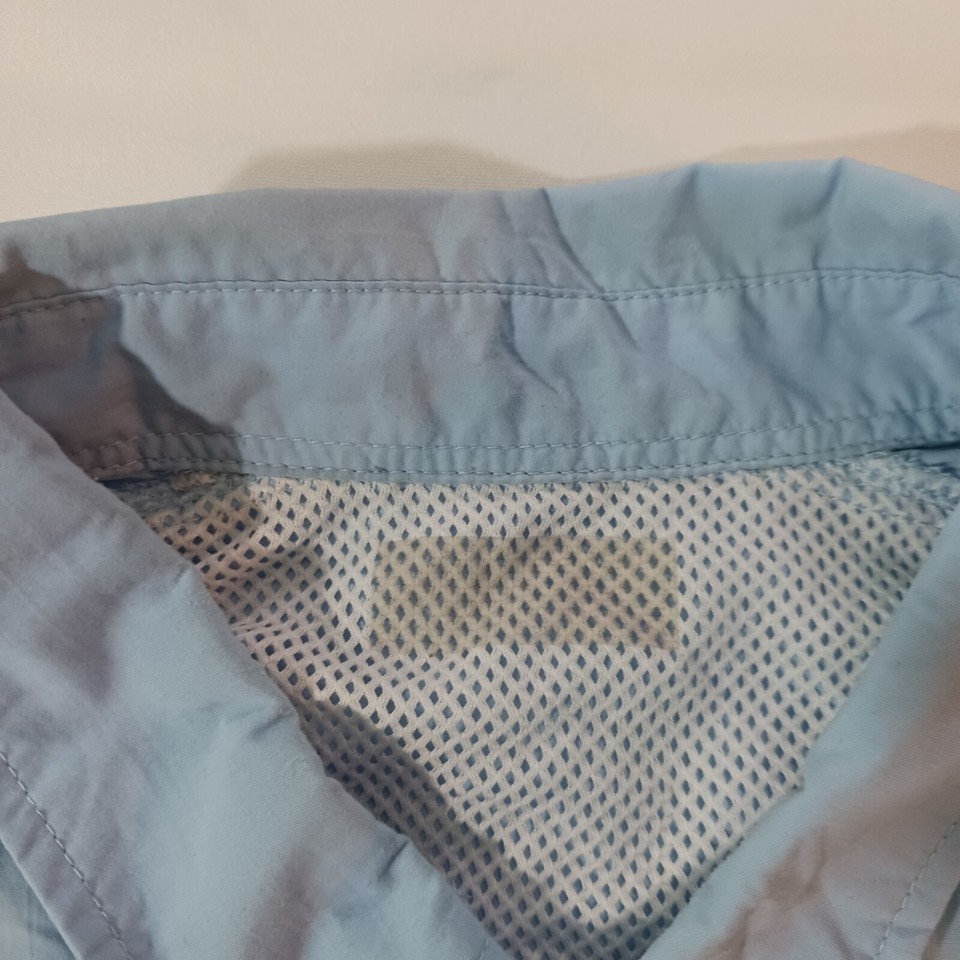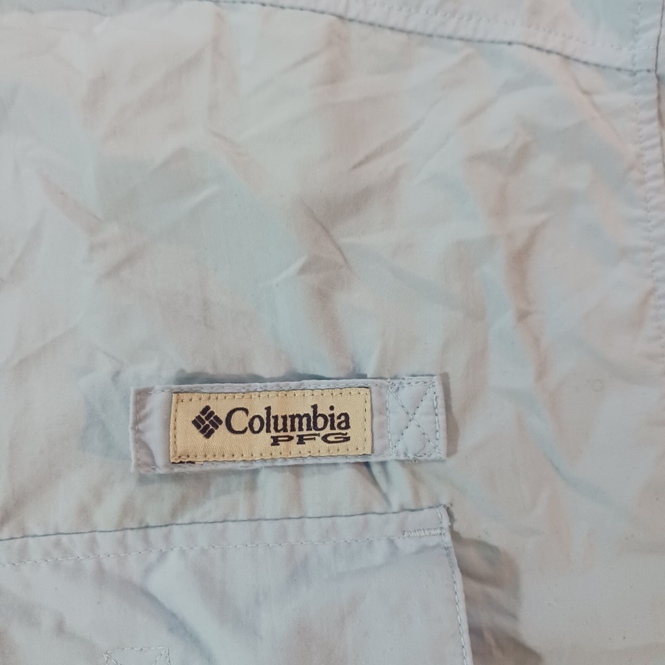 This Columbia PFG Omni Shade shirt is a classic short-sleeve button-up designed for men. It features a collared neckline with a button-down collar style, and the chest size measures 54 inches. The shirt comes in a solid blue color and is made of nylon material. The vintage status is unknown, but the brand is Columbia, known for its quality outdoor apparel. This shirt is part of the Men's Clothing department and is a regular fit size. Perfect for a casual and timeless style.