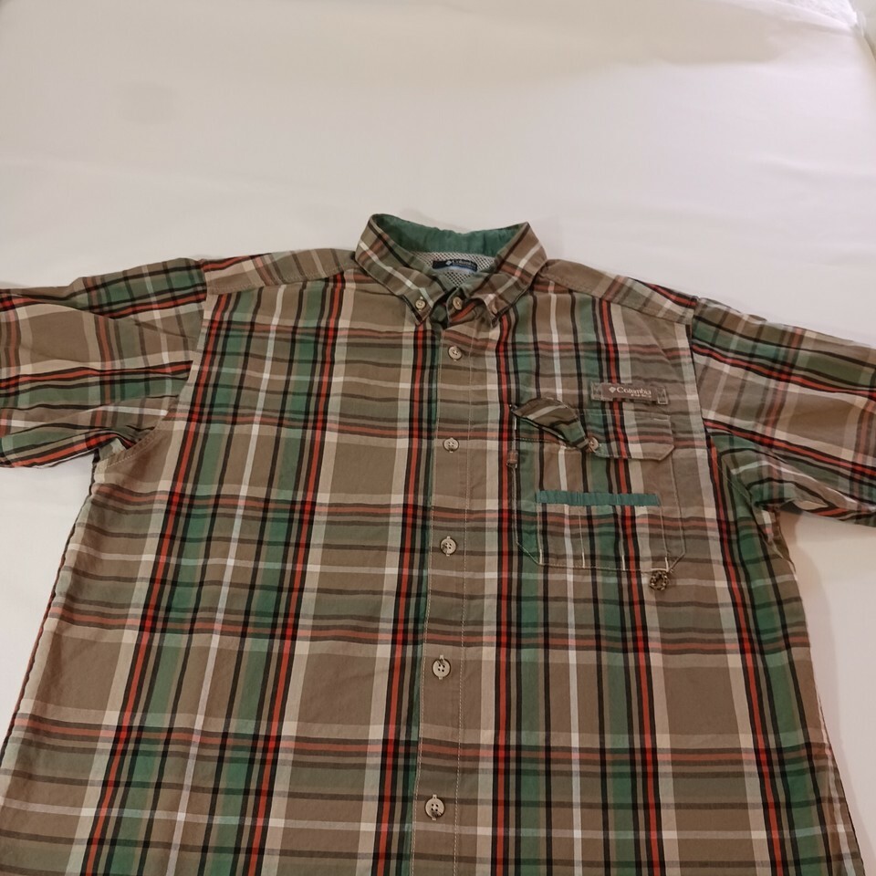 • Columbia PHG Men's Sz L Brown Plaid Vented Short Sleeve Button-Down Shirt HM0025 image 1