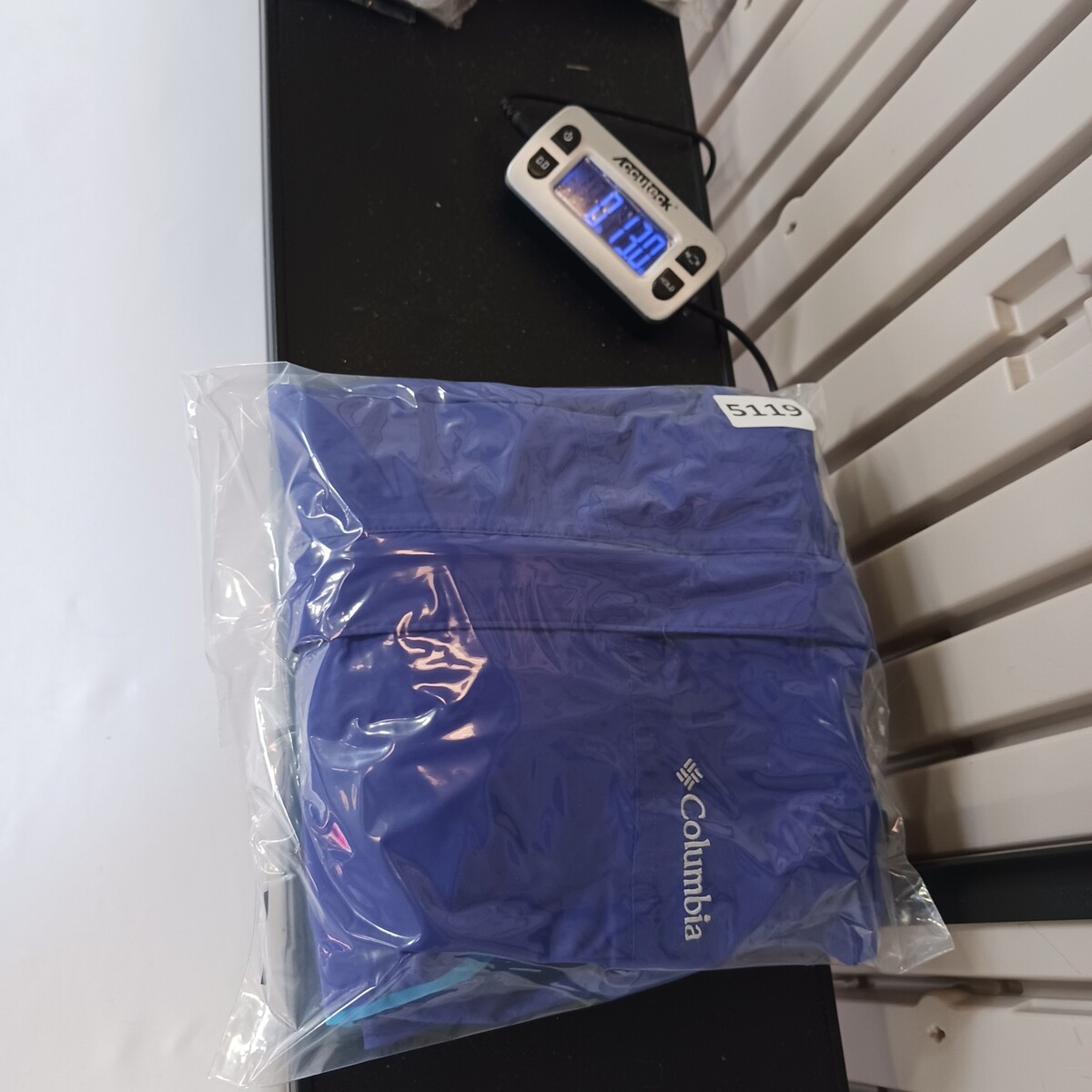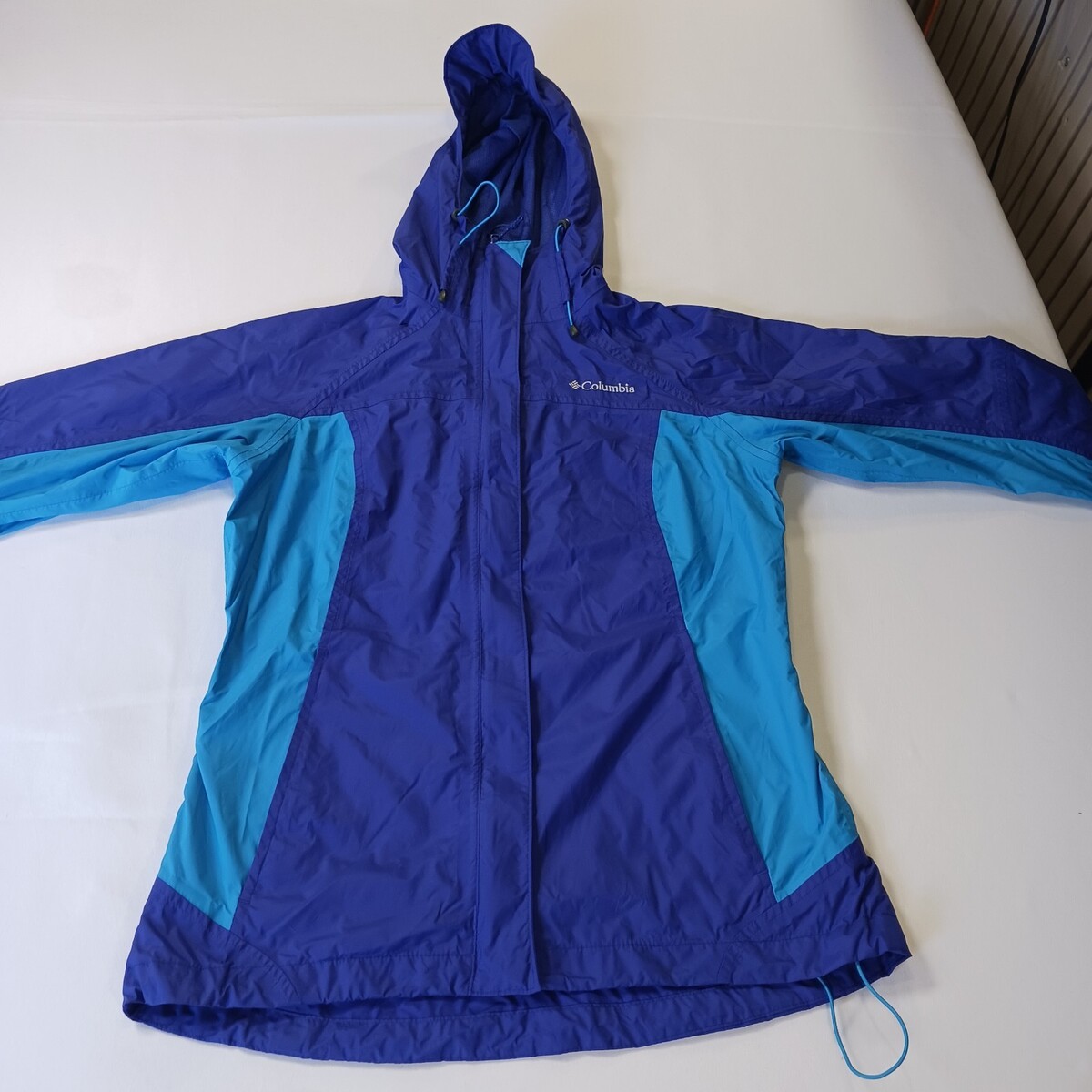 The Columbia RL2111 Women's Blue Omni-Tech Acardia II Rain Jacket Hoodie in size small is a stylish and functional outerwear option for travel during the fall and spring seasons. Made with a durable nylon outer shell, it features a zip closure, hood, and multiple pockets for convenience. The jacket is waterproof, wind-resistant, and breathable, making it perfect for outdoor activities. With its sleek design and logo accents, this Columbia jacket combines practicality with a touch of style for the modern woman on the go.