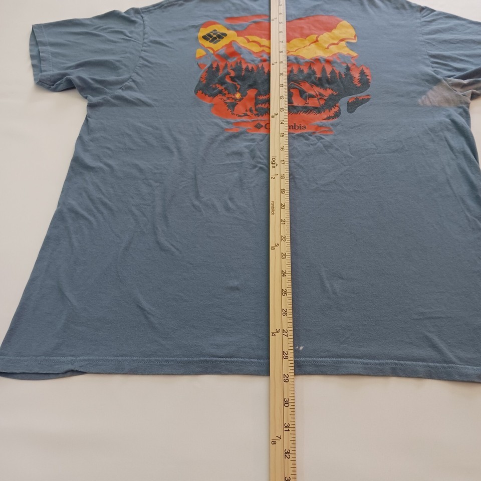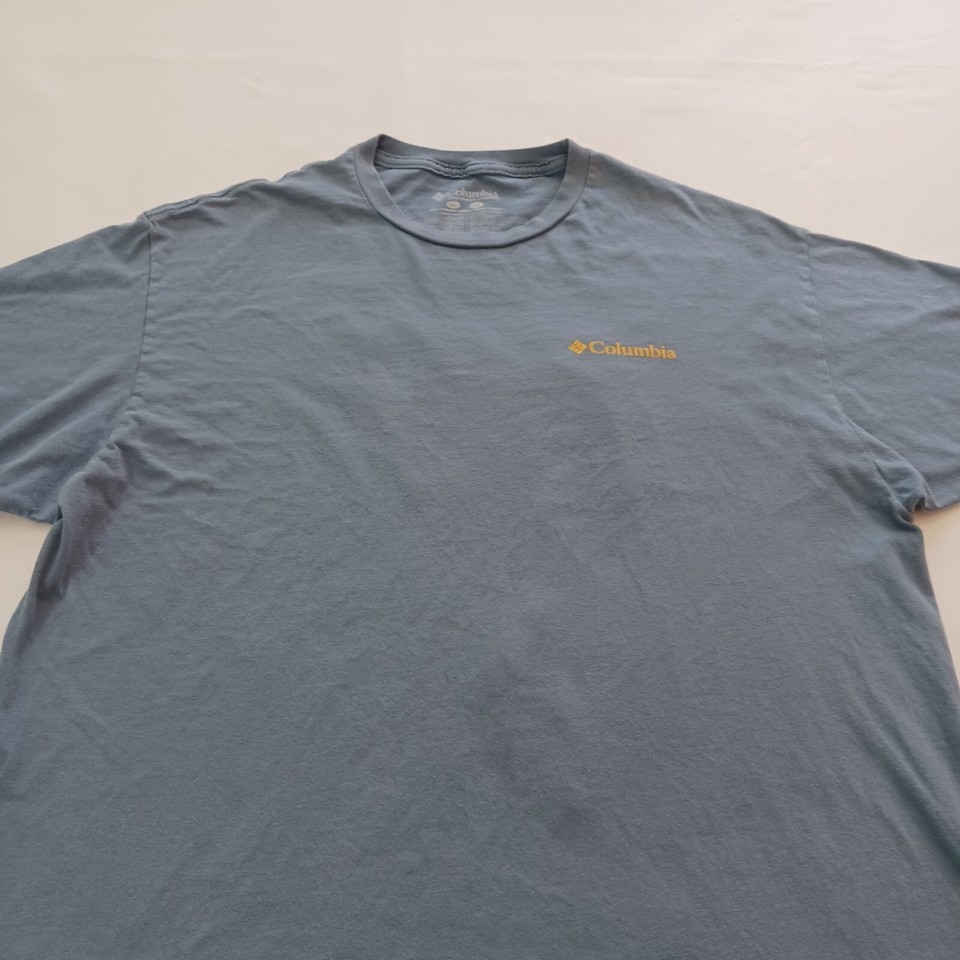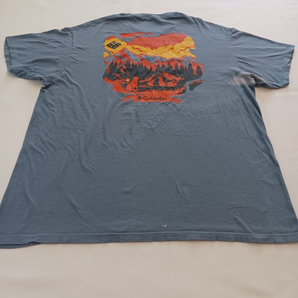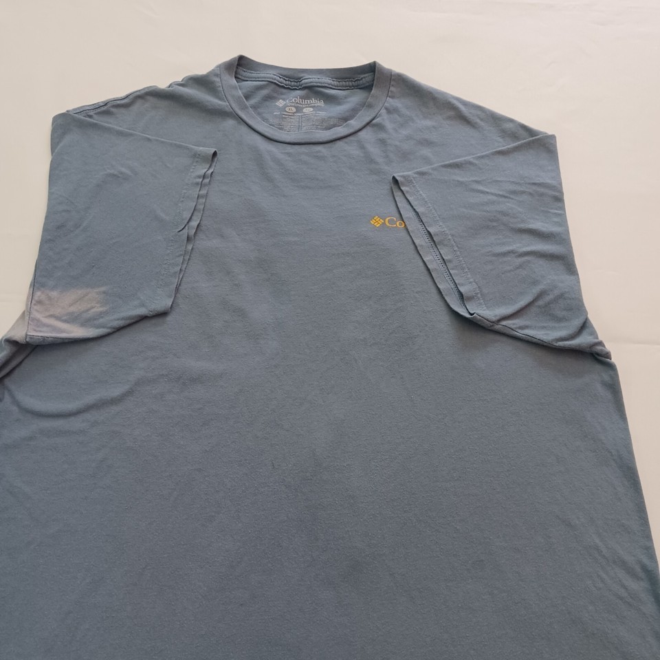 This Columbia shirt for men features a solid gray color with a graphic design, short sleeves, and a crew neck. It is made of cotton material and is available in size XL. The shirt is perfect for outdoor activities and all seasons. The brand is Columbia and the fit is regular. The shirt is designed for men and is great for any casual occasion. It is made in Mexico and is not vintage.