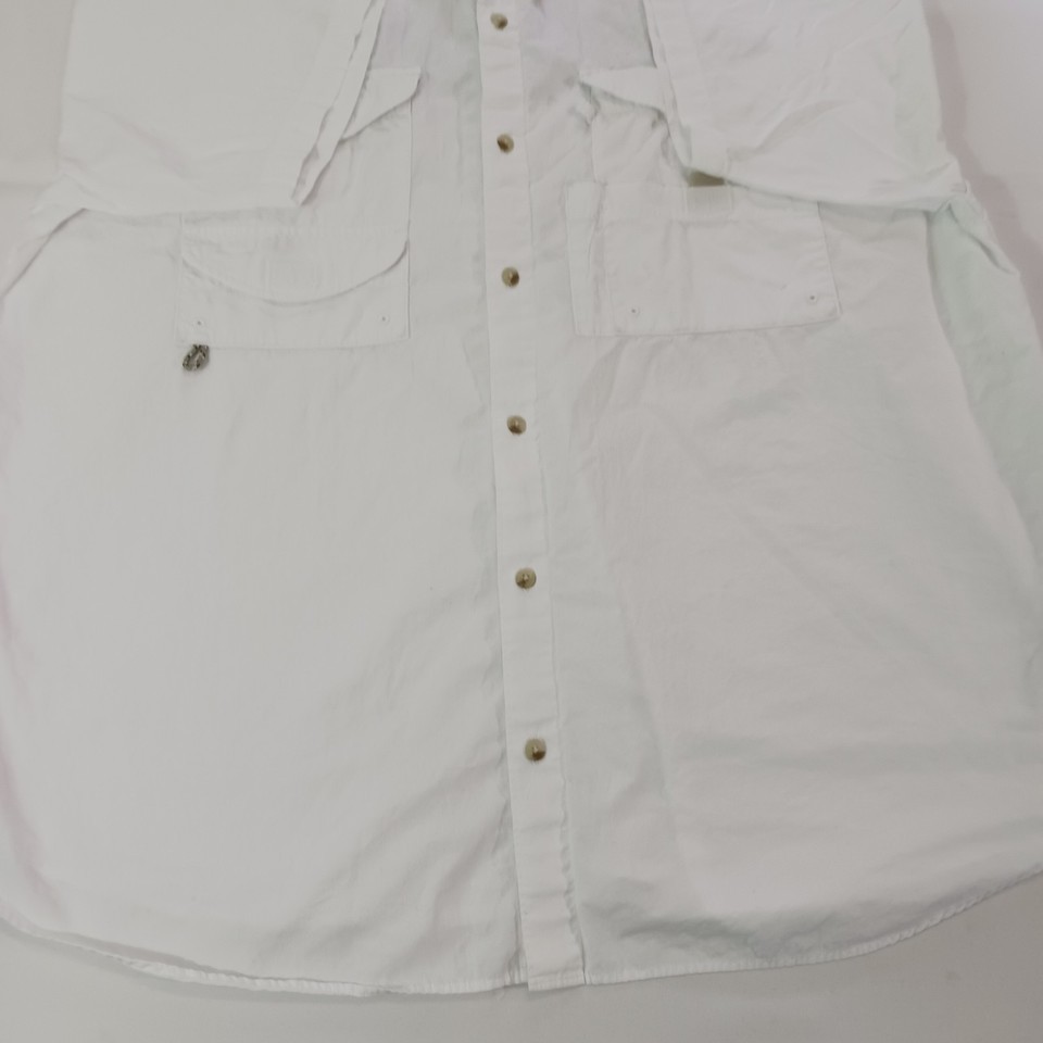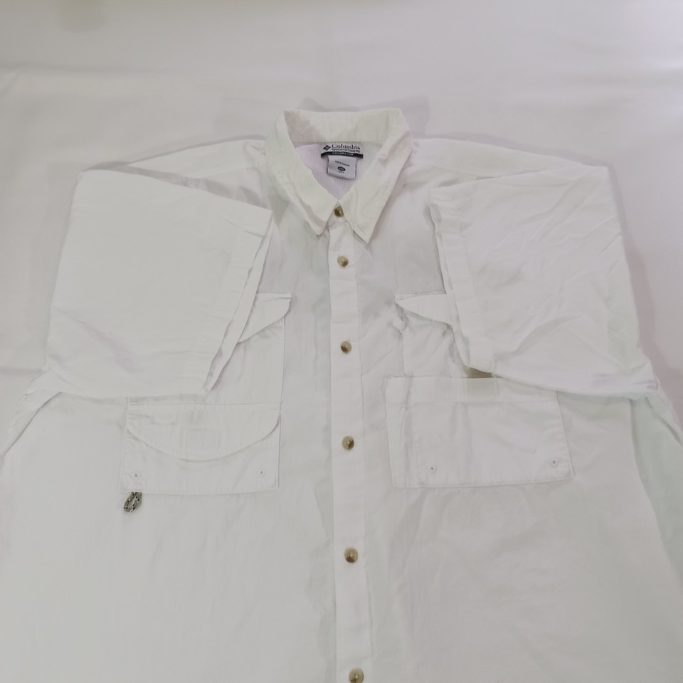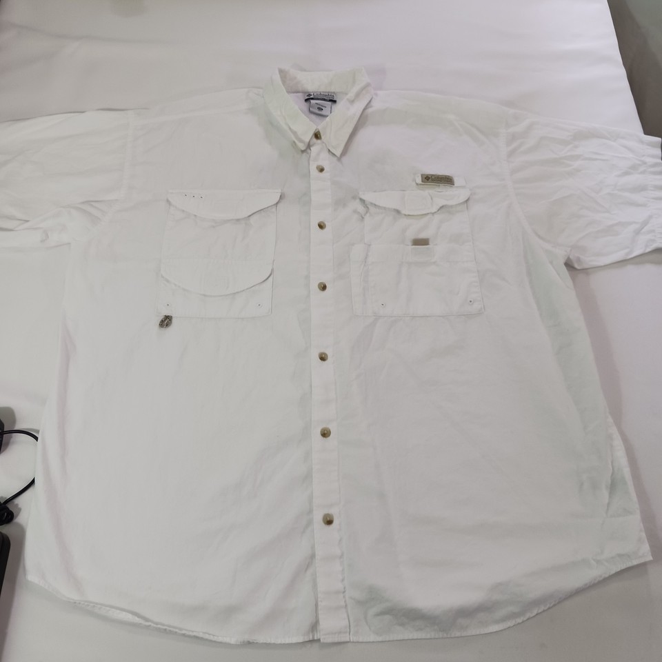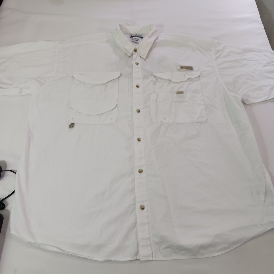 The Columbia Sportswear FM7231 Men's White Cotton Vented Short Sleeve Shirt in size 2XL is a solid white button-up shirt made of cotton, designed for comfort and style. With a chest size of 58 inches and short sleeves, it features a button closure and pockets for added functionality. This shirt is perfect for men looking for a casual yet putting-together look, suitable for various occasions. The Columbia brand ensures quality and durability, making this shirt a great addition to any man's wardrobe.
