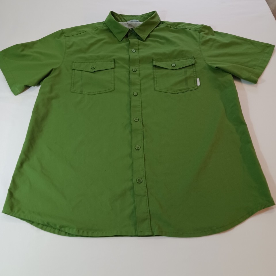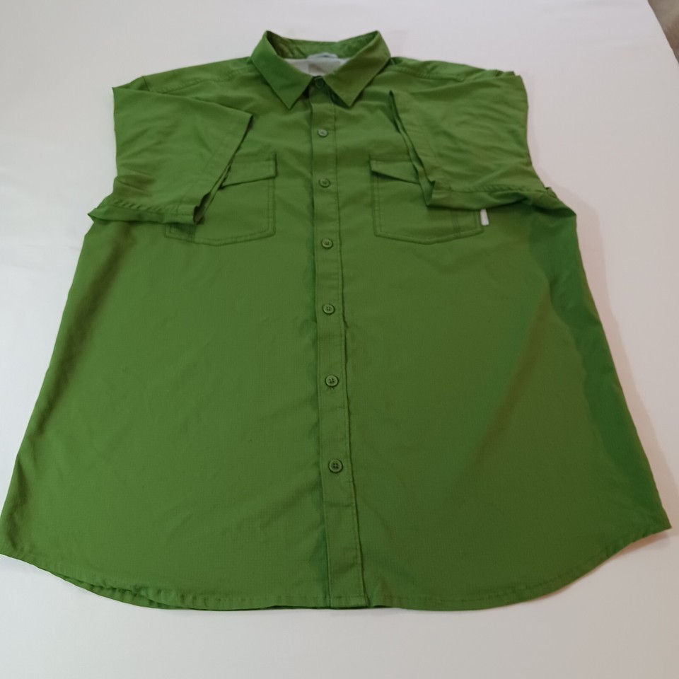 This shirt is ideal for those who enjoy the outdoors, whether it's fishing, hiking, or simply enjoying a day at the beach. The solid green color and classic design make it a great addition to any wardrobe. It is machine washable and easy to care for. Get ready to explore the great outdoors in style with this Columbia Sportswear button-up shirt.