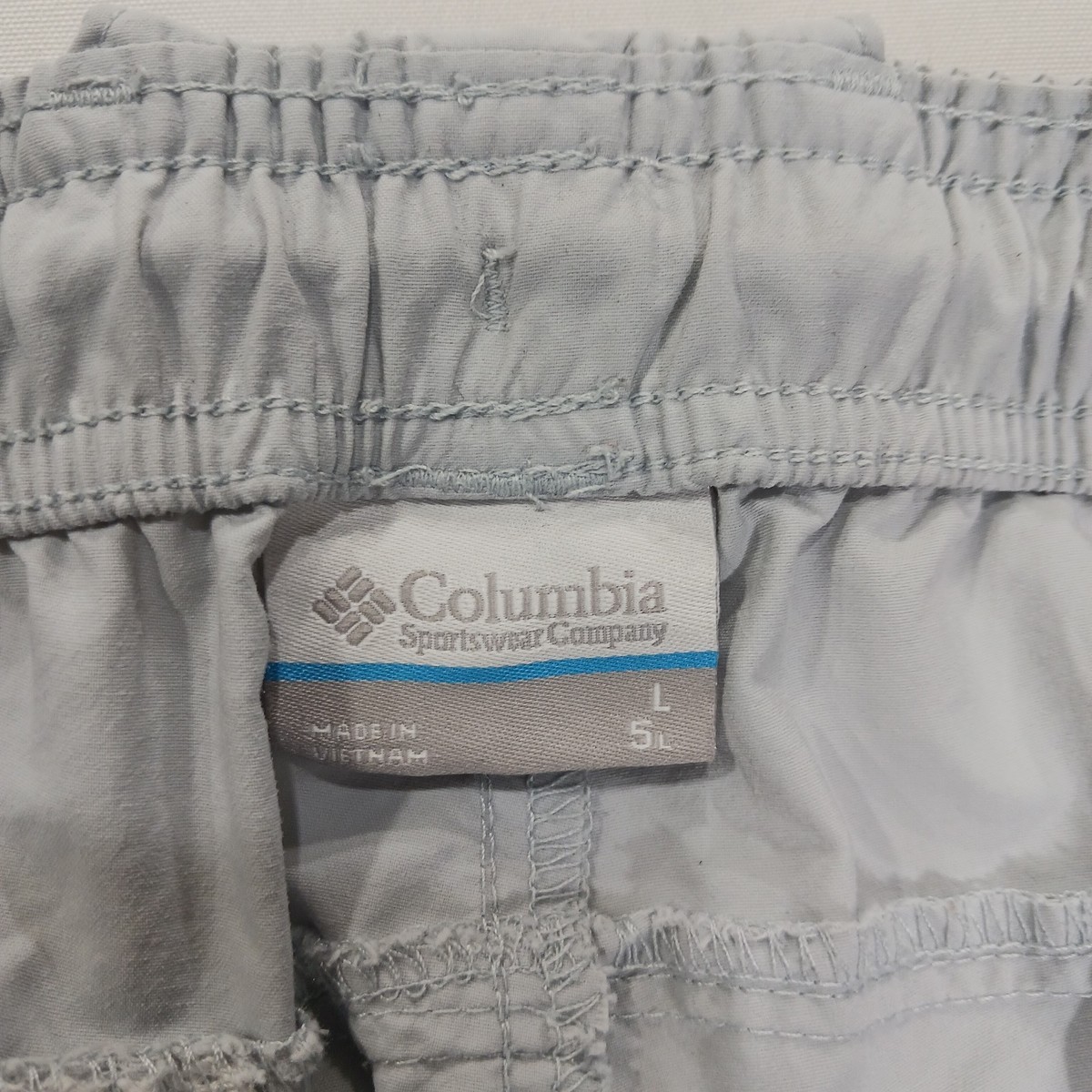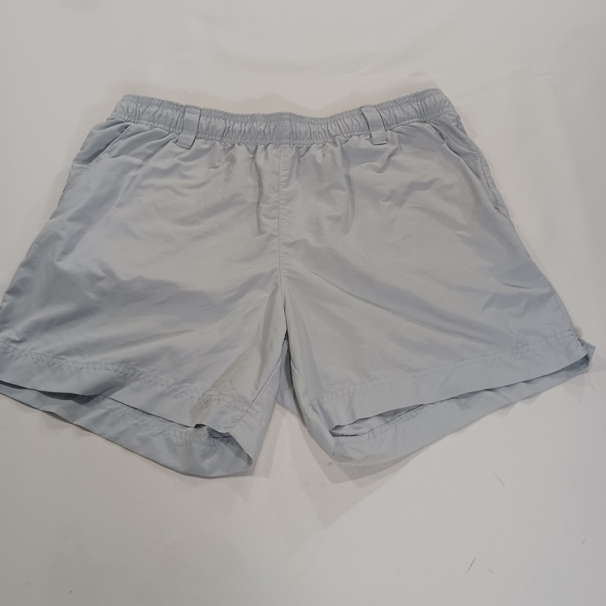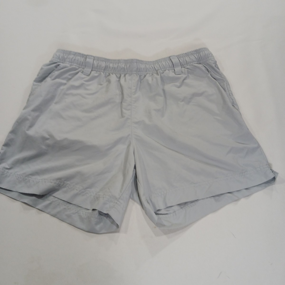 The Columbia Women's Light Gray Elastic Waist Drawstring Shorts in size L offer a comfortable and versatile option for active women. Made from lightweight and quick-drying canvas fabric, these athletic shorts feature an elastic waist with a drawstring closure for a secure fit. With a solid pattern and 5-inch inseam, they are suitable for summer activities such as water sports and hiking, while also being machine washable for easy care. The drawstring and pockets add practical features to these stylish and functional activewear shorts.
