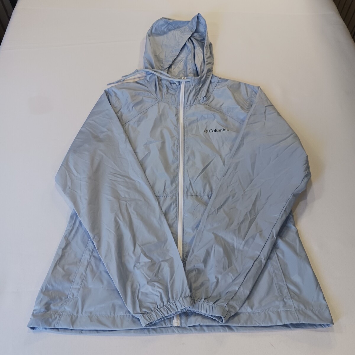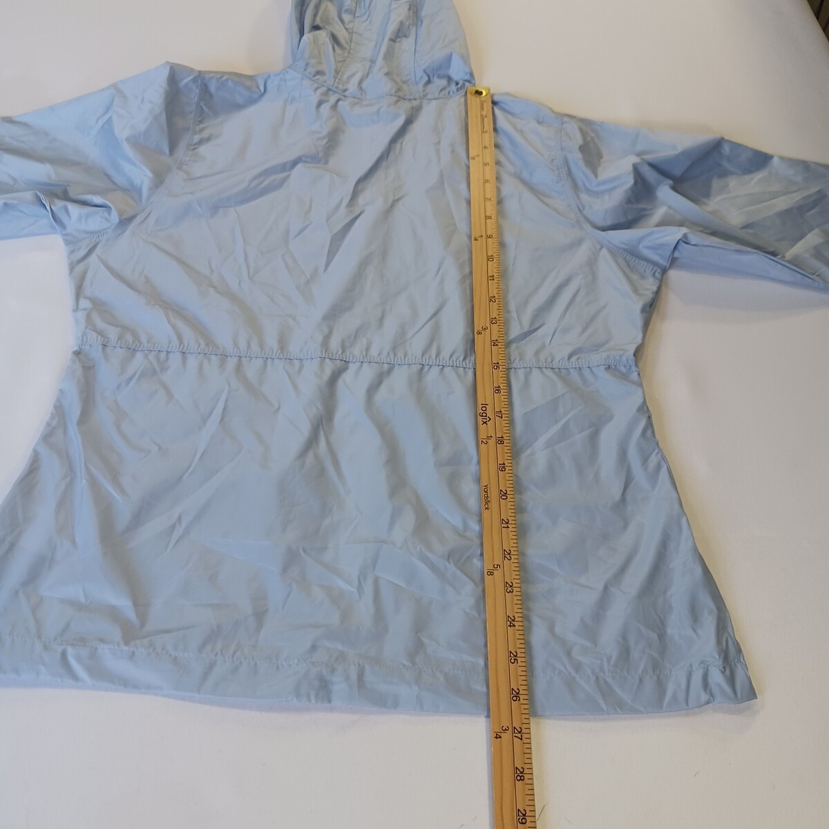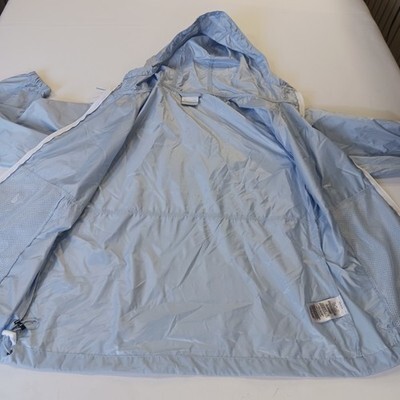 The Columbia XL3555 Women's Blue Full Zip Hooded Rain Jacket in size Medium is a versatile and practical outerwear option for women. Made with durable nylon material and featuring a softshell fabric type, this jacket is designed to be lightweight and water resistant, making it perfect for outdoor activities in winter, fall, and spring. The full zip closure, hood, and long sleeves provide added warmth and protection, while the blue solid color adds a stylish touch. Easy to care for with machine washable instructions, this Columbia jacket is perfect for casual or activewear occasions.