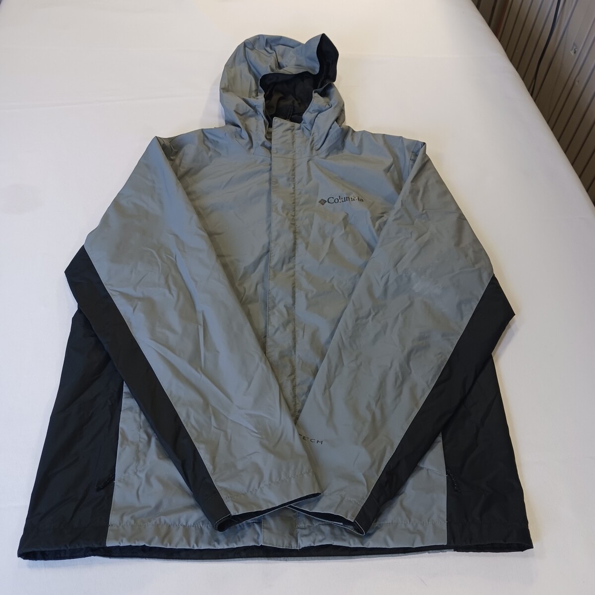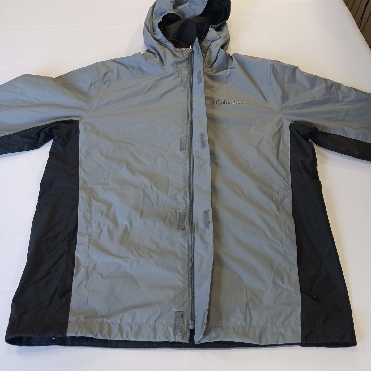 Columbia XM2884 Men's Gray/Black Full-Zip Hooded Rain Nylon Jacket Size Medium