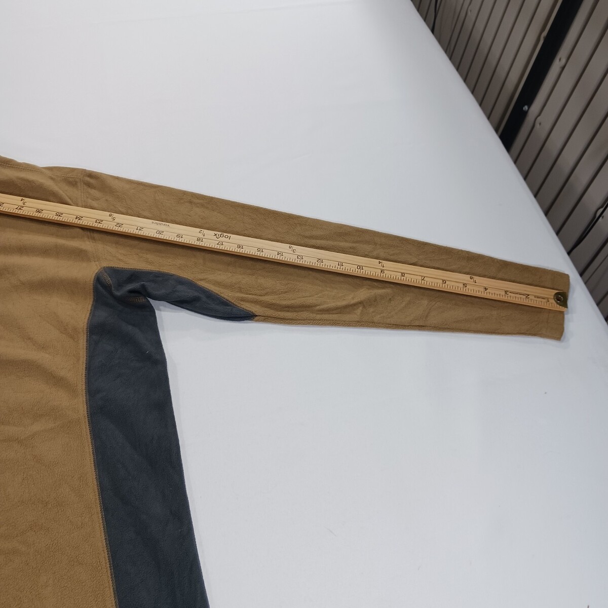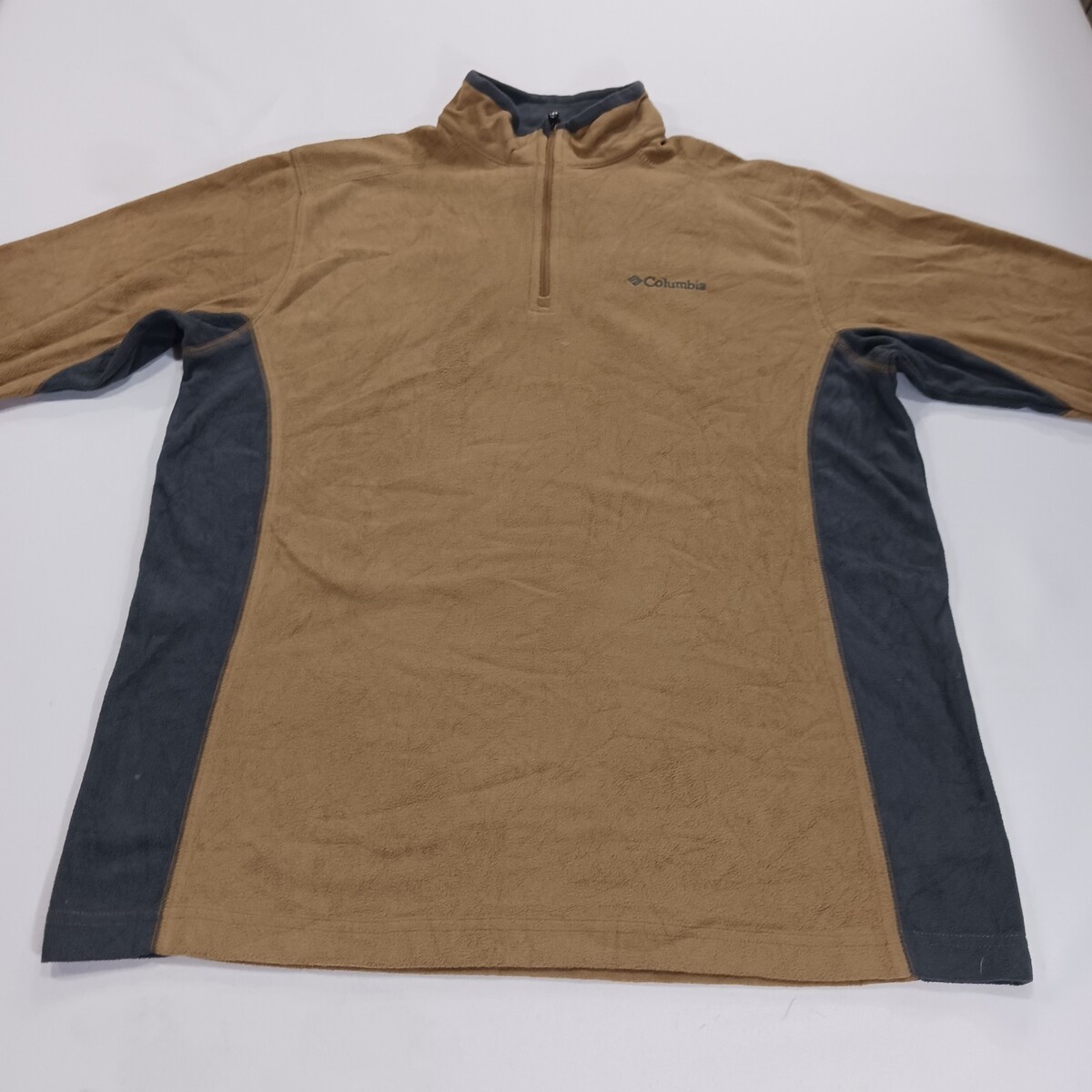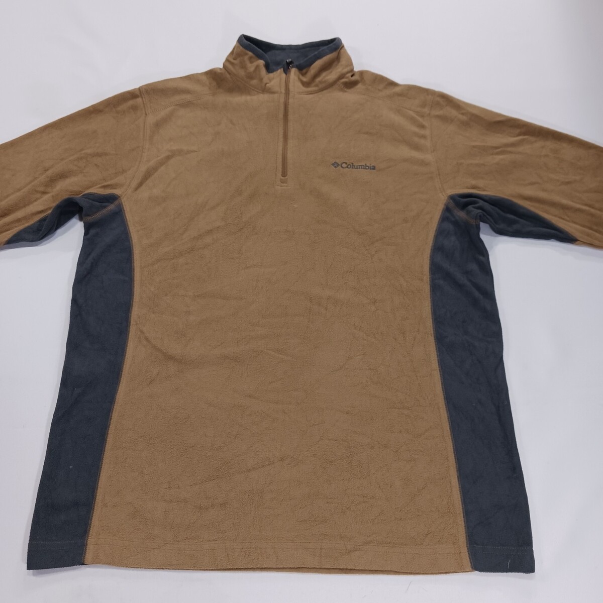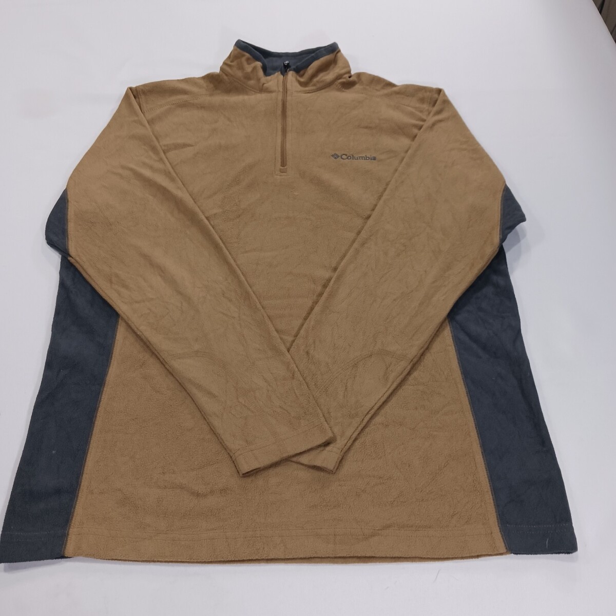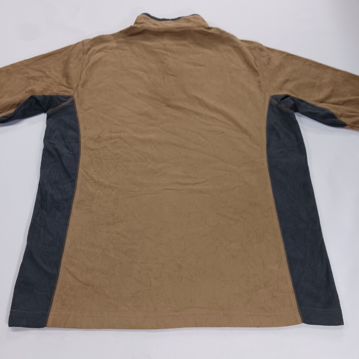 The Columbia XM6279 Men's Brown/Black Pine Ridge Fleece 1/4 Zip Sweatshirt is a versatile and stylish activewear piece perfect for outdoor activities and casual wear. Made from polyester fleece, this sweatshirt features a colorblock design with brown accents and embroidered logos. The 1/4 zip closure and mock neck neckline provide added warmth and comfort, while the regular fit and long sleeves make it ideal for various seasons such as winter, summer, fall, and spring. Whether you're hitting the gym, hiking, running, or simply taking a leisurely walk, this sweatshirt is a practical and fashionable choice for the modern man.