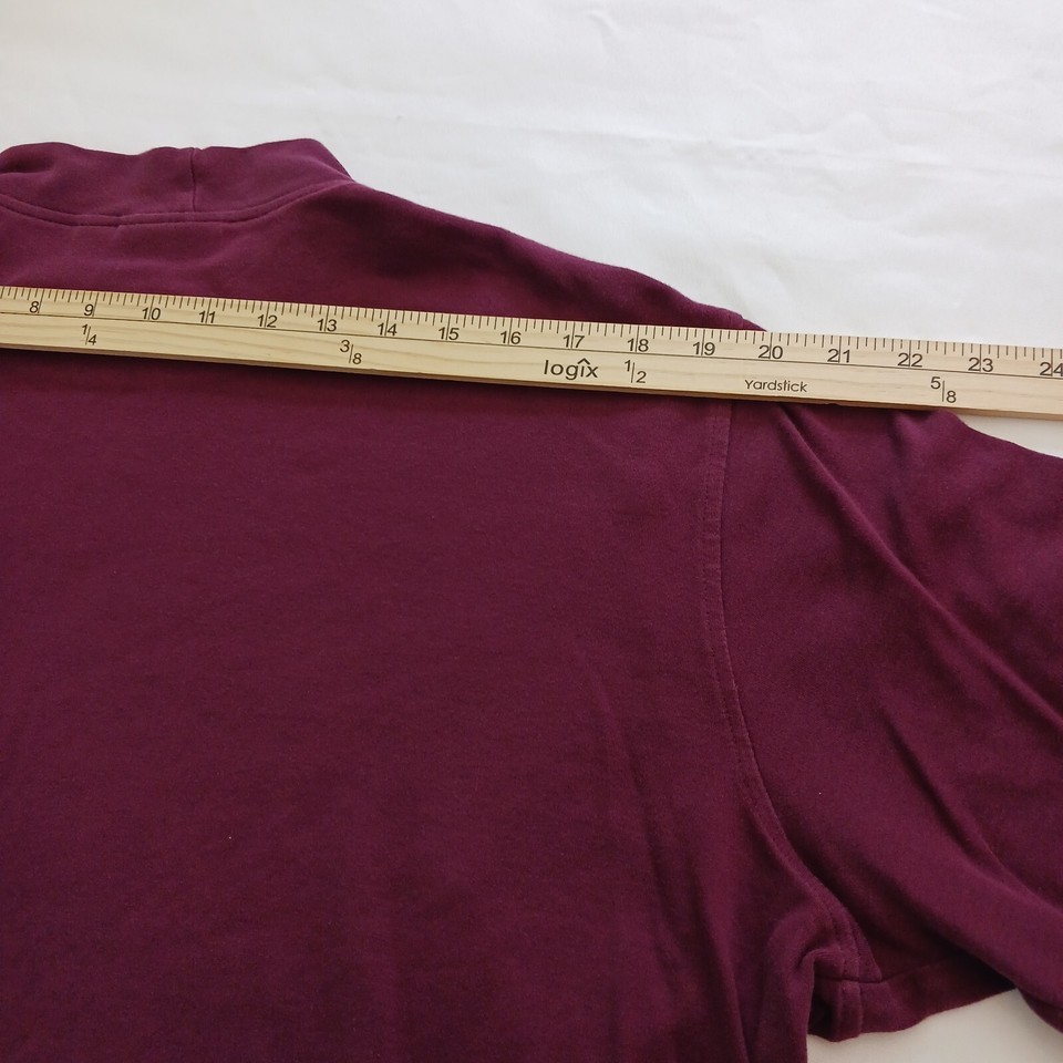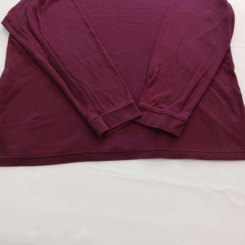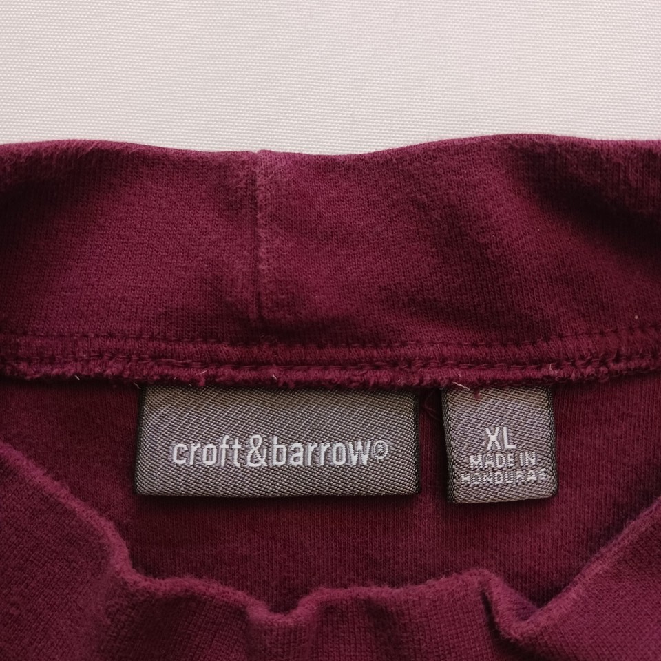 Croft & Barrow Men's XL Mock Neck T-Shirt is made of red cotton knit fabric. The long sleeve T-shirt is easy to care for and has a regular fit. It is suitable for men and can be worn in winter, fall, and spring. The T-shirt has a solid pattern and features a mock neck and easy-care properties.