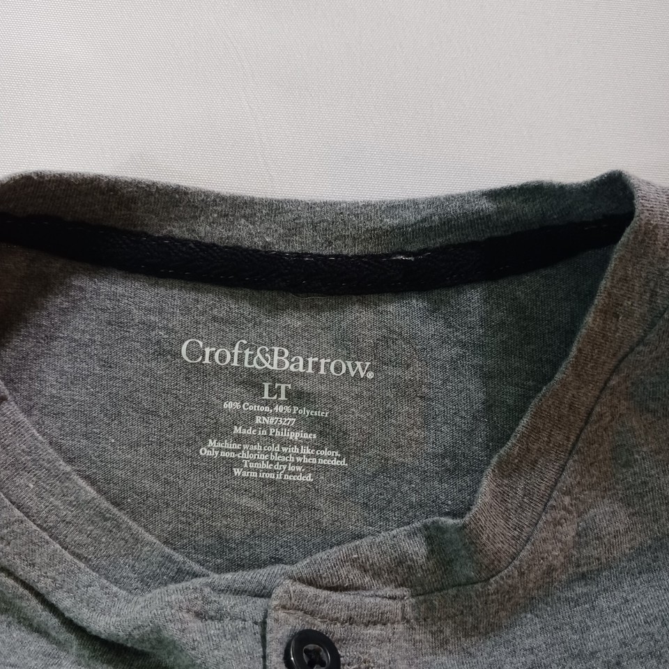 This Croft & Barrow Men's Henley T-Shirt is perfect for those looking for comfort and style. The shirt features a solid gray color with a Henley neckline and long sleeves. Made with a polyester and cotton blend, this T-shirt is soft, comfortable, and durable. The shirt is designed for the Big & Tall men in mind with a size type of LT.