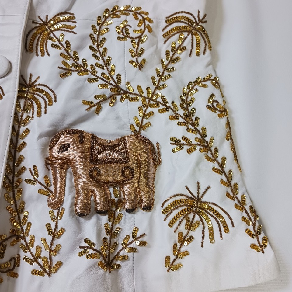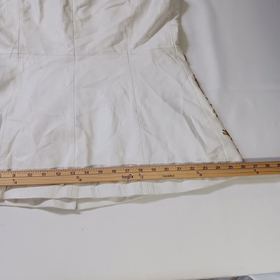 • Darshi Women's White Flower Design Real Leather Button Vest Jacket Size 16 image 10