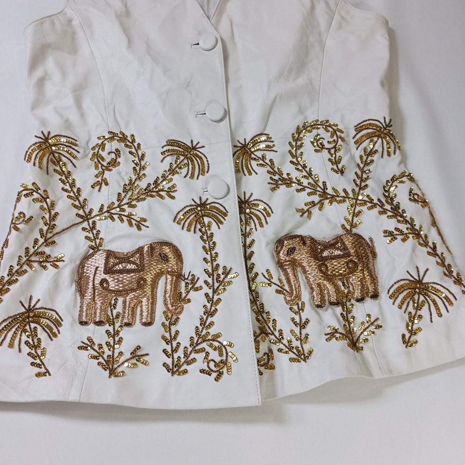 Darshi Women's White Flower Design Real Leather Button Vest Jacket Size 16