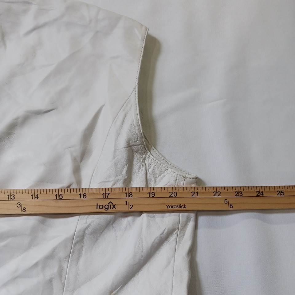 • Darshi Women's White Flower Design Real Leather Button Vest Jacket Size 16 image 15