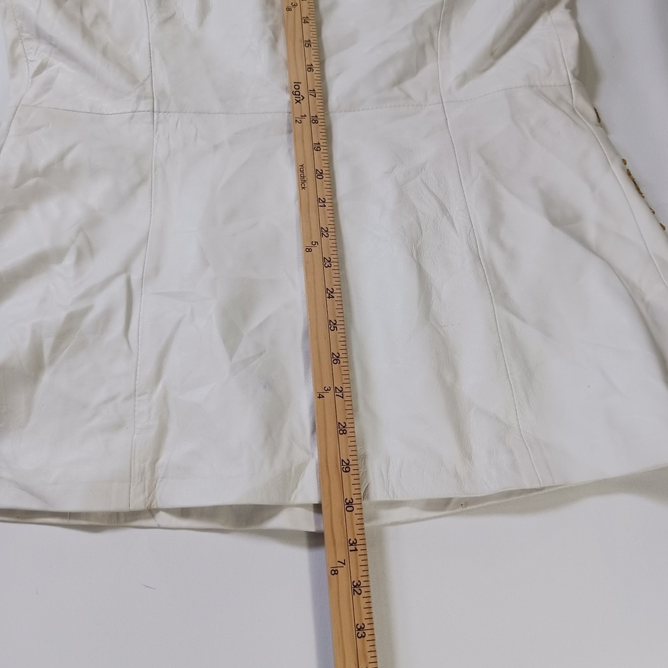 • Darshi Women's White Flower Design Real Leather Button Vest Jacket Size 16 image 8